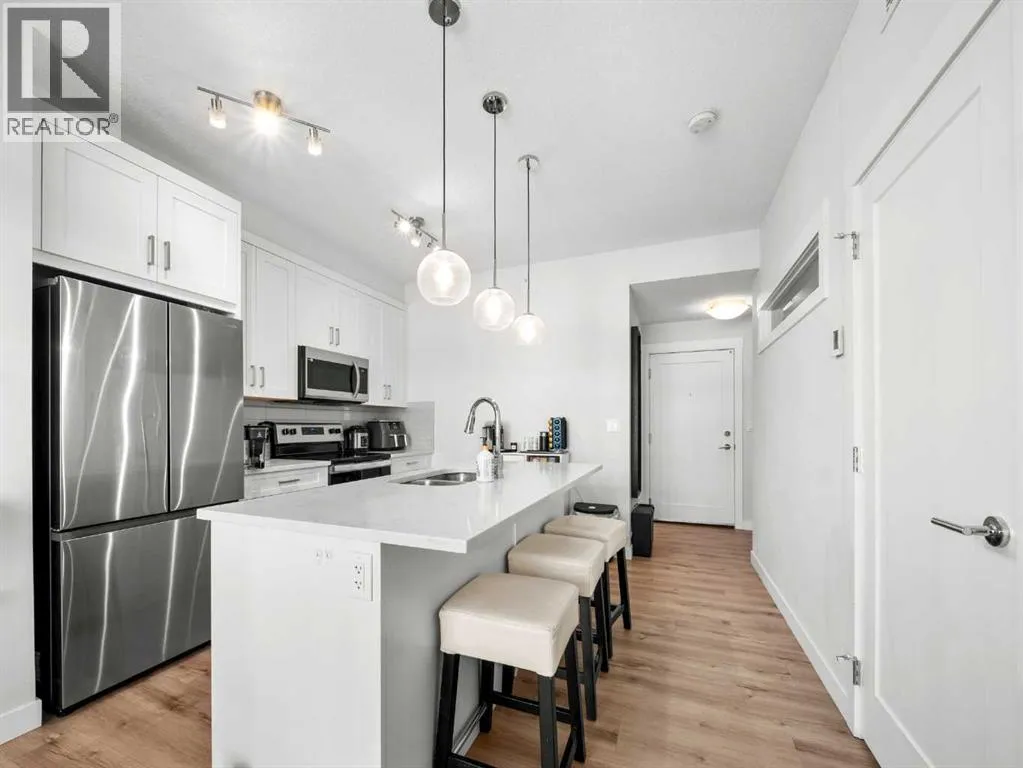 2023 Buit, Top Floor, bright, modern, and perfectly located, this 2-bedroom condo in Walden offers incredible value at just $259,900!Situated in the well-managed, elevator-equipped building, this home features nearly 530 sq. ft. of open-concept living space, a titled parking stall, a private storage locker, and a spacious balcony with a natural gas hookup where BBQs are permitted.Inside, the unit features a practical layout with a welcoming entryway, a bright living area, and a modern kitchen equipped with a spacious island, quartz countertops, stainless steel appliances, and ample cabinet space. The bedroom with a built-in closet, while the den offers the perfect spot for a home office or added storage. Large windows fill the home with natural light, creating a comfortable and inviting atmosphere. No carpet. Upgraded flooring - LVP all throughout. This pet-friendly building is located in Walden, one of Calgaryâs most peaceful and nature-focused communities. Youâll love the tree-lined streets, green spaces, walking paths, and nearby natural wetland. Dog owners will appreciate close proximity to Fish Creek Park, Wolf Willow Dog Park, and other outdoor spaces. Everyday convenience is unmatched with easy access to Gates of Walden, Township, Shawnessy Village, grocery stores, restaurants, banks, and major retailers. Commuting is seamless with quick connections to Macleod Trail and nearby transit routes.Additional perks include common bike parking, secured underground storage, and a dedicated parking stall just steps from the building.Low condo fees of $242.57 per month include heat, water, building insurance, snow and garbage removal, and contributions to the reserve fund, offering predictable monthly costs and worry-free living.Perfect for first-time buyers, downsizers, or investors seeking a low-maintenance property in a vibrant and growing community. (id:27476)