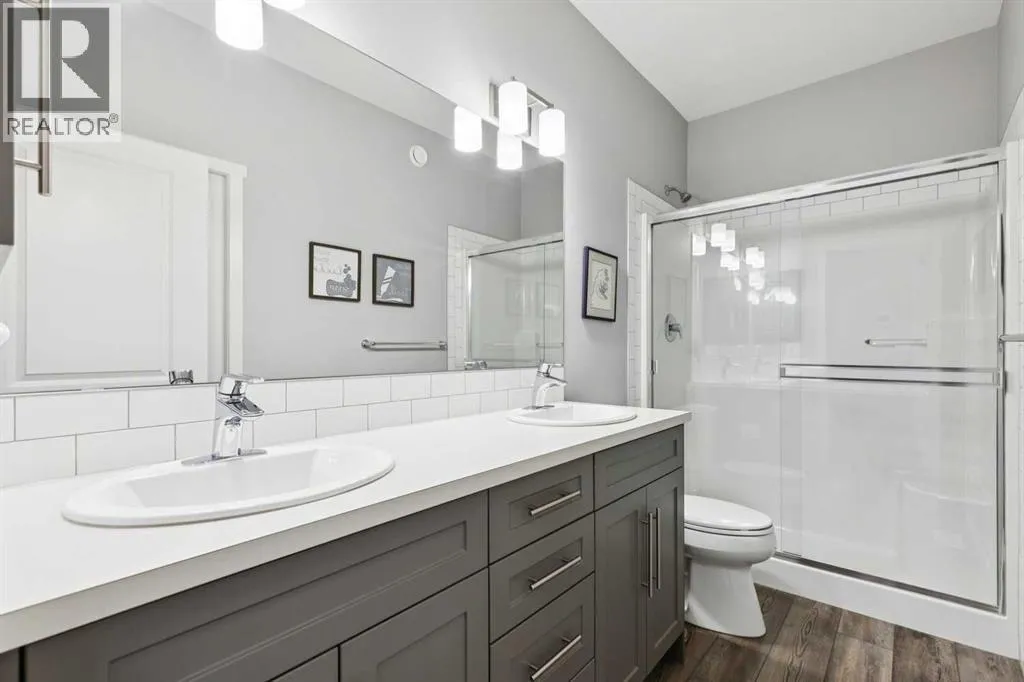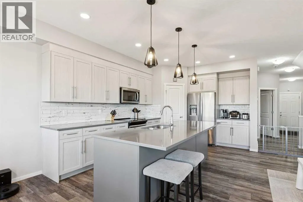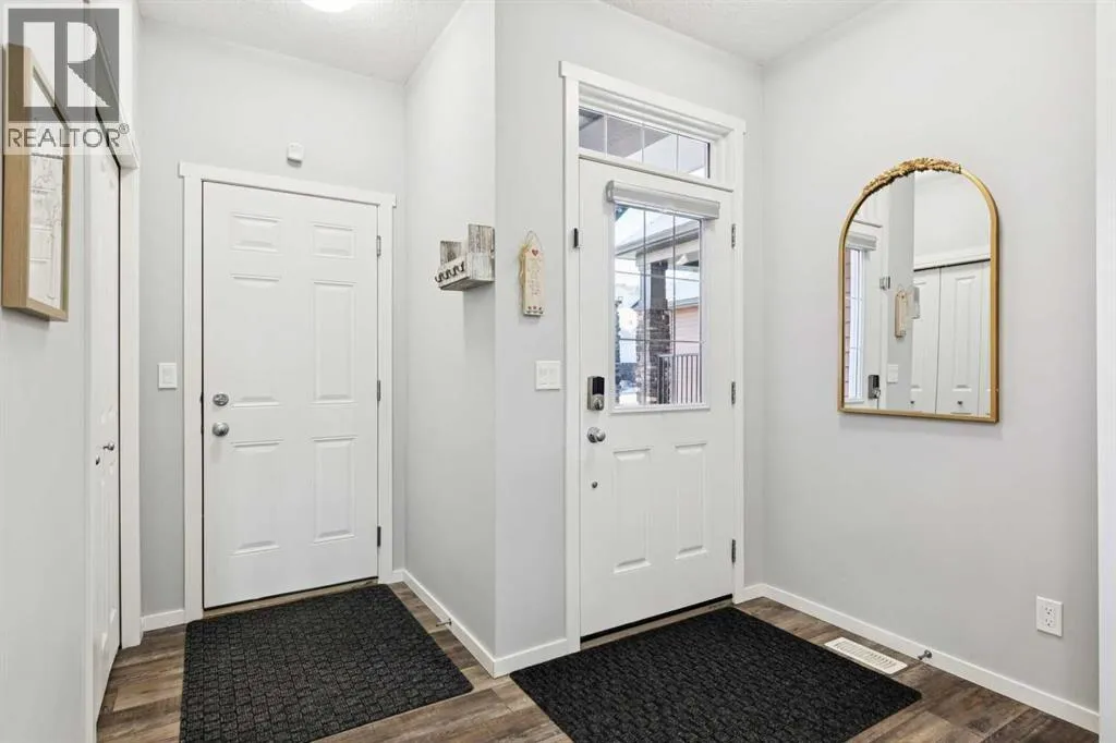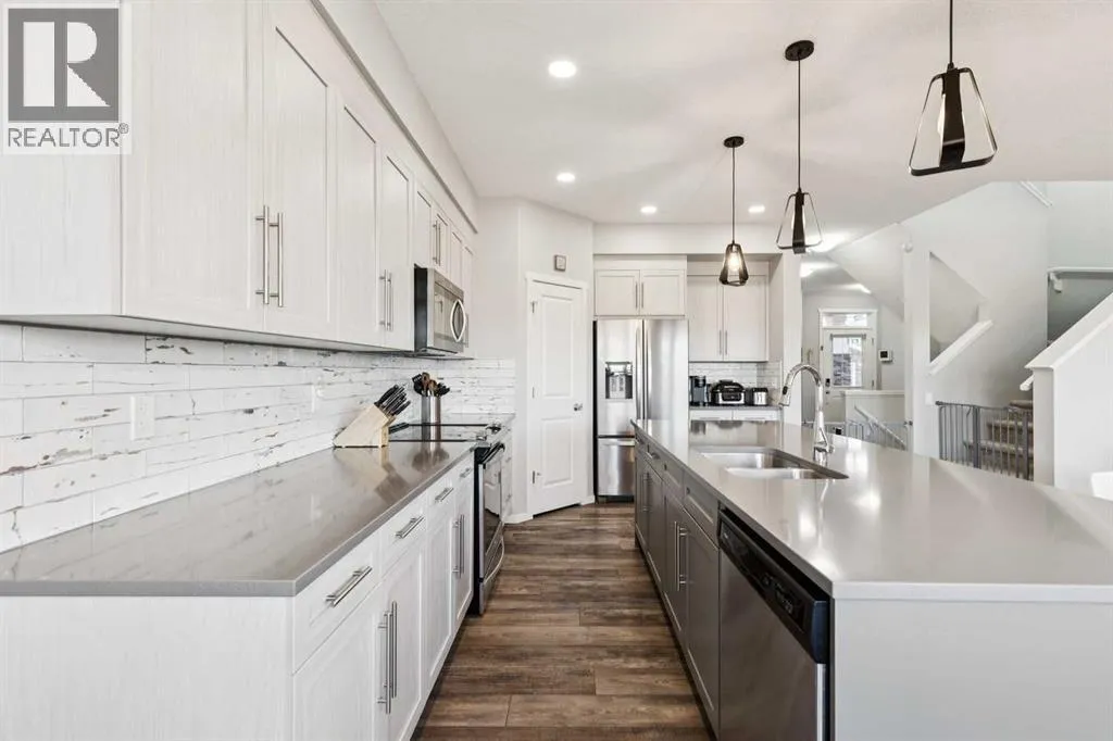 Welcome home to your private oasis in the highly accessible and family-friendly community of Crestmont. This immaculate Homes by Avi built residence features 4 bedrooms up, 3 bathrooms, striking architectural details, and quality upgrades throughout. From the soaring ceilings to the unobstructed west-facing views, this is a home that truly takes your breath away. An abundance of natural light welcomes you the moment you step inside, flowing effortlessly through the open and inviting main levelâdesigned to impress both growing families and enthusiastic entertainers alike. The living room is anchored by a cozy corner gas fireplace with custom tile surround, creating a warm, welcoming atmosphere. The chef-inspired kitchen is equipped with an oversized island, quartz countertops, stainless steel appliances, a tiled backsplash, upgraded full-height cabinetry, and a convenient corner pantry. Just off the main living space is a flexible room ideal as a home office, den, or even an additional main-floor bedroom, paired with a full 4-piece bathroom for added convenience. Enjoy seamless outdoor living on the west-facing deck, perfect for relaxing while taking in the stunning views. Upstairs, the spacious ownerâs suite features a spa-like 5-piece ensuite and a dedicated walk-in closet. A well-appointed laundry roomâwith triple-capacity front-load washer/dryer and ample shelvingâsits adjacent to the primary suite. The upper level also includes three additional generous bedrooms, a large centrally located bonus room that separates the kidsâ wing from the primary suite, and a second 4-piece bathroom with a separate tub/toilet area for family functionality. The walk-out lower level is undeveloped and ready for your custom vision. Outside, the fully fenced backyard includes a gate with direct access to the community bike path system. Completing this exceptional property is an attached double garage. Homes on this street are rarely offeredâdonât miss this incredible opportunity. Eas y access to local amenities shopping, schools, the Trans-Canada Highway and Stoney Trail. (id:27476)