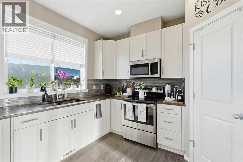 Original owner, centrally located in the 4-season community of Auburn Bay away from all the traffic noise but walking distance to schools, Auburn Station and transit just outside a playground zone! A quaint North facing front porch offers access into the main floor boasting 9' ceilings with a tiled foyer and front lifestyle room. Laminate flooring stretches from the front to the back of this open plan with added transom windows over the center dining area. The rear of the home has a garden door to the South exposed backyard which comes fenced, landscaped and with your own double detached garage. The corner kitchen has classic white extended cabinets, a full set of stainless-steel appliances, quartz counters, soft close mechanics, a backyard window over the sink and a plethora of storage and prep space. Completing this level is a 2-peice bath and side stairs to the lower basement. The upper plan has room for all with 2 back kid's bedrooms their own tiled 4-peice bath with a counter height storage vanity, tiled floors and tub surround with added tile accents. Enjoy the convenience of an actual upper laundry room with extra space to move. The primary bedroom is situated at the front of the home and comes complete with a walk-in closet and tiled 3-peice en-suite bath offering a full-size shower, cabinets and drawers in the counter height vanity. An un-touched basement has the perfect layout for any future development with space for a 4th bedroom, storage, a recreation room and a 3rd full bath. Â Presented in pristine condition, this is the plan, location, community for any growing families needs! (id:27476)