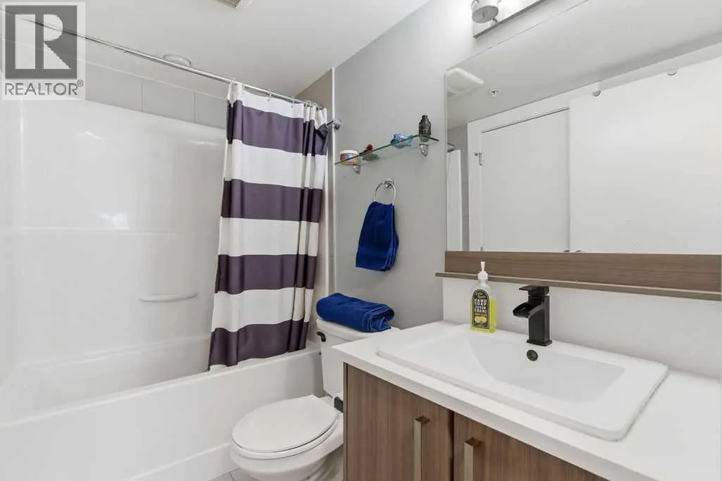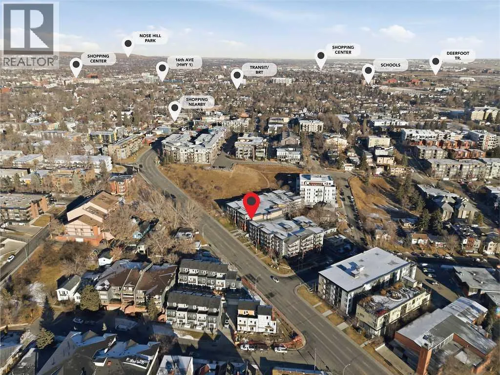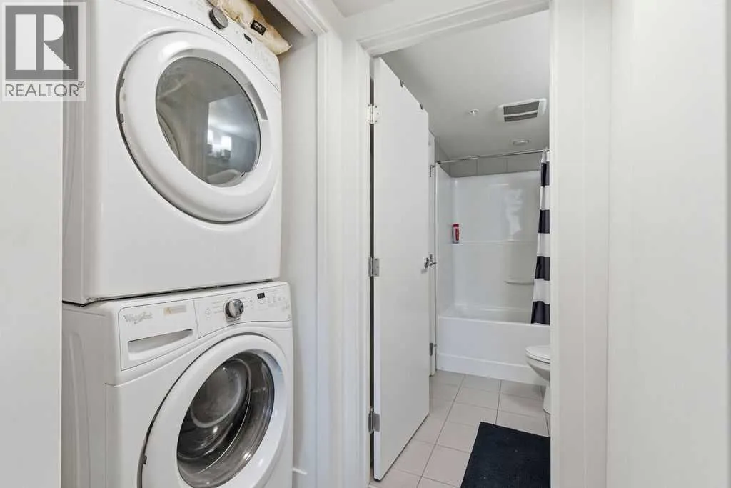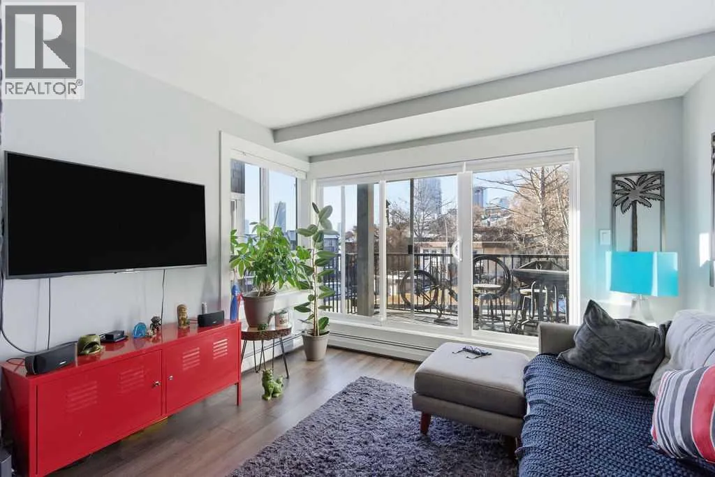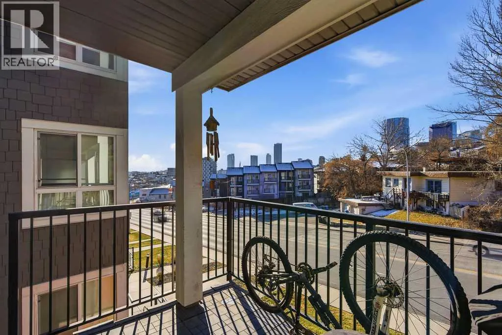 Enjoy those sunny downtown views from your big 10x7 west-facing balcony on the third floor! If youâve been wanting to walk to work and stay close to everything, this is the spot. This well-built 1-bedroom suite is right by downtown, transit, and tons of shopping.The kitchen is sleek and modern with high-end stainless appliances, a gas stove, and a big quartz peninsula thatâs perfect for cooking or hosting. Thereâs lots of room in the dining nook for a proper table too. The living room is bright and functional with corner windows and a cozy wall-mounted electric fireplace. You also get a spacious bedroom with great closet space and a full bathroom.Flooring has a mix of laminate hardwood, carpet, and tile for a nice mix of style and comfort. Plus, you get titled heated underground parking, secure storage, a fitness room, bike storage, a stylish lobby, and visitor parkingâall part of âBridgeland Hills.â And of course, youâre just minutes from downtown, trendy shops, restaurants, and everything Bridgeland has to offer. (id:27476)