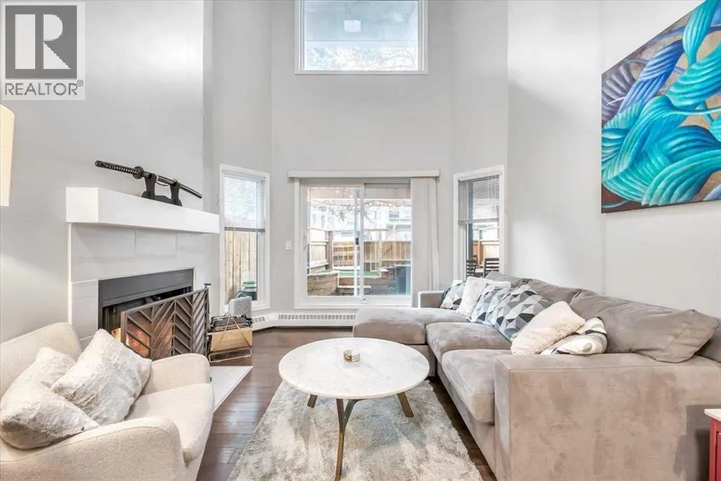 This is a standout spacious and upgraded unit with must-have features. Starting with the ideal CENTRAL LOCATION on a quiet street in Lower Mount Royal with easy access to restaurants, shops, downtown, and main roads. Everything you need is close by, including Mount Royal School, trendy 17th Avenue district, major transit routes, the Bow River Valley and more. This suite has modern finishes and functional layout with big separate living spaces allowing for many options to fit your lifestyle. The welcoming entrance gives access to a closet, half bathroom, upper level, and big dining space with a pantry to the side. The functional kitchen is complete with stainless-steel appliances, stone counter tops, soft close cabinets, and serving counter to a flex space. The grand living room features a two-story ceiling, fireplace, multiple west windows, and walkout to the patio. On the upper level the bonus space loft gives more options for living, work at home, gym, or a studio. The two bedrooms are big enough for a king bed and have great closet space. The main bathroom includes stylish finishes and shelving. Completing this full package is the laundry space with a top-end combination washer/dryer (non-venting). The 200+ sq ft private patio with evening sun is roofed, enclosed with fencing maintained by the condo, and finished with artificial turf.All spaces are bright, open, sunny, and easy keep. Most recent upgrades include the high efficiency wash/dryer, microwave hood fan, and various light fixtures. The fireplace is cleaned and inspected annually. Parking spot is covered, closest to back entrance, and easy access drive-through. This is a quiet and solid concrete frame building. It is well-maintained and funded. Common rooms include bike storage, recycling, and a laundry room. This MOVE-IN READY home truly is a must-see. (id:27476)