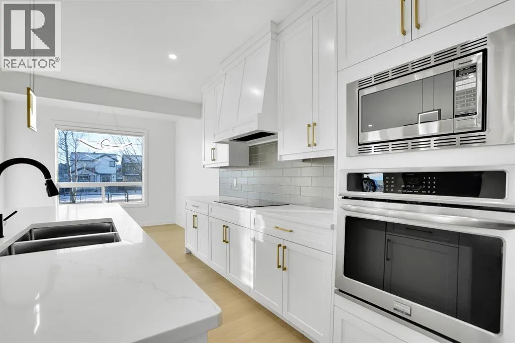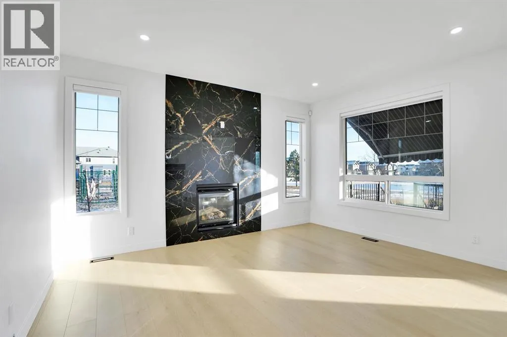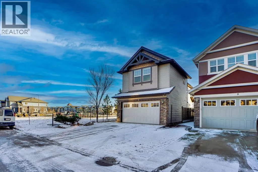 OPEN HOUSE SATURDAY NOV 29 12-3 PM. Welcome to this stunning former show home located in the vibrant community of Skyview Ranch. Situated on a desirable corner lot beside a playground and close to schools, amenities, and transit, this beautifully updated 2-storey home is ready to welcome its next family.As you step inside, youâll appreciate the fresh renovations, including new laminate flooring on the main level and a freshly painted interior. The kitchen features a luxurious shaker-style painted cabinetry package, a built-in electric cooktop, and a built-in microwave/oven combination. An oversized pantry offers exceptional storage for all your essentials. The inviting living room is the perfect space to gather, complete with a cozy fireplace. The upper level offers three spacious bedrooms and a bonus room. Two bedrooms share a full bathroom, while the primary suite features its own private ensuite with double sinks, a jetted tub, and a separate standing shower. The home also boasts level-5 painted ceilings on all three levels, adding an elevated touch throughout. The fully developed basement includes two additional bedrooms, a full bathroom, and a comfortable living areaâideal for extended family or guests. Additional features include central air conditioning to keep you cool in the summer, and a heated garage equipped with a gas heater and an electric car plug-inâperfect for cold winter months. Outside, the fenced backyard backs onto green space, offering privacy and a safe place for kids to play. Recent repairs to the roof and siding provide peace of mind, ensuring this home is truly move-in ready. (id:27476)
