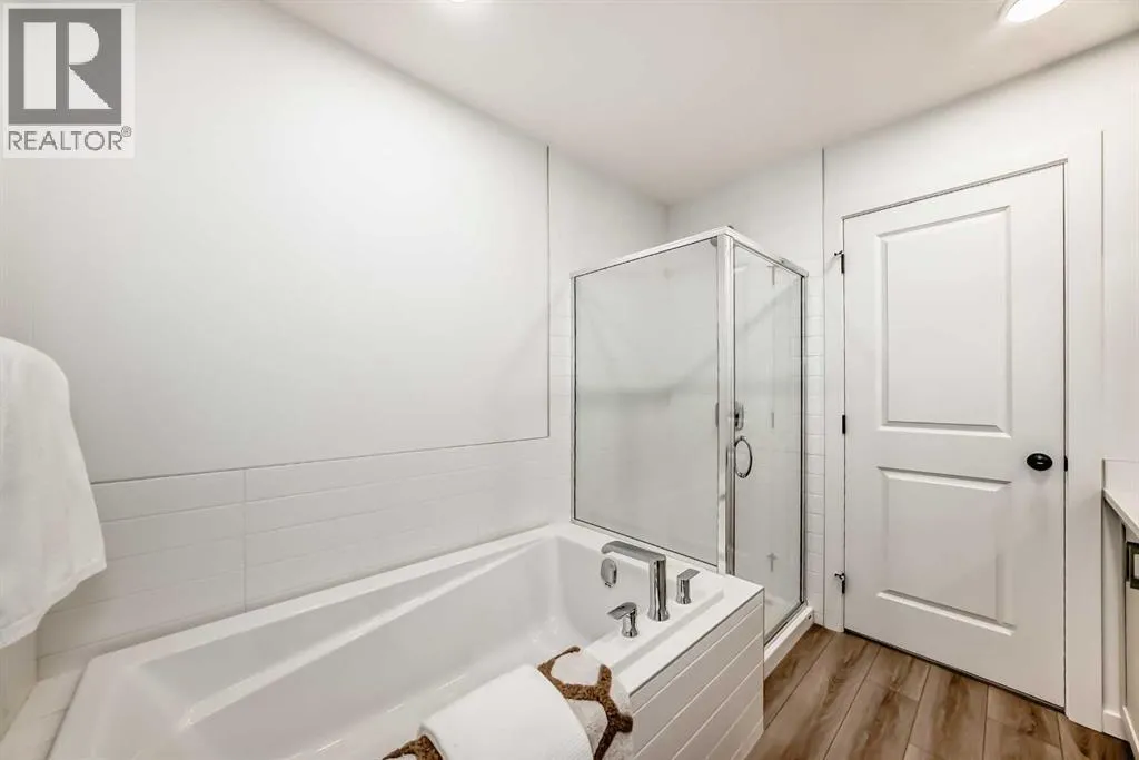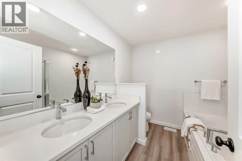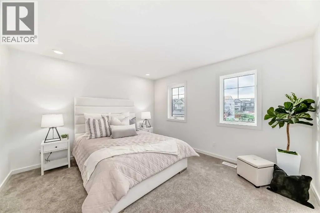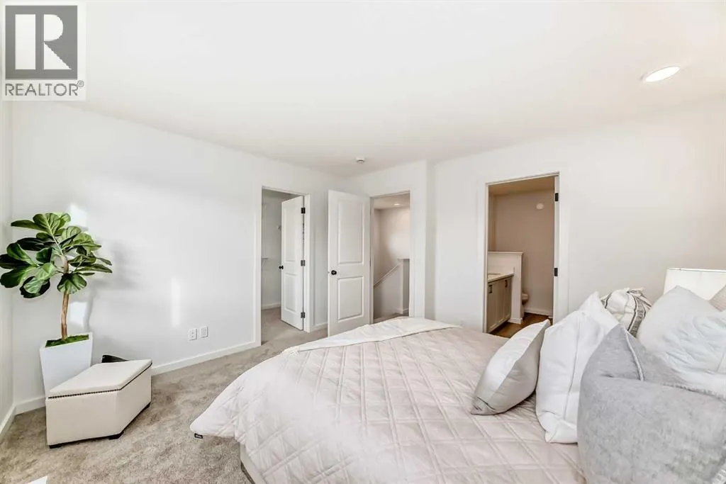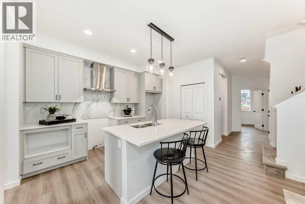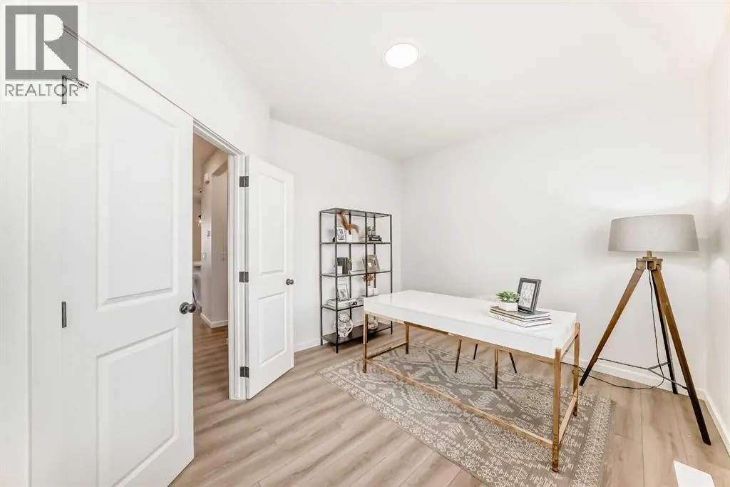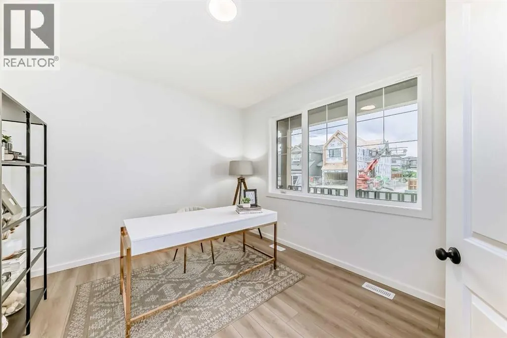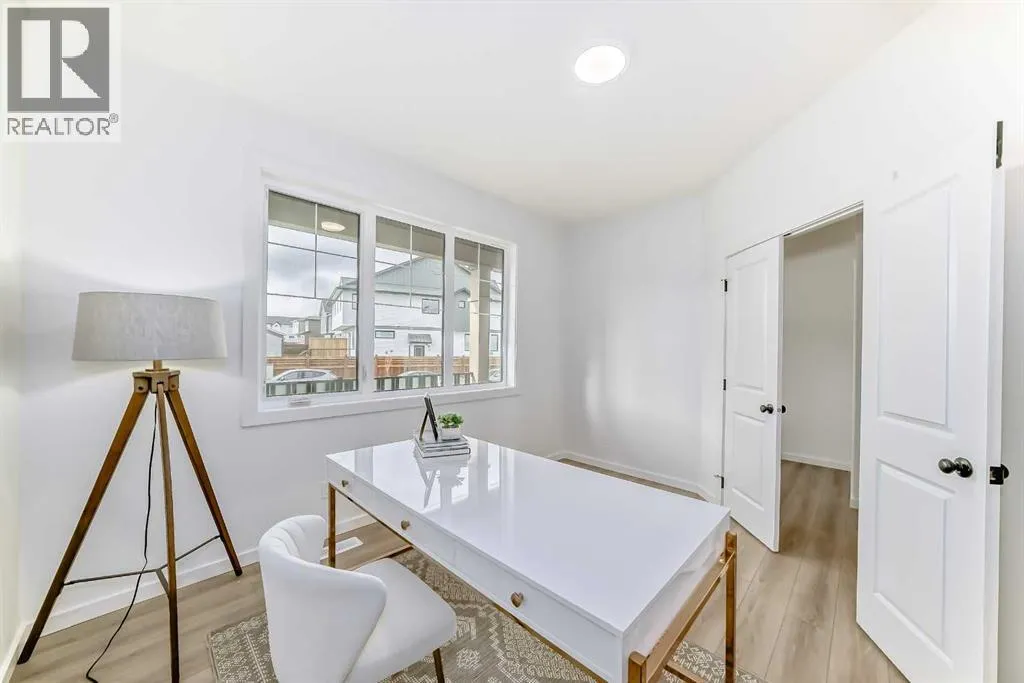 STARLING HAS BEEN QUIETLY BUILDING A REPUTATIONâfor calm streets, thoughtful design, and a nature-forward rhythm that buyers notice the moment they arrive. This home leans right into that energy. The WIDE FRONT PORCH sets a grounded first impression, and inside, natural light moves through the main floor with the kind of ease that makes the whole space feel instantly welcoming. Warm LVP, 9' CEILINGS, and a clean, modern palette work together to create that subtle âthis feels rightâ moment you feel as soon as you walk in.And then thereâs the FLEX ROOM.Framed with FRENCH DOORS and positioned with just enough separation from the main living spaces, itâs the RARE MAIN-FLOOR ROOM that feels truly intentionalânot a leftover corner repurposed as an âoffice,â but a space with presence. It becomes whatever your life needs most: a polished workspace, a creative zone, a reading retreat, or simply a quiet room with a door when the rest of the house is in motion.The kitchen continues that thoughtful rhythm: QUARTZ COUNTERS, 42" UPPERS that keep the lines crisp, a CHIMNEY HOOD FAN that anchors the design, and storage placed exactly where real routines land. The SEPARATE SIDE ENTRY adds smart flexibilityâpractical now, and perfectly positioned for whatever plans come later.Upstairs, the layout stays calm and well-proportioned. Bedrooms sit where they should, offering both connection and privacy, and the upper laundry room keeps daily life where it actually happens. The primary ensuite is the unexpected luxury in this footprint: A SOAKER TUB, A TILE-AND-GLASS SHOWER, AND A DUAL-SINK VANITYâa trio rarely found together in homes this size, and one that quietly transforms both mornings and evenings.Outside, the REVERSE-PIE LOT is a meaningful advantage. It gives you a LARGER FRONT YARD AND A GENEROUS SIDE YARD, creating more breathing room, more natural light, and a sense of separation thatâs uncommon in new communities. The off-street parking pad off the paved lane provides easy parking right at homeâno street shuffle required. Add the REAR DECK with its BBQ gas line, front sod already in place, and 200-amp electrical service, and the long-term livability becomes clear.Set within steps of Starlingâs PATHWAY NETWORK and nature-first streetscape, this is a home that blends light, flow, and flexibility with quiet confidence.BOOK A SHOWING and come see how naturally it fits the way you live. ⢠PLEASE NOTE: Kitchen appliances are included, and will be installed prior to possession. (id:27476)
