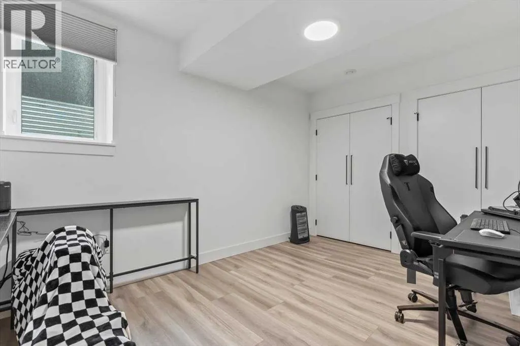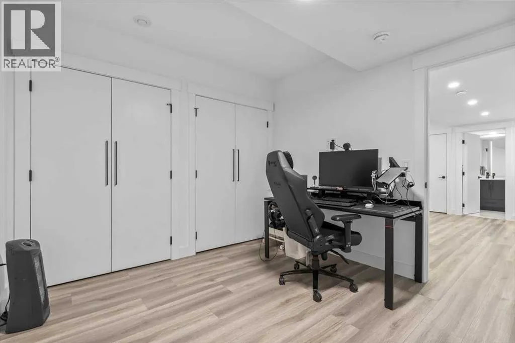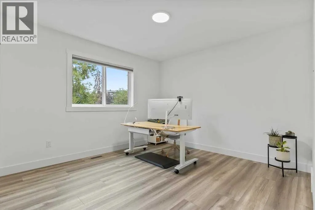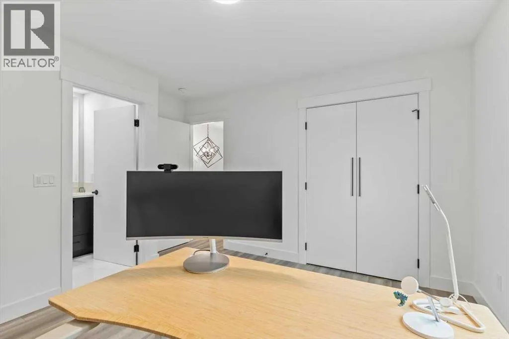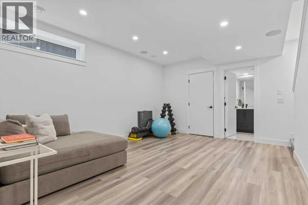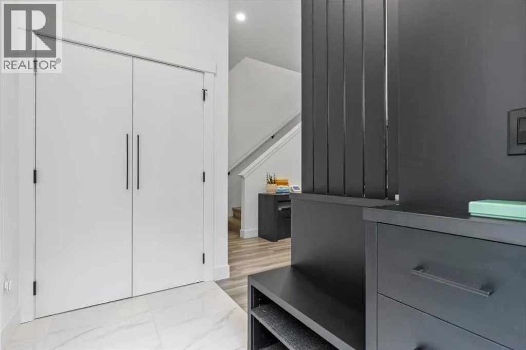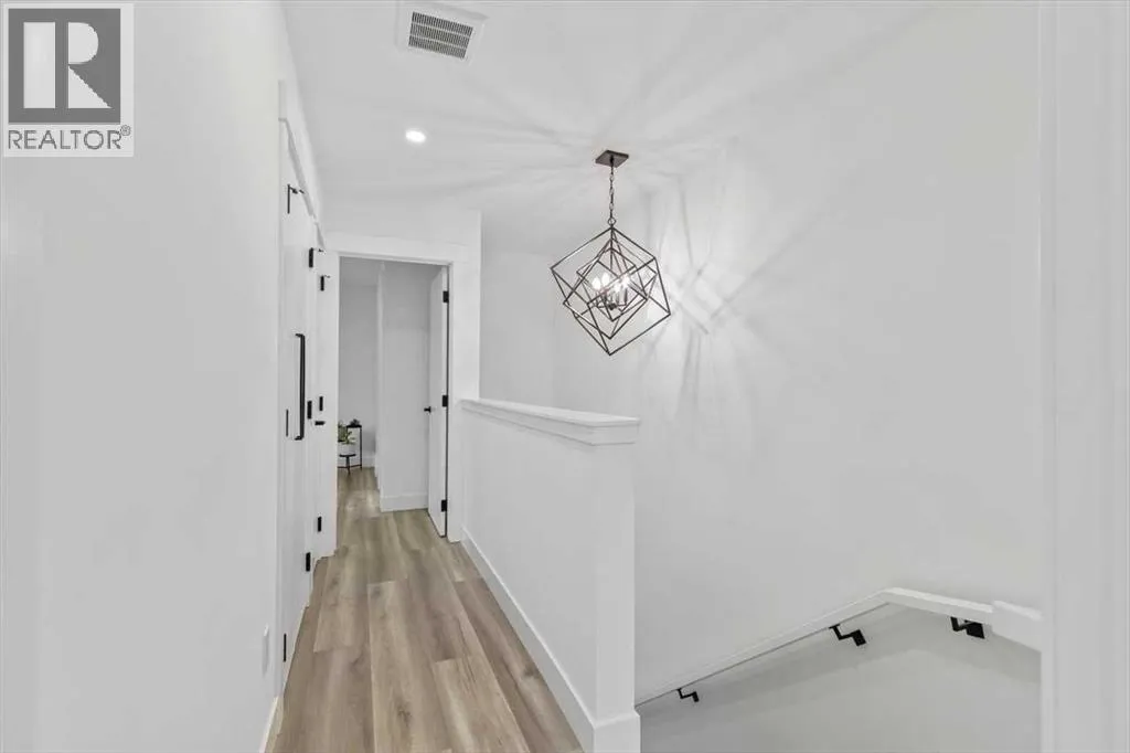 Welcome to this Immaculate and thoughtfully designed town home in the heart of Marda Loop, over 1,700 sq ft of living space, just minutes away from downtown. Features superior party wall system between units. Main floor showcases 11 ft ceiling, open concept layout, vinyl plank flooring, designer built entry unit. The living room is spacious featuring a wall unit, sleek tile, and a Bluetooth enabled electric fireplace. The kitchen is equally impressive, boasting a large island with quartz counter top, ideal for entertaining, ample soft- close cabinetry, stainless steel appliances. The large south facing sliding door brings in rays of sunshine and light through out the day, tastefully covered with Hunter Douglas honeycomb shades and floor to ceiling blackout drapes for privacy professionally installed by Normandeau, overlookimg a fenced, cozy yard leading to a single detached garage.This floor is completed by a spacious guest half bath. Upstairs, the primary bedroom is a true retreat, with vaulted ceilings, double door his and hers closets, large windows with professionally installed electric blackout honeycomb shades. The barn door leads into a spa-like en-suite with heated flooring, double sink vanity, quartz counters, skylight, oversized tiled shower and dual shower heads. The second large bedroom also has it's own en-suite and skylight, plus manual honeycomb shades. The fully finished basement boasts a bright family/ flex room. A third spacious bedroom with a walk-in closet and a full bath. THIS HOME COMES WITH COUNTLESS UPGRADES- A/C, high efficiency furnace, humidifier, thankless hot water on demand, radon extraction sump pump, built-in speaker system, light dimmers in master bedroom, smart thermostat (ecobee), bathroom fan timers, kitchen and master bedroom lights can be manged through smartphone. This exceptional home offers the best of urban living in an ideal location. This is the one you have been waiting for. Book a showing today. (id:27476)