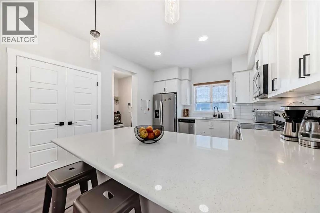 Welcome home to the beautiful community of Legacy. This well-maintained 3-bedroom, 2.5-bath home, offers over 1,560 sq. ft. of developed living space with 9-foot ceilings on both the main floor and basement. Step inside to a bright open-concept layout, where the spacious living and dining areas flow effortlessly into a modern kitchen. The kitchen is equipped with abundant cabinetry, a large island and dining counter with quartz countertops, and stylish finishesâperfect for everyday living and entertaining. A convenient 2-piece powder room completes the main level. Upstairs, youâll find three generous bedrooms, including the primary bedroom with a 4-piece ensuite. Another 4-piece main bathroom and upstairs laundry room add exceptional convenience. The main floor and all bathrooms feature luxury vinyl flooring, while the laundry room includes durable linoleum. The exterior showcases Hardie Board siding in front with vinyl siding around the rest of the home. A double detached garage provides ample parking and storage. The unfinished basement features large windowsâideal for a future bedroomâand a rough-in for a full bathroom, offering a great opportunity to customize the space to your needs.Located in a quiet, family-friendly area, the home is close to public transit, schools, shopping, playgrounds, and scenic walking/biking paths. Relax or entertain on the back deck and enjoy summer BBQs with family and friends. Donât miss outâthis is the perfect family home! Book your showing today! (id:27476)