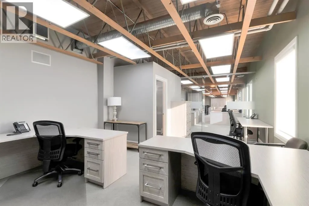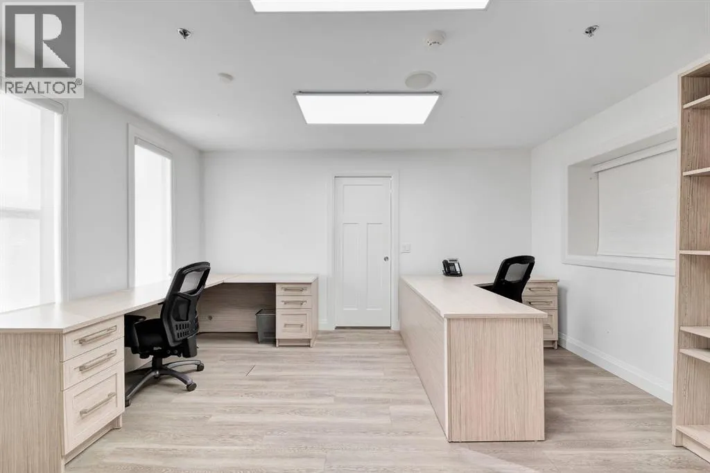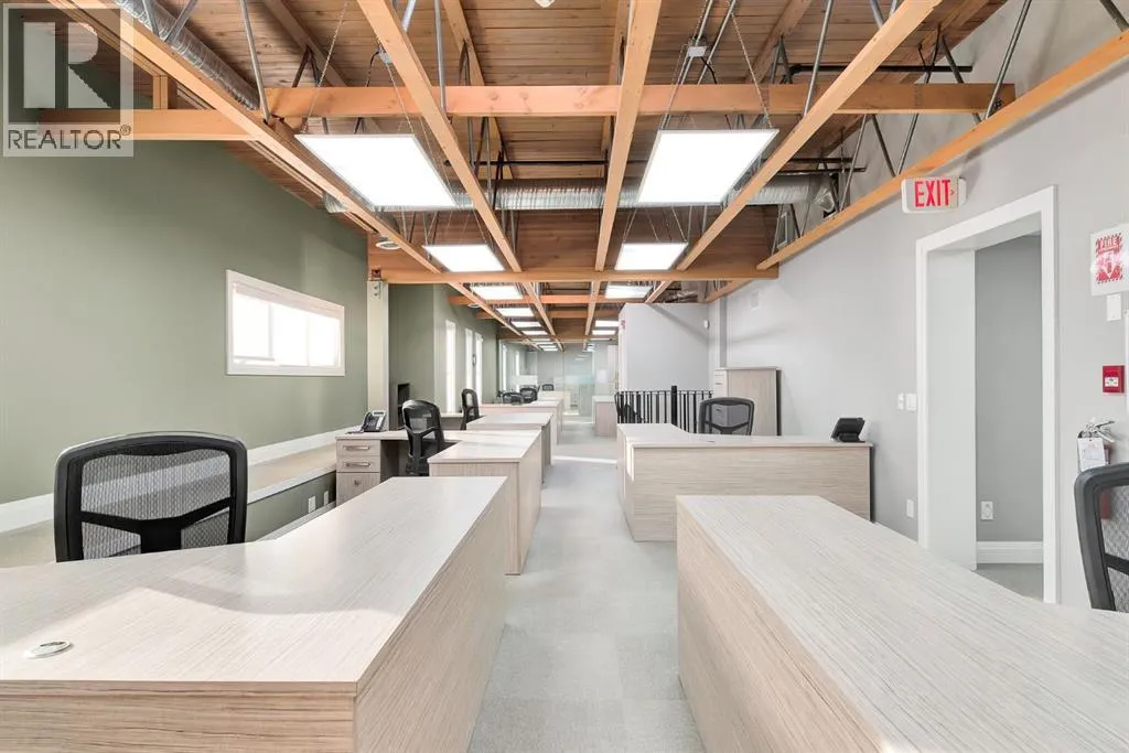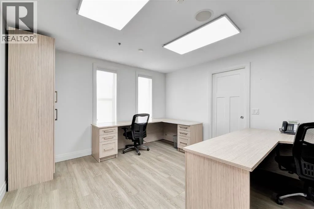 Explore an intriguing office rental opportunity within a beautiful brick building in Greenview Industrial District. Centrally located with quick access to Downtown Calgary and extremely well maintained with high quality office improvements, furnishings and modern upgrades. The main level includes an existing foyer/reception area, boardroom, along with a spacious open area that is perfect for a large office, co-working space, or something entirely unique for your business. Up above on the second level are additional office spaces, storage and workspaces. Property is fully equipped with office furniture, luxury plank flooring, beamed ceilings, an immaculate HVAC system, and illuminated by skylights and an abundance of big windows. This is a breathtaking space with endless potential for all types of professionals. The site is fully paved with 8 parking stalls out front, and is nestled between Centre Street and Edmonton Trail, along with additional nearby amenities that highlight this as a highly desirable destination. (id:27476)