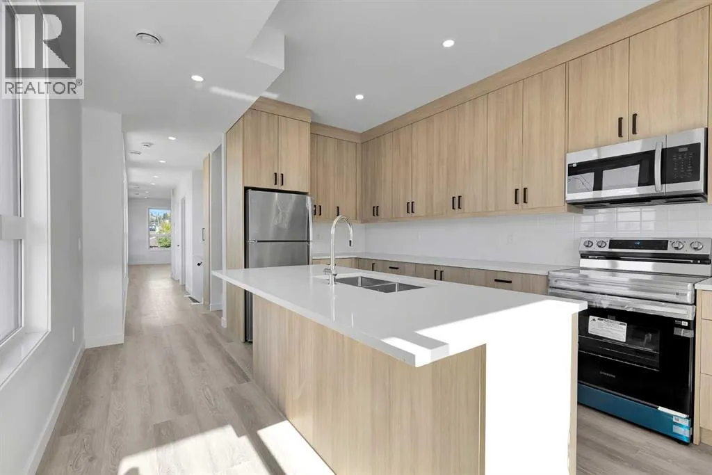 Welcome to 1820 Home Road NW, a stunning corner unit offering over 2,000 sq. ft. of versatile living space. With its prime corner positioning, this residence benefits from enhanced privacy and extra windows that fill the home with natural light.A standout feature of this property is the adaptable ground-level LEGAL suite, equipped with a private 3-piece bathroom. This dynamic space is designed to suit your lifestyle needs: utilize it as a professional setting for a Home-Based Occupation (subject to City of Calgary permitted uses), a secluded guest retreat, or leverage it for income generation through long-term or short-term rentals.Moving up to the main level, the open-concept design is perfect for entertaining. It features durable vinyl plank flooring, a convenient 2-piece powder room, and a chef-inspired kitchen with floor-to-ceiling cabinetry, quartz countertops, stainless steel appliances, and island bar seating. Step out onto the deck to enjoy your morning coffee in the sun.The upper level is thoughtfully laid out with a rare dual-primary design. You will find two generously sized bedrooms, each boasting its own private 4-piece ensuite bathroomâproviding the ultimate setup for roommates, family, or guests.Located in the heart of Montgomery, just steps from the Bow River and Shouldice Park, and offering quick access to Stoney Trail and the Trans-Canada Highway, this home combines massive square footage, income potential, and modern luxury. Project completed in 2025. (id:27476)