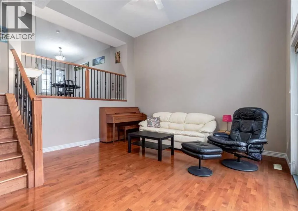 Welcome to 12 Royal Oak Lane NW, a beautifully designed four-level split townhouse offering over 1,400 sqft of developed living space and exceptional privacy with two spacious bedrooms - each with its own ensuite. Step into the inviting heated foyer, leading up to a stunning main living area with dramatic 12-ft ceilings, oversized windows, and a cozy gas fireplace that creates an elegant yet comfortable atmosphere. From here, garden-style French doors open to a full concrete patio and fenced yard - a rare outdoor retreat with direct access to community green space and the shared gazebo. The upper level features a bright kitchen and dining space overlooking the main floor, complete with sleek cabinetry, a built-in oven, and access to the south-facing balcony - perfect for morning coffee or evening relaxation. Upstairs, both bedrooms are thoughtfully separated for privacy, each offering a walk-in closet and 4-piece ensuite, with the primary suite showcasing serene mountain views. The lower level provides additional versatility - ideal for a home office, fitness area, or future development. An oversized attached single garage plus driveway parking and convenient visitor stalls right outside complete this impressive home. Set in the family-friendly community of Royal Oak, residents enjoy access to highly regarded nearby schools, scenic parks and pathways, and an exceptional selection of shopping and amenities. Multiple retail plazas are only minutes away, offering grocery stores, restaurants, medical and professional services, and fitness options. The nearby Shane Homes YMCA at Rocky Ridge provides state-of-the-art recreational facilities, while quick access to major roadways makes commuting effortless. A standout opportunity for first-time buyers, downsizers, or anyone seeking a low-maintenance home with elevated style. Book your showing today! (id:27476)