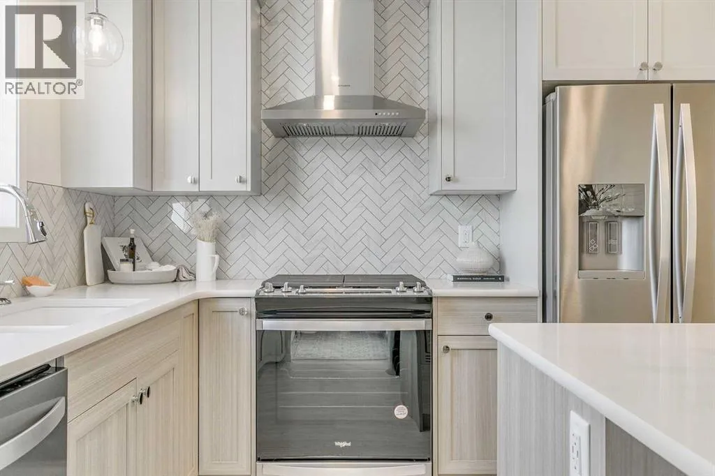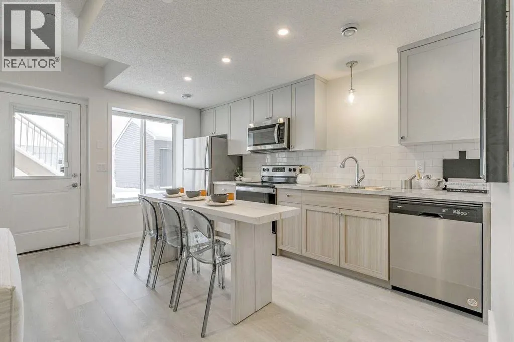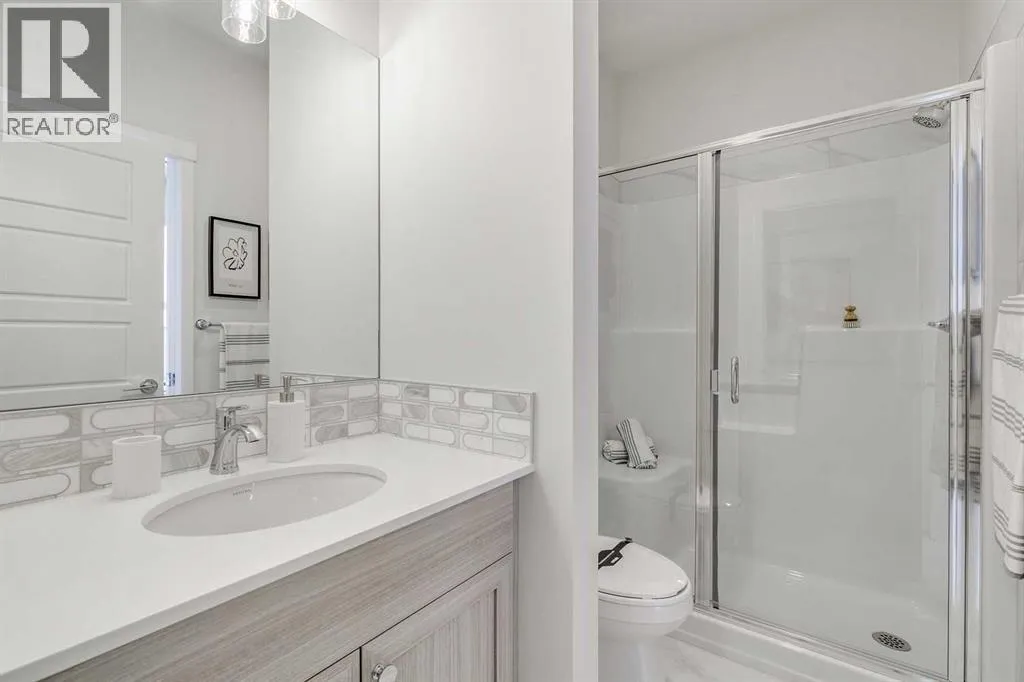 Welcome to this beautifully upgraded 2400+ sq.ft. of developed space former Morrison Homes showhome, a detached laned property located in the desirable community of Livingston. Featuring central air conditioning, exterior Gemstone lighting, and premium finishes throughout, this home offers exceptional value and versatility. The main floor showcases a gourmet kitchen with quartz countertops, a gas range, built-in microwave, kitchen island, pot lights throughout, a walk-in pantry for added storage, and a dedicated dining area perfect for family meals or entertaining. Elegant luxury vinyl plank flooring flows through the level, complemented by an electric fireplace in the living room. This floor also includes a full 4-piece bathroom, a highly functional bedroom or den, and a small rear mudroom for everyday convenience. Upstairs youâll find a bright bonus room along with three spacious bedrooms, plus a dedicated laundry area with a washer and dryer conveniently located on this level. The primary suite includes its own 3-piece ensuite featuring a standalone tiled walk-in shower with a glass door and tile extended to the ceiling, while the additional bedrooms are served by a well-appointed 4-piece bathroom. The highlight of this home is the fully developed walkout legal suite, complete with its own kitchen, bedroom, full bathroom, laundry, and private entranceâan exceptional opportunity for rental income, extended family living, or privacy for guests. Outside, enjoy a deck equipped with a gas line for BBQs. Livingston residents enjoy access to an HOA clubhouse featuring a gymnasium, tennis courts, a splash park, and year-round programming, along with quick access to major routes for easy commuting across the city. This home blends functionality, comfort, and showhome-quality upgrades throughoutâperfect for buyers seeking a move-in-ready property with a legal walkout suite in one of Calgaryâs most desirable communities. (id:27476)