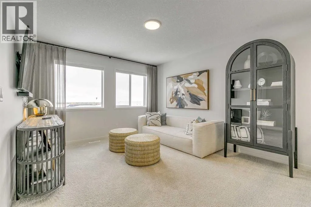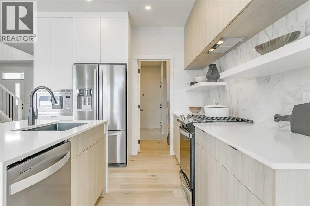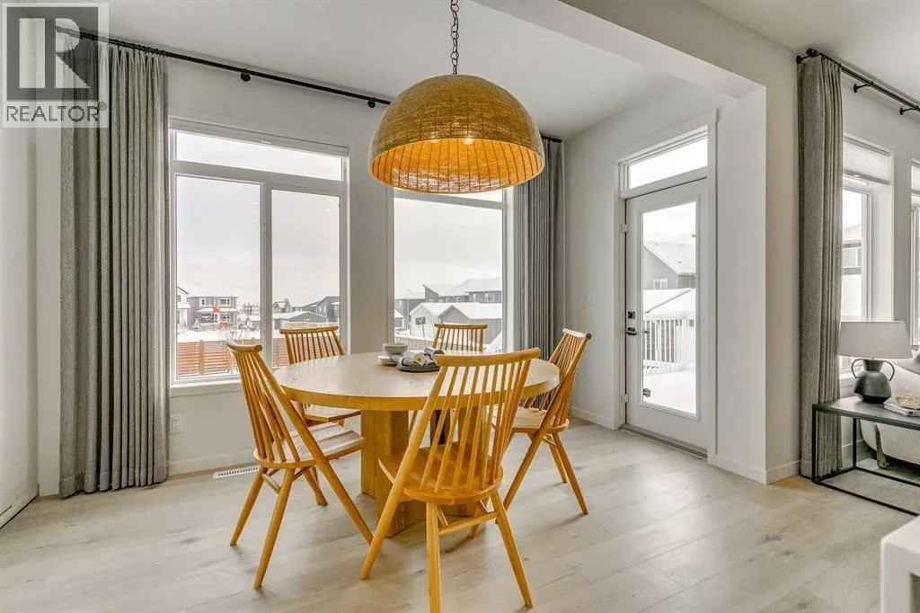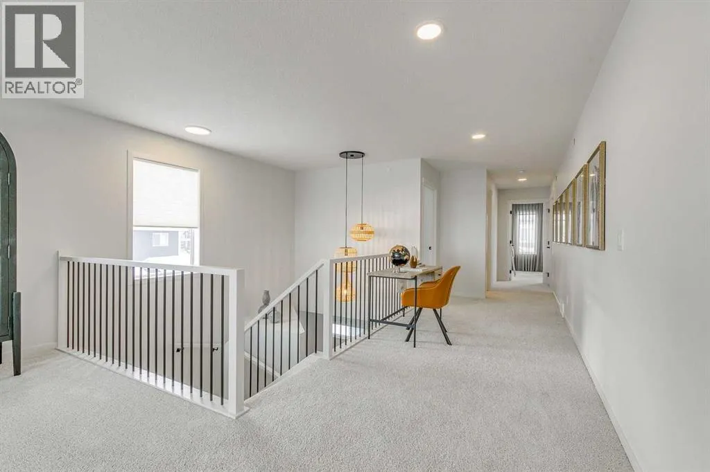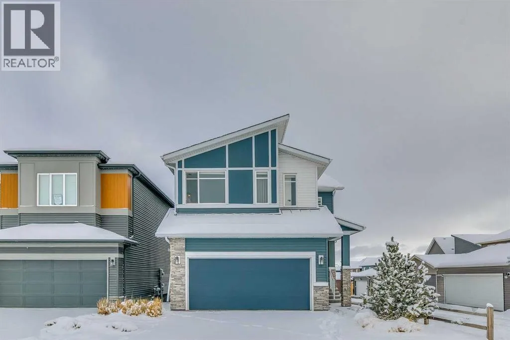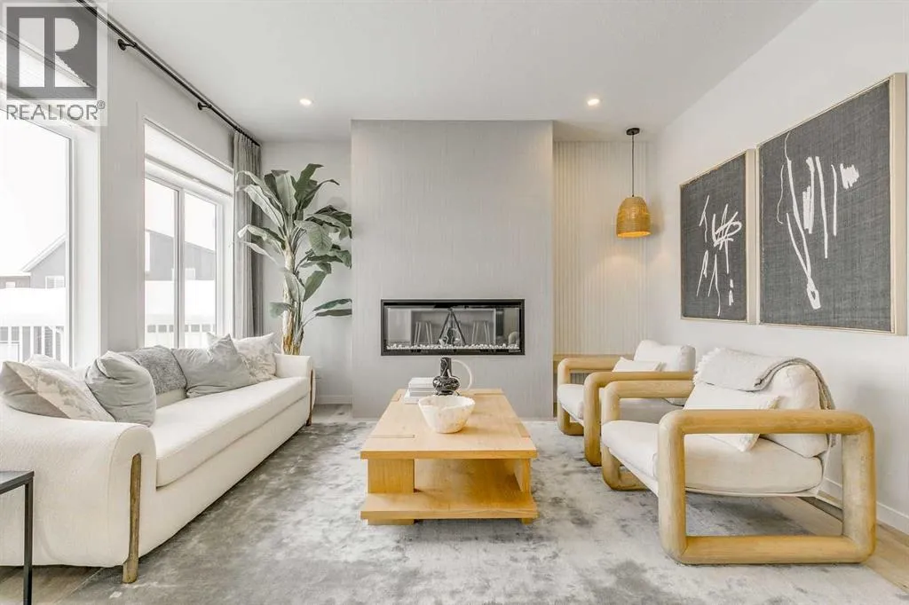 Welcome to this stunning former Morrison Homes that has 2800+ sq.ft. of developed space in the community of Livingston. Situated on a coveted corner lot, this detached property features central air conditioning, exterior Gemstone lighting, an attached front double garage, spindle railing throughout, and showcases premium upgrades from top to bottom. The main floor offers an open-concept layout highlighted by pot lights, elegant LVP flooring, and an electric fireplace that adds warmth and style to the living room. The gourmet kitchen includes a gas range, a beautifully designed kitchen island, a walk-in pantry connected directly to the mud room for effortless grocery unloading, a dining area, and a dedicated den perfect for a home office. A convenient 2-piece bathroom completes the main level. Upstairs features a spacious bonus room filled with natural light, a dedicated laundry area with a washer and dryer and three well-appointed bedrooms. The primary suite includes a luxurious 5-piece ensuite with a large tiled walk-in shower with rainfall showerhead, deep soaker tub surrounded by premium tile, dual vanities with quartz countertops, contemporary flat-panel cabinetry, sleek modern mirrors, and direct access to a spacious walk-in closet with built-in shelving. The additional two bedrooms share another 5-piece bathroom designed for comfort and convenience. The fully developed basement extends your living space with a large recreation area, a wet bar with mini-fridge, an additional bedroom, a 3-piece bathroom, and a separate entrance, offering excellent potential for multi-generational living or added privacy. Built on 9' foundations, the basement feels bright, open, and inviting. Outside, enjoy a massive backyard with a deck equipped with a gas line for BBQs. Livingston residents enjoy access to an HOA clubhouse featuring a gymnasium, tennis courts, a splash park, and year-round programming, along with quick access to major routes for easy commuting across the city. This exceptional home blends luxury, comfort, and functionalityâperfect for families seeking space, upgrades, amenities, and craftsmanship. (id:27476)