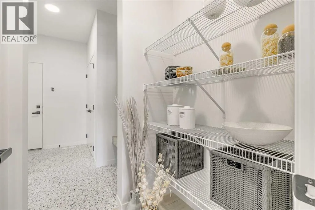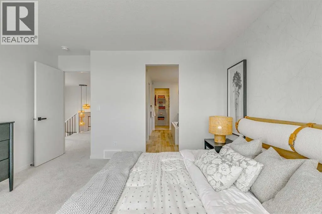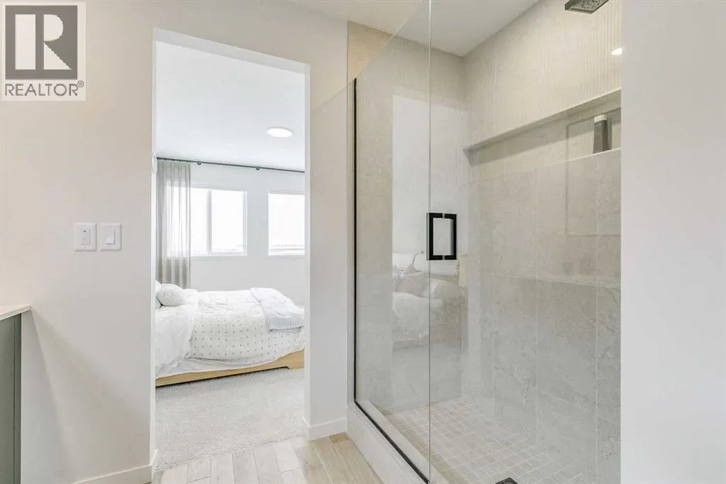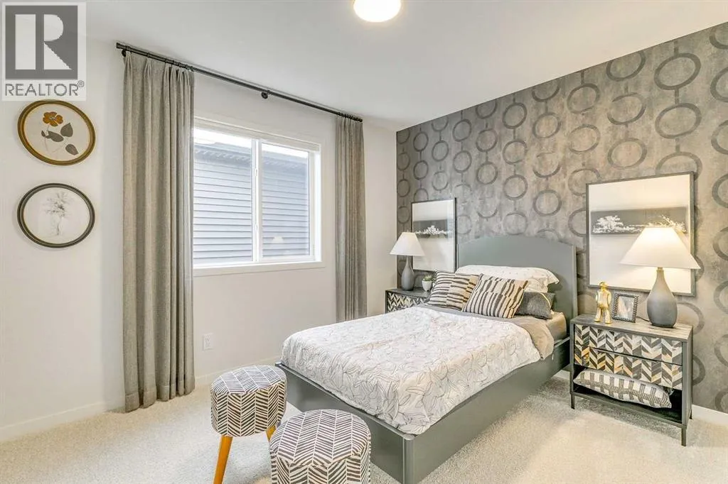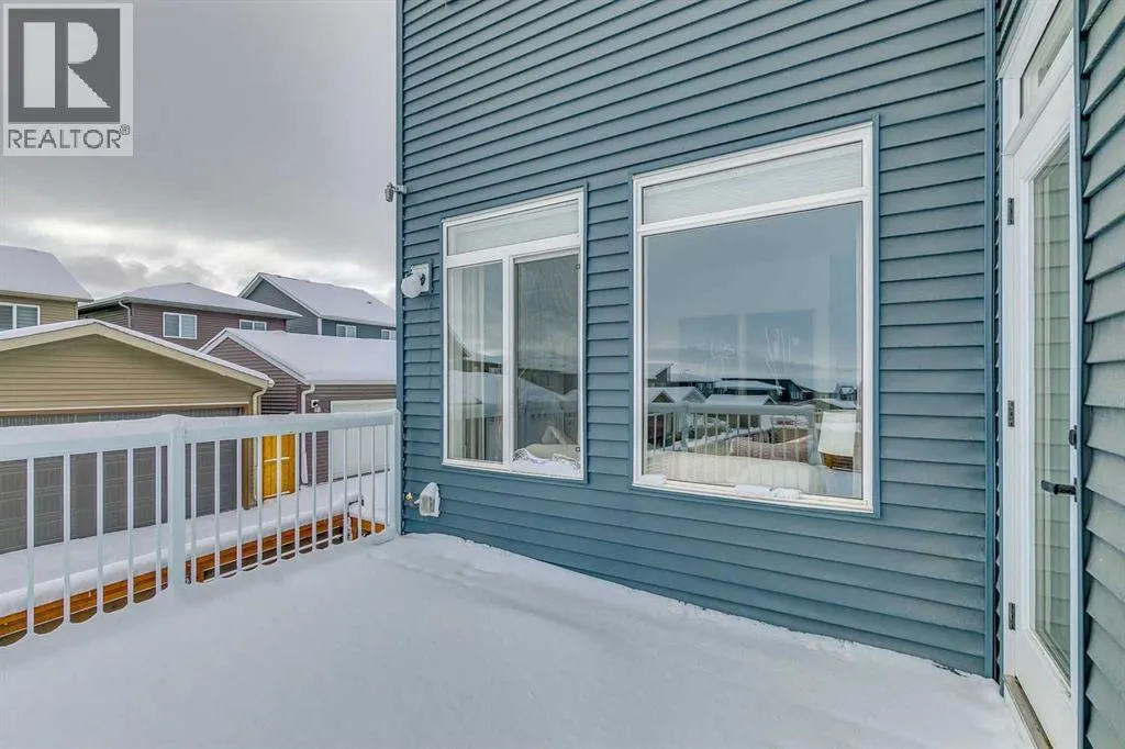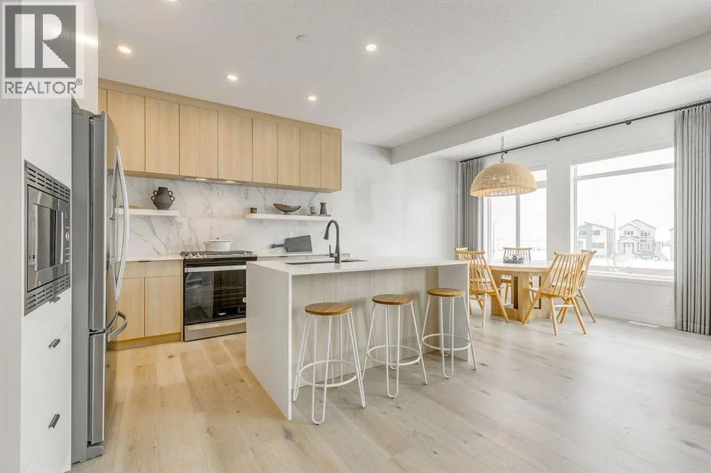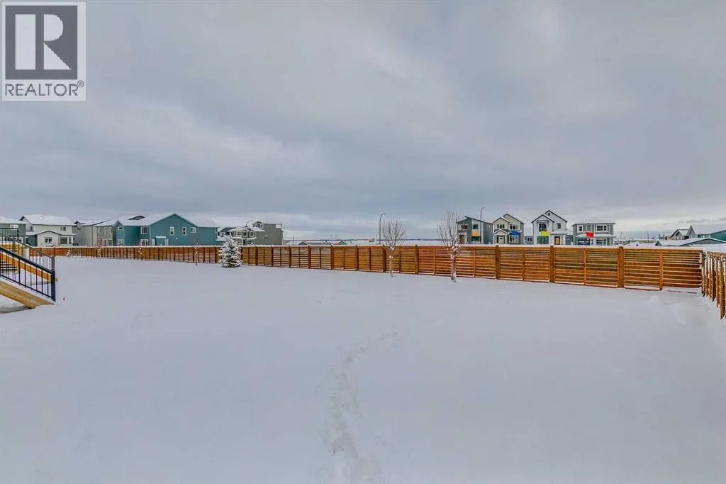 Welcome to this stunning former Morrison Homes that has 2800+ sq.ft. of developed space in the community of Livingston. Situated on a coveted corner lot, this detached property features central air conditioning, exterior Gemstone lighting, an attached front double garage, spindle railing throughout, and showcases premium upgrades from top to bottom. The main floor offers an open-concept layout highlighted by pot lights, elegant LVP flooring, and an electric fireplace that adds warmth and style to the living room. The gourmet kitchen includes a gas range, a beautifully designed kitchen island, a walk-in pantry connected directly to the mud room for effortless grocery unloading, a dining area, and a dedicated den perfect for a home office. A convenient 2-piece bathroom completes the main level. Upstairs features a spacious bonus room filled with natural light, a dedicated laundry area with a washer and dryer and three well-appointed bedrooms. The primary suite includes a luxurious 5-piece ensuite with a large tiled walk-in shower with rainfall showerhead, deep soaker tub surrounded by premium tile, dual vanities with quartz countertops, contemporary flat-panel cabinetry, sleek modern mirrors, and direct access to a spacious walk-in closet with built-in shelving. The additional two bedrooms share another 5-piece bathroom designed for comfort and convenience. The fully developed basement extends your living space with a large recreation area, a wet bar with mini-fridge, an additional bedroom, a 3-piece bathroom, and a separate entrance, offering excellent potential for multi-generational living or added privacy. Built on 9' foundations, the basement feels bright, open, and inviting. Outside, enjoy a massive backyard with a deck equipped with a gas line for BBQs. Livingston residents enjoy access to an HOA clubhouse featuring a gymnasium, tennis courts, a splash park, and year-round programming, along with quick access to major routes for easy commuting across the city. This exceptional home blends luxury, comfort, and functionalityâperfect for families seeking space, upgrades, amenities, and craftsmanship. (id:27476)
