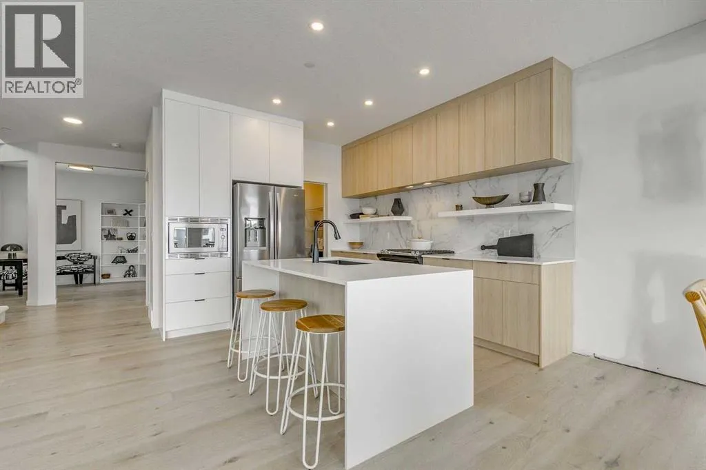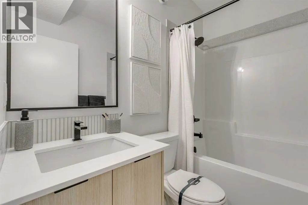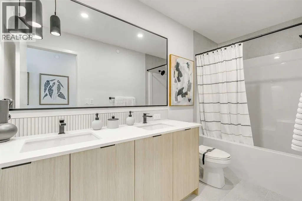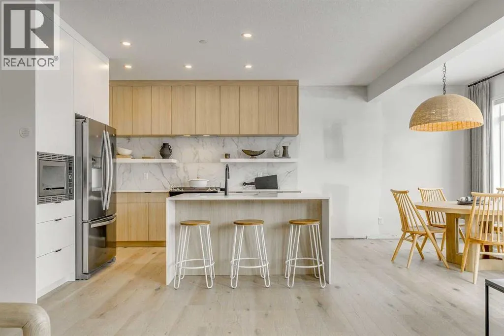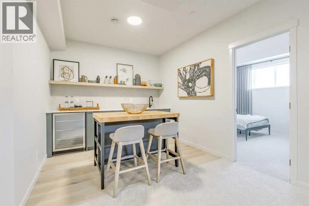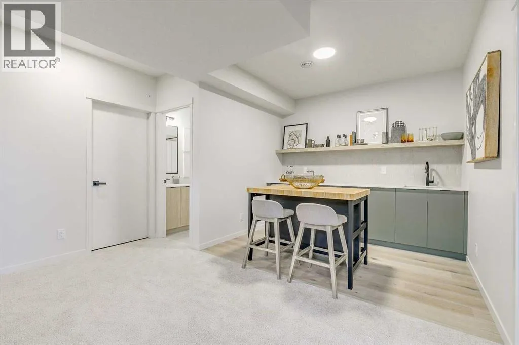 Welcome to this stunning former Morrison Homes that has 2800+ sq.ft. of developed space in the community of Livingston. Situated on a coveted corner lot, this detached property features central air conditioning, exterior Gemstone lighting, an attached front double garage, spindle railing throughout, and showcases premium upgrades from top to bottom. The main floor offers an open-concept layout highlighted by pot lights, elegant LVP flooring, and an electric fireplace that adds warmth and style to the living room. The gourmet kitchen includes a gas range, a beautifully designed kitchen island, a walk-in pantry connected directly to the mud room for effortless grocery unloading, a dining area, and a dedicated den perfect for a home office. A convenient 2-piece bathroom completes the main level. Upstairs features a spacious bonus room filled with natural light, a dedicated laundry area with a washer and dryer and three well-appointed bedrooms. The primary suite includes a luxurious 5-piece ensuite with a large tiled walk-in shower with rainfall showerhead, deep soaker tub surrounded by premium tile, dual vanities with quartz countertops, contemporary flat-panel cabinetry, sleek modern mirrors, and direct access to a spacious walk-in closet with built-in shelving. The additional two bedrooms share another 5-piece bathroom designed for comfort and convenience. The fully developed basement extends your living space with a large recreation area, a wet bar with mini-fridge, an additional bedroom, a 3-piece bathroom, and a separate entrance, offering excellent potential for multi-generational living or added privacy. Built on 9' foundations, the basement feels bright, open, and inviting. Outside, enjoy a massive backyard with a deck equipped with a gas line for BBQs. Livingston residents enjoy access to an HOA clubhouse featuring a gymnasium, tennis courts, a splash park, and year-round programming, along with quick access to major routes for easy commuting across the city. This exceptional home blends luxury, comfort, and functionalityâperfect for families seeking space, upgrades, amenities, and craftsmanship. (id:27476)