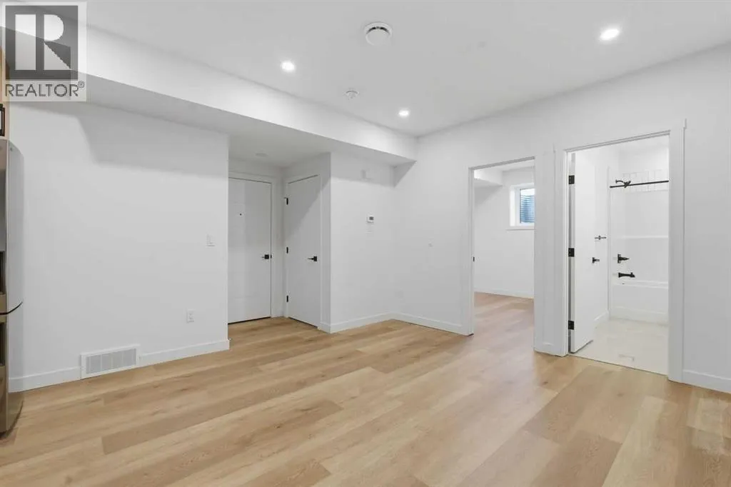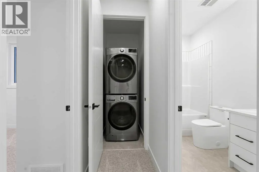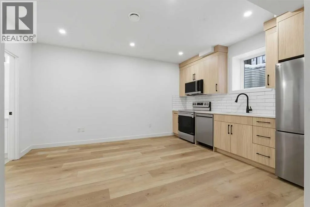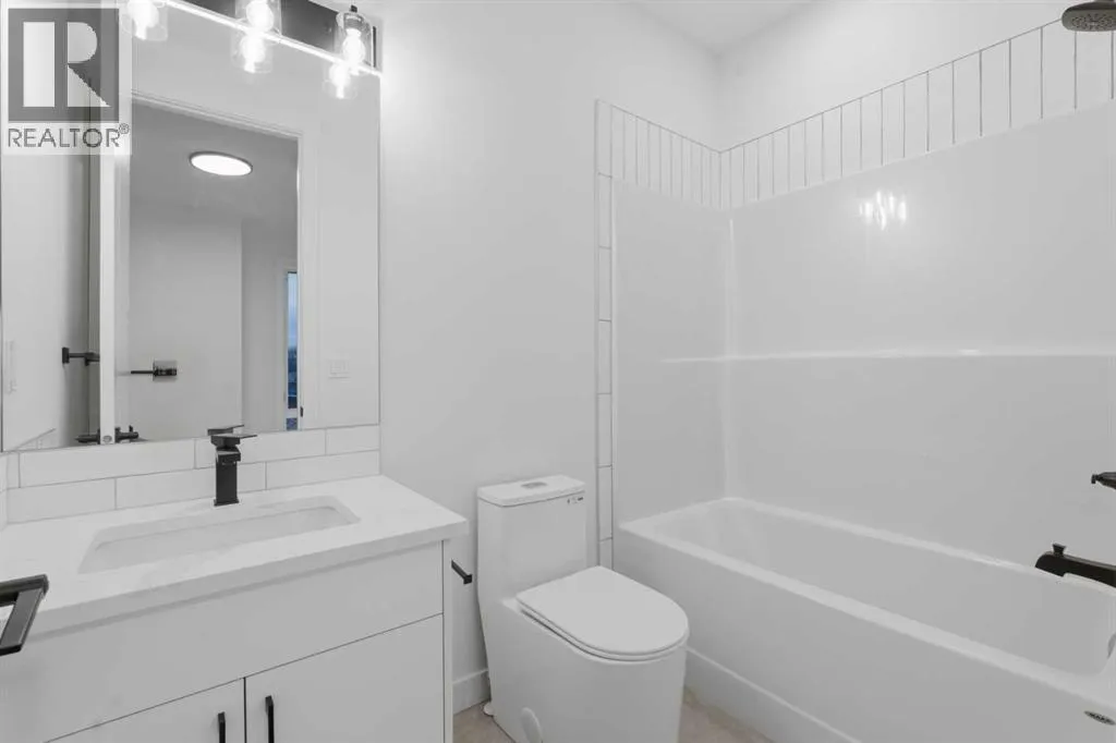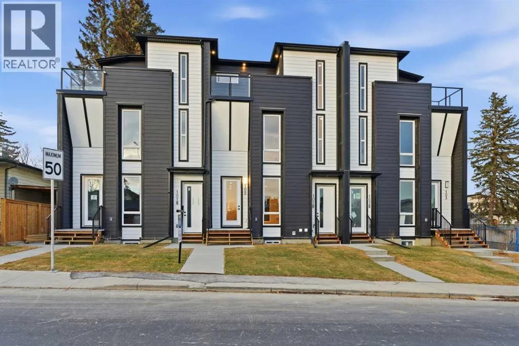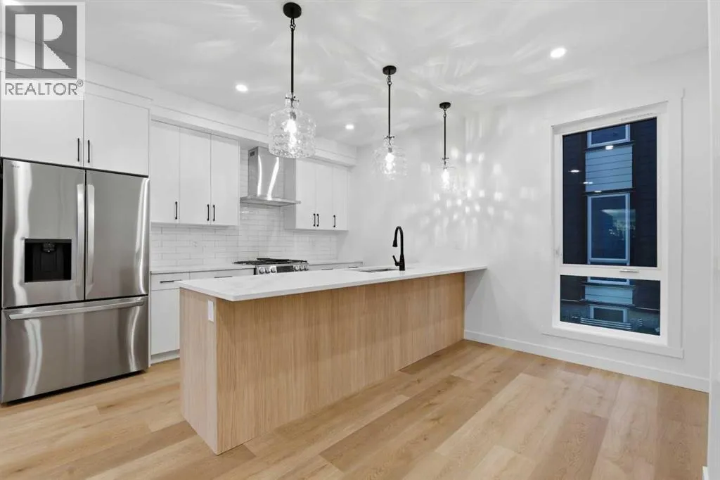 FRONT FACING 3 STOREY UNIT | LEGAL BASEMENT SUITE | DOWNTOWN VIEWS | BRAND NEW BUILD | DETACHED GARAGE | CENTRAL LOCATION | Modern style and thoughtful design define this brand new 3 storey townhome that blends upscale finishes with a highly functional layout in a central location near parks, schools, transit and everyday amenities. A bright main floor creates an inviting first impression with luxury vinyl plank flooring, recessed lighting and generous windows that bring in natural light. An open concept layout supports easy daily living as well as effortless entertaining. A spacious living area promotes relaxation with a floor to ceiling window that amplifies light and connection to the outdoors. The kitchen inspires culinary creativity with stone countertops, a gas stove, full height cabinetry, timeless subway tile and a large peninsula that provides casual seating and room to gather. An adjacent dining area promotes hosting with comfort and flow. A dedicated mud room adds daily convenience while a well positioned powder room completes this level. The second floor encourages livability with 2 well proportioned bedrooms including one with a walk-in closet and private 4 piece ensuite. Laundry on this level is a meaningful upgrade that reduces household steps while a second 4 piece bathroom adds comfort for family and guests. The entire top floor forms a private primary retreat that elevates daily living. A spacious layout provides room to unwind while a spa inspired ensuite features dual sinks and an oversized shower for a calming start and finish to each day. A massive walk-in closet with custom organizers improves easy routines and thoughtful storage. A private balcony captures stunning downtown views and creates an inviting spot for morning coffees or evening beverages. A fully developed lower level extends the homeâs versatility with a self-contained legal suite featuring a private entrance, modern kitchen, comfortable living area, large bedroom, full bathroom a nd its own laundry. This setup creates strong potential for generating rental income or offering guests impressive comfort and independence. A front grassy area adds welcoming curb appeal while a detached single garage ensures secure parking and additional storage. Outstanding access to Confederation Park, playgrounds, groceries, transit, regional bike pathways, Nose Hill Park and downtown makes this location both convenient and connected, adding meaningful long term value. (id:27476)
