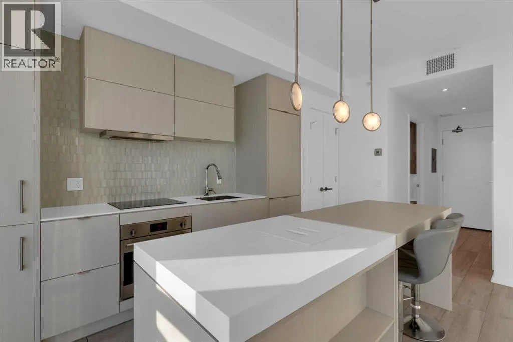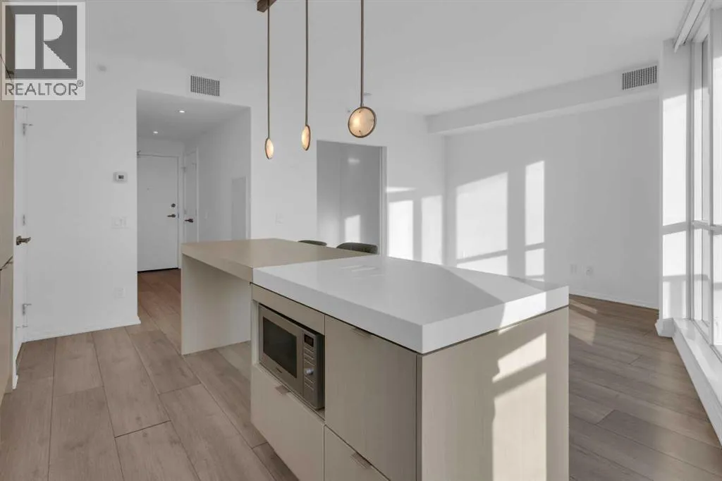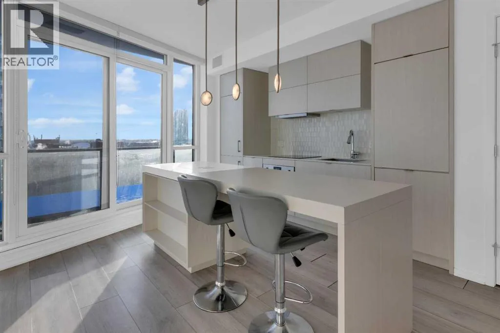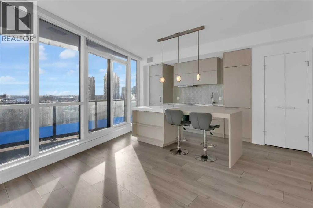 Experience exceptional urban living in this pristine one-bedroom, one-bath residence on the 16th floor of the Verve. Framed by floor-to-ceiling windows, the unit showcases sweeping, unobstructed views of Stampede Park and the Saddledomeâan impressive backdrop whether youâre starting your morning or winding down in the evening. Ideally positioned in one of Calgaryâs most dynamic and evolving inner-city communities, Verve offers immediate access to the Bow River pathways, the East Villageâs growing selection of cafés and restaurants, the LRT, Central Library, Studio Bell, and downtownâs business core. Itâs the perfect fit for professionals who value convenience, walkability, and a vibrant lifestyle.Inside, the unit is thoughtfully designed with modern, timeless finishes: crisp white cabinetry, sleek quartz countertops, elegant pendant lighting, neutral vinyl plank flooring, and a full suite of contemporary appliances. The bright, open layout creates an inviting space to relax, entertain, or simply enjoy the views.Residents of Verve enjoy an impressive collection of amenities, including a well-equipped fitness centre and a beautifully appointed lounge and party room on the 6th floor. The 25th-floor sky terrace provides an extraordinary retreat with panoramic city and river views. Added conveniences include concierge/security services and an assigned storage locker (P3, behind door P309).Donât miss this opportunity to own a refined home in one of Calgaryâs most exciting and well-connected neighbourhoodsâwhere lifestyle, convenience, and design come together seamlessly. (id:27476)