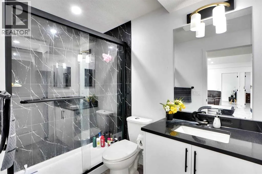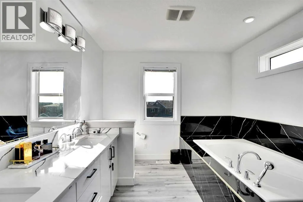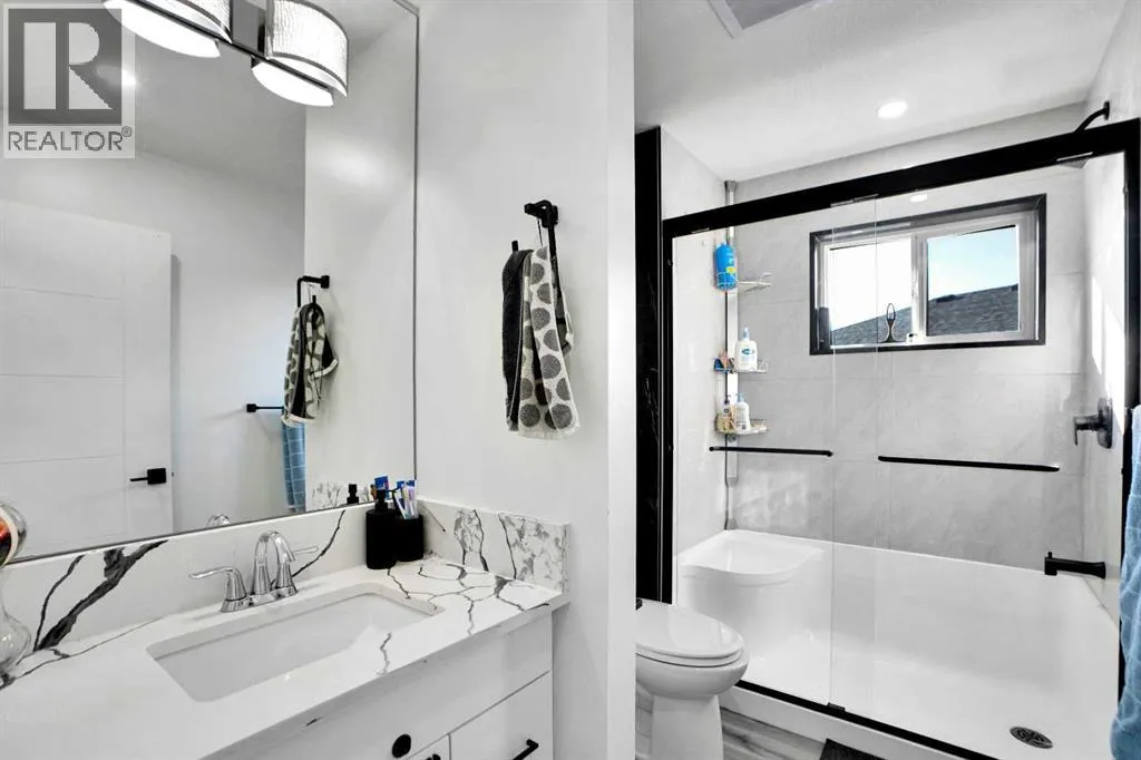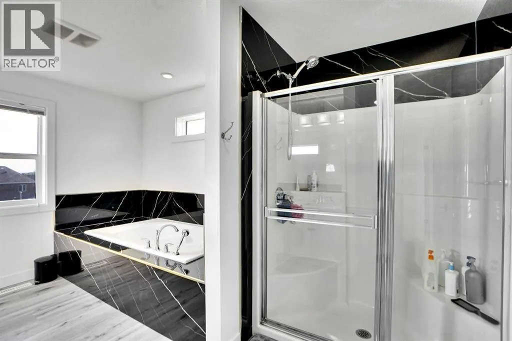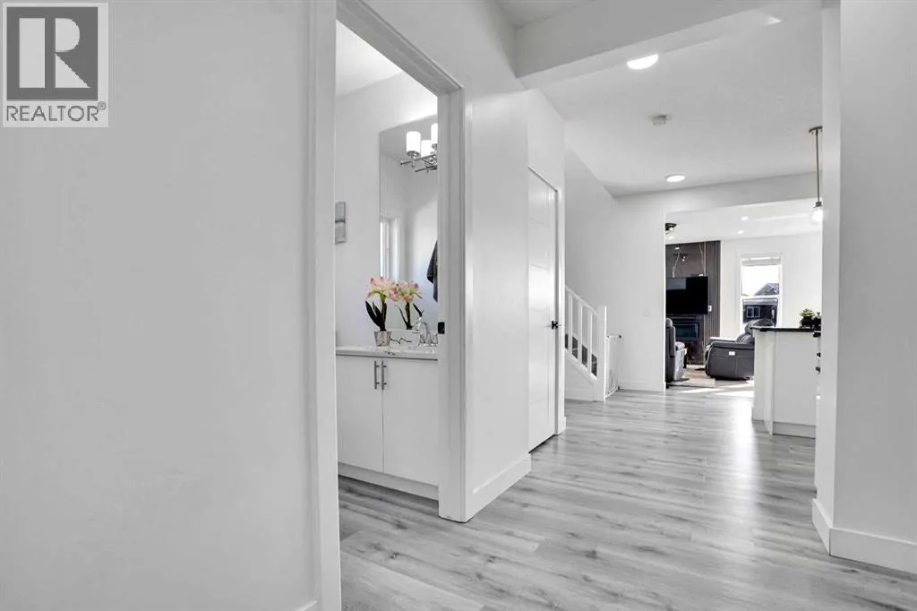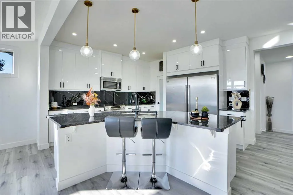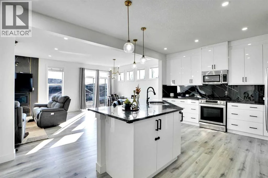 A Rare Opportunity on One of Redstoneâs Largest Pie-Shaped Lots! This fully renovated detached home offers over 2,450 SQFT. of thoughtfully designed living space, with a front-attached garage, rear street access, ample street parking, and City-approved commercial parkingâideal for home-based businesses or extra vehicles.Inside, youâre welcomed by a spacious foyer, a custom feature wall, home office, and mudroom. The main kitchen boasts granite countertops, high-end finishes, and opens to a large living room with a gas fireplace and feature wall. A separate spice kitchen with its own pantry adds convenience.Upstairs, enjoy a bright bonus room, a luxurious primary suite with a 5-piece ensuite and custom walk-in closet, plus three additional bedrooms, a full bath with standing shower, and upstairs laundry.The fully finished basement suite (illegal) with separate side entrance includes two generous bedrooms, a modern kitchen with pantry, a full bathroom, and stacked laundry.Set on one of the largest lots in the community with unique dual access and commercial-use potential, this home is truly a rare opportunity in Redstone. Donât miss your chance to own this exceptional property! (id:27476)