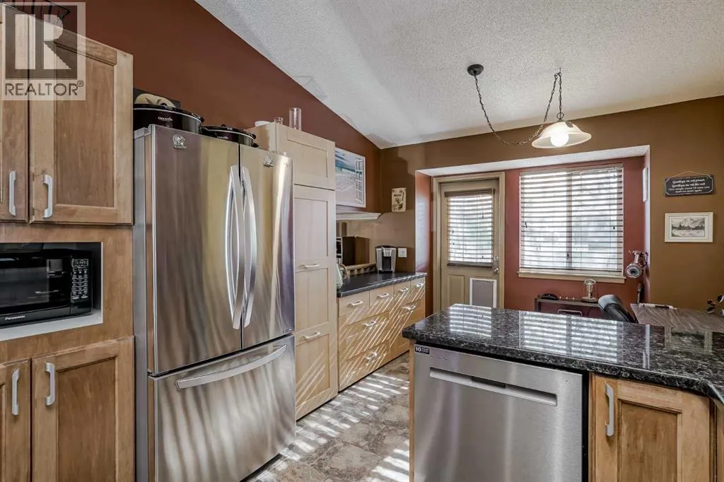 Welcome to this beautifully updated home on a quiet, friendly close in HIGHLY desirable Citadel.LOCATION: A 10 min (or less) WALK gets you to transit, Citadel Park Elementary, CitadelCommunity Association, parks/playgrounds AND ravine trails! A âhiddenâ tot-lot playground anda book-nook are across the street! Only 5-10 min to Beacon Hill (Costco), Crowfoot Crossing(LRT), Royal Oak (Auto Mall), and Superstore; Not to mention Tom Baines Secondary School,Robert Thirsk High School, Crowfoot Public Library, Rocky Ridge YMCA/skate park/athletic park!In 20 min (or less) youâre Downtown, at Market Mall, U of C, Hwy 1 to Banff, or jetting away at theAirport! INSIDE: This sophisticated home offers functional design perfect for a family, large orsmall, with Great sight lines! Warm, glowing, contemporary décor is featured throughout the2300 SQFT OF LIVING SPACE! Youâre immediately impressed by soaring vaulted ceilings andgleaming hardwood floors extending from the entry. The renovated kitchen stands out withgranite countertops, matching tile backsplash, eat-in area and top-of-the-line STAINLESS STEELAPPLIANCES! Comfort and gathering are emphasized in the HUGE family room (hard-wired forsurround-sound), centered by a beautiful stone fireplace; The smart layout means you cancreate a room within a room (currently a beverage center)! The main level also features ahidden laundry, office (currently a gym), and large mudroom to bustle in and out of theATTACHED 2-CAR GARAGE! A main floor powder room is tucked away by the mudroom forprivacy/convenience; All bathrooms have low-flush toilets! The 2 spacious secondary bedroomswill neatly sleep Queen beds (one has a HUGE bonus) and share a FUN 4-piece bathroom! Quietand private, the Primary Suite will sleep a King bed. An updated and modern 4-piece ensuite(with extra-deep tub) and walk-in closet complete your retreat. The FINISHED basement couldbe a family hangout or hobby area (currently a library/office). The ADDITION AL downstairs roomcould be an art studio, meditation retreat, a FOURTH BEDROOM; Let your imagination be yourguide! OUTSIDE: The fully fenced and south-facing backyard teems with sunlight, a perfectspace for outdoor enjoyment! Imagine, relaxing on your HUGE deck with family/friendssurrounded by mature trees, the BBQ going, tons of grass for kids to play on⦠or simply a warmbeverage as the sun peaks into your private oasis! The backyard hosts a generous 8âx10â shed,established apple tree (delicious!) and lilac bushes for seasonal enjoyment. Hand-crafted rockgardens/flower beds border the grounds (one could be a dog-run for Fido). The grass front/backwas prepped for a beautiful bloom in spring! Speaking of out front, the OVERSIZED drivewayaddition is designed for a (diesel) truck, travel trailer, or simply ease of visitor access! Seller willinclude the extra fridge/deep freeze, so be ready to stock up for big little appetites orcelebrations galore! Cheers to HOME! (id:27476)