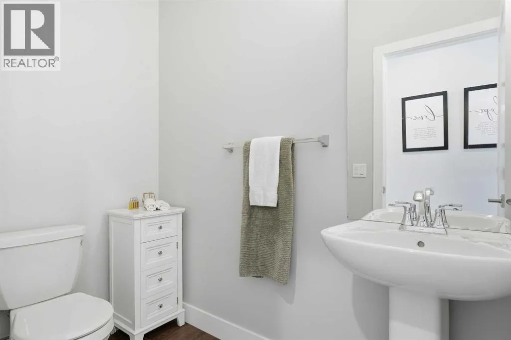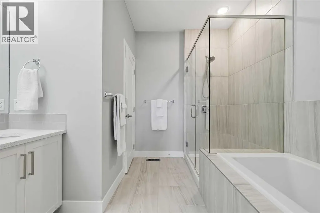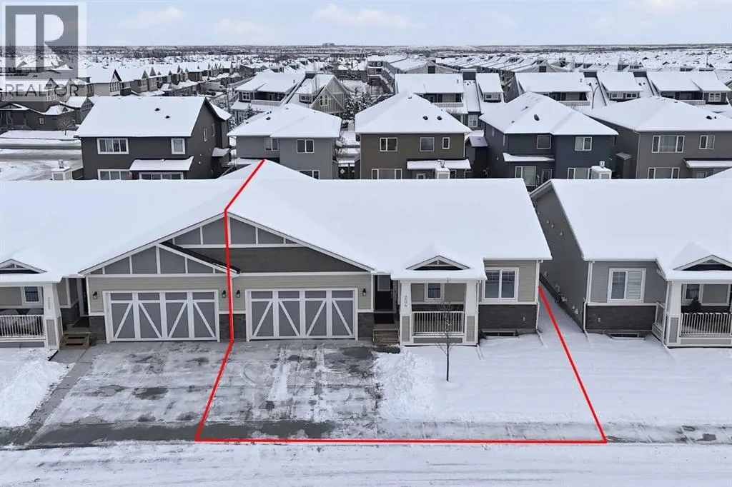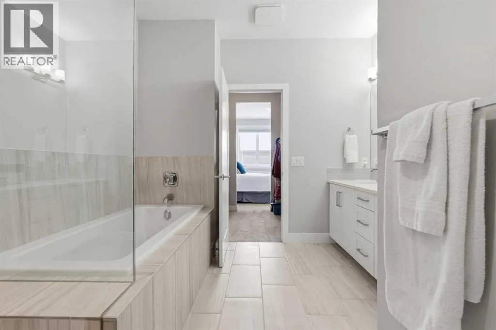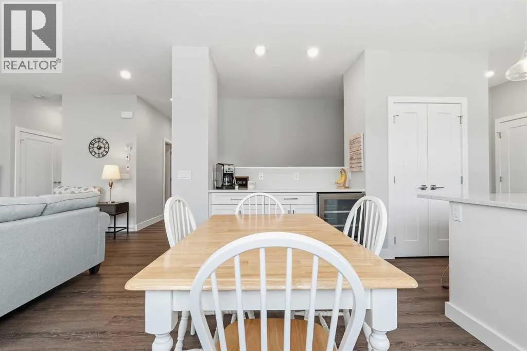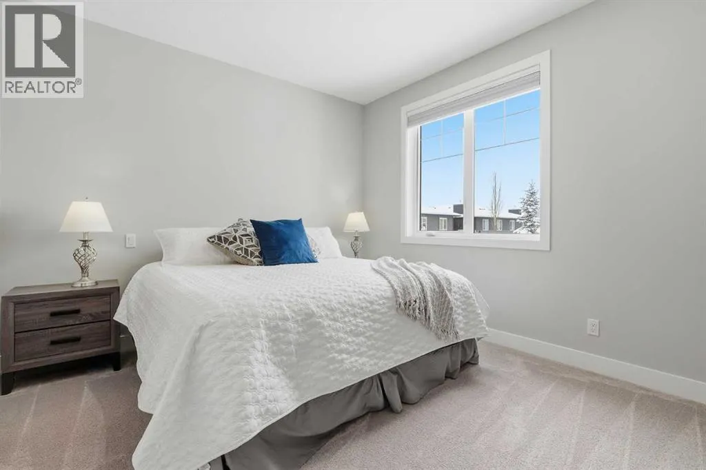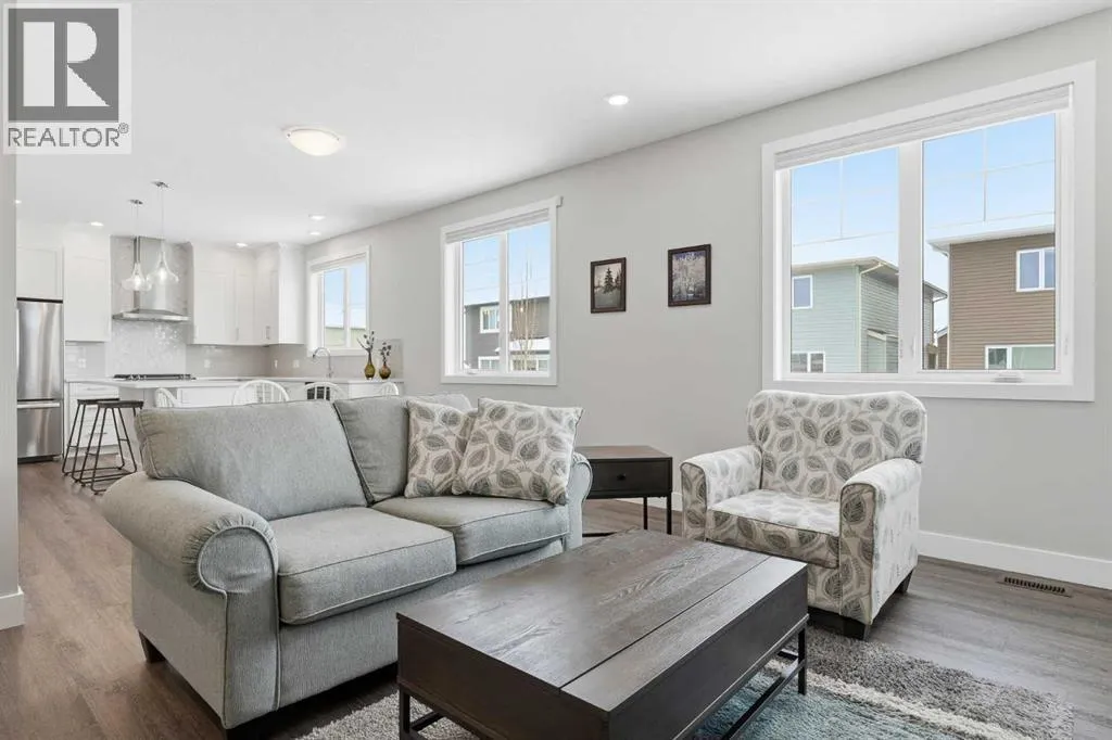 Experience the ease of lock-and-leave villa living in this nearly brand-new home, completed in 2024 and still carrying that fresh, new-home feel (and smell!) Elegantly and functionally designed, this low-maintenance villa offers tons of developed living space and is surrounded by everyday conveniences, including a nearby nature reserve, Spruce Meadows, shopping, and excellent access to major transportation routes. Inside, the home is loaded with upgrades. Through the front door youâre greeted with luxurious vinyl plank flooring underfoot, high ceilings above, and a neutral color palette throughout - each space absolutely drenched in natural sunlight. A quaint den to your right offers flexible use, while a handy half bath is thoughtfully tucked away from the main living and dining areas. Youâre then welcomed into the bright living room, featuring a gorgeous upgraded gas fireplace and access to your rear deck, complete with a gas hookup for your BBQ. The kitchen & dining area truly anchor the home with their âwowâ factor: extended height cabinets, a stunning hood fan, gas range, fridge with water, and a built-in microwave all form part of the upgraded appliance package. Quartz countertops make prep and cleanup effortless, while under-cabinet lighting adds warmth and ambiance at the end of the day. All cabinetry is finished with soft-close hinges and practical organizers throughout. The dedicated coffee/butler server station with a beverage cooler keeps your main counter space free and functional, and offers even more prep & storage space. The main level is designed with true convenience in mind, including side-by-side laundry. The generous primary bedroom features a large walk-in closet that leads into your spa-like 5-piece ensuite complete with dual sinks, a stunning tub, stand-alone shower, separate toilet room, and luxurious in-floor heating. Downstairs, high ceilings create a bright, open feel thatâs far from a typical basement. A huge living area offers flexibili ty for a gym, media space, games room - whatever suits your lifestyle. Two additional bedrooms, a 4-piece bathroom, and ample storage complete the lower level. The utility room includes a high-efficiency furnace, sump pump, rough-in for radon mitigation, air exchange system, and a large hot water tank. This villa is finished with central A/C, a double attached garage, and a generously sized driveway (shoveled by the condo corp!) Beautifully appointed and designed for effortless living, this home is the perfect blend of comfort, luxury, and low-maintenance convenience - an ideal option for anyone seeking easy living. This is truly a smart move. (id:27476)
