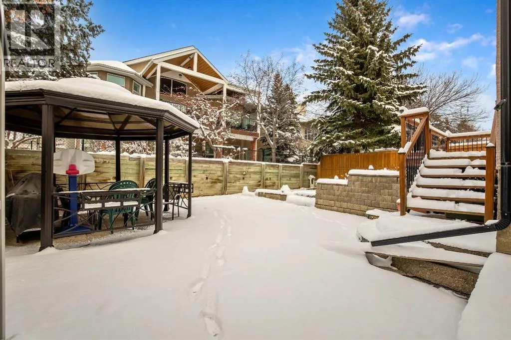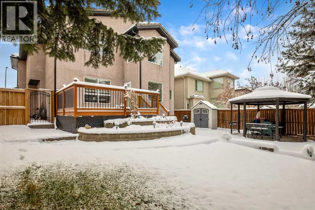 Room to grow and space to breathe, this five-bedroom, fully finished home with more than 3,500 sq ft of developed living space sits on a quiet street in the heart of Signal Hill and offers the ideal backdrop for family living at its best. Step inside the welcoming front door and you'll immediately notice the vaulted ceilings, huge windows, curved staircase, and warm maple hardwood floors. The formal living room and spacious dining room are perfect for large family dinners and nights with friends. Continuing on the main floor, you'll enjoy the well-designed kitchen with corner pantry, granite counters and a breakfast bar, and the adjacent dining nook provides a less formal option for meals on the go and lazy mornings with coffee and a newspaper. The cozy family room features those same vaulted ceilings and large windows as the formal living room, and the main floor den with French doors is useful on those days when you have to work from home. Heading upstairs on the grand curved staircase to the second floor, you will be reminded of the spaciousness of this home. The primary bedroom will fit a king-sized bedroom set, and you'll appreciate the large ensuite and walk-in closet. The remaining three upstairs bedrooms share another 4-piece bathroom, and each bedroom has more than enough space to serve as a children's room, a guest room, or additional home offices. Heading to the fully developed basement, you'll be greeted by a peaceful water feature before continuing to the main entertainment spaces. You'll find a large custom bar area and huge rec room. No need to downsize your TV to fit in this space! Order some custom theatre seating and a large sectional and make it your own. At the other end of the large rec room, away from the main entertaining area, is an additional space that would be perfect for a home gym. Rounding out this floor is a fifth bedroom, a 3-piece bathroom, and additional storage spaces. In the backyard, you'll enjoy a large deck, concrete patio area , as well as a lovely gazebo - it may be snowy and cold now, but start thinking about spending summer nights in this yard. With schools, shopping, and major roads nearby, but located on a quiet cul de sac, the location of this Signal Hill home is second to none. Call your REALTOR® and book a showing today! (id:27476)