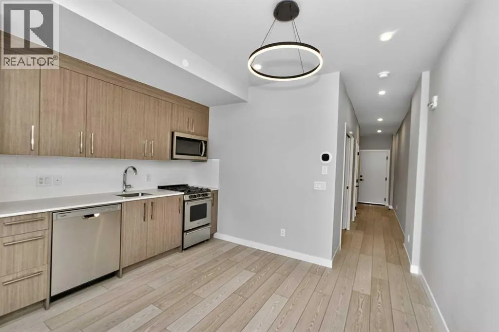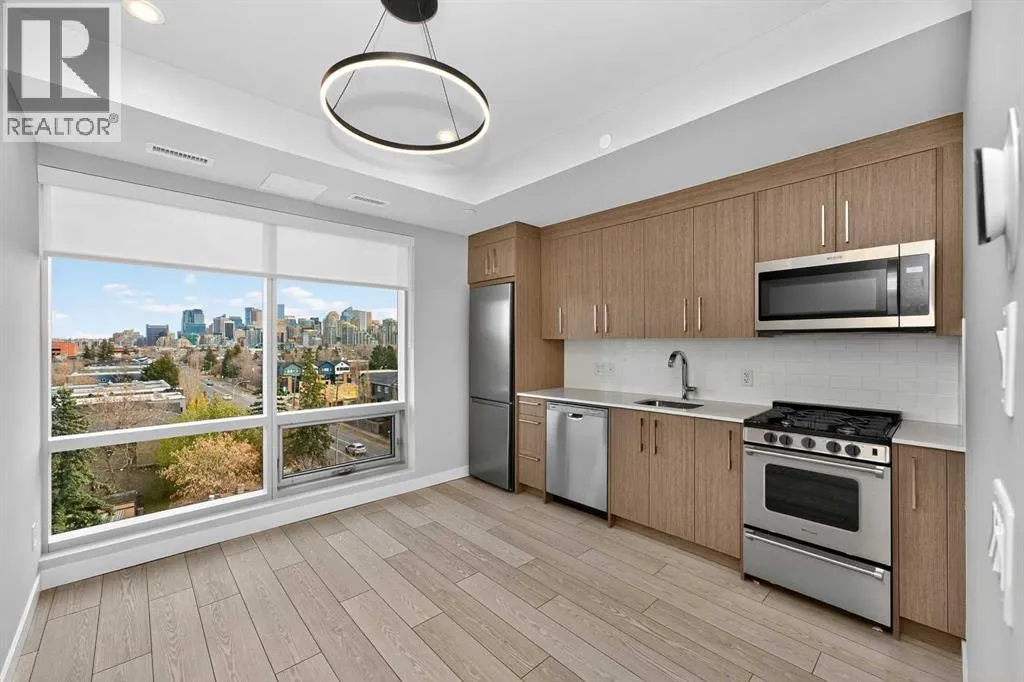 Welcome to Frontier by Truman Homes â an exclusive concrete-built residence ideally situated in West Hillhurst, just steps from the vibrant Kensington district, one of Calgaryâs most desirable and walkable inner-city neighborhoods.This brand-new 1-bedroom, 1-bathroom corner suite on the 5th floor offers 396.sq. ft. of thoughtfully designed living space enhanced by floor-to-ceiling windows that fill the home with natural light.The open-concept layout showcases luxury vinyl plank flooring throughout, a spacious living and dining area, and a modern kitchen equipped with quartz countertops, stainless steel appliances, and a gas cooktop.The bright primary bedroom features expansive windows and generous closet space, while the contemporary 4-piece bathroom includes a quartz vanity and in-suite laundry for added convenience.Residents of Frontier enjoy premium amenities such as a state-of-the-art fitness center, co-working lounge, and a beautifully landscaped second-floor terrace. The building also offers titled underground heated parking and on-site retail, including Fresco, C+C Coffee, Crave Cupcakes, Metro Liquor, and more.With boutique shops, cafés, award-winning restaurants, and scenic Bow River pathways just steps away â plus quick access to Downtown Calgary and the LRT â this home perfectly blends comfort, convenience, and connectivity.Combining upscale finishes, intelligent design, and a prime corner location, this stunning unit is an outstanding opportunity for both homeowners and investors alike. (id:27476)