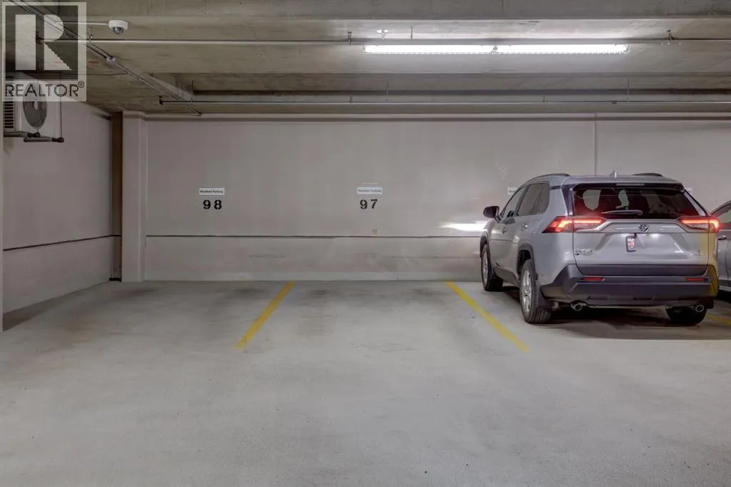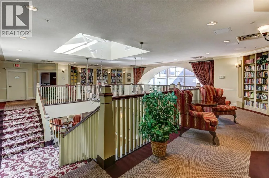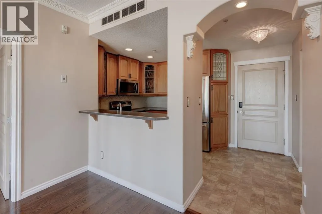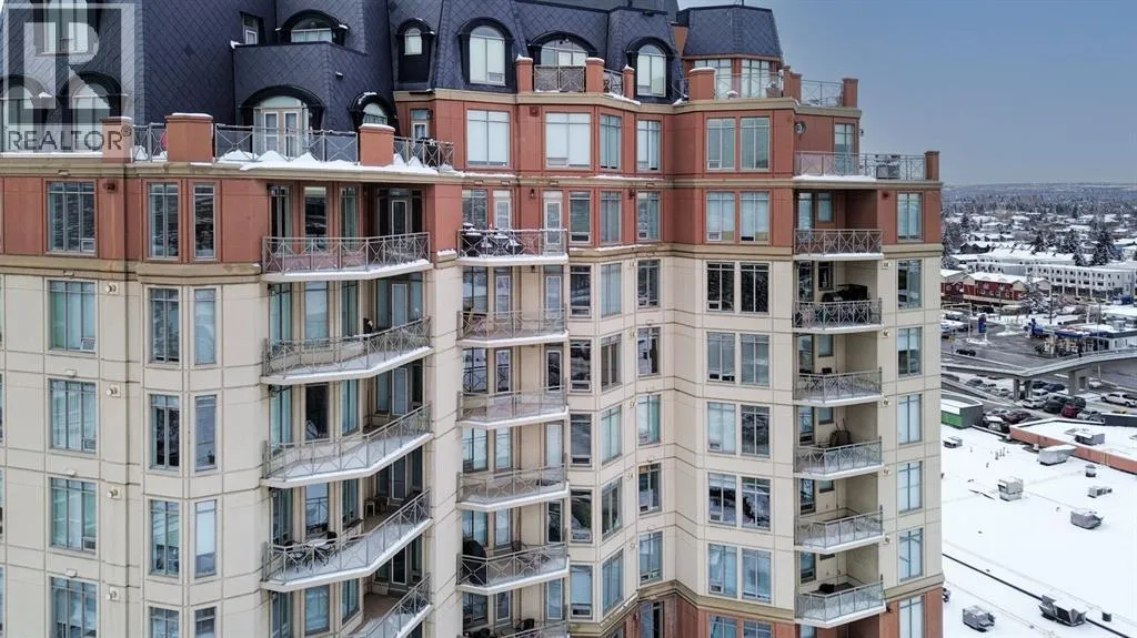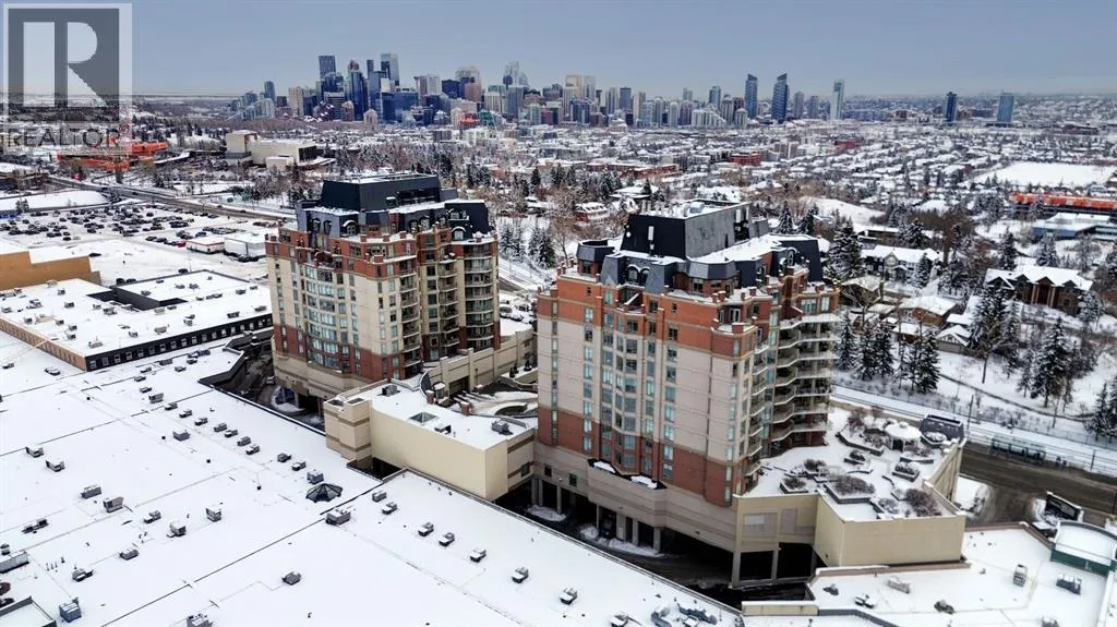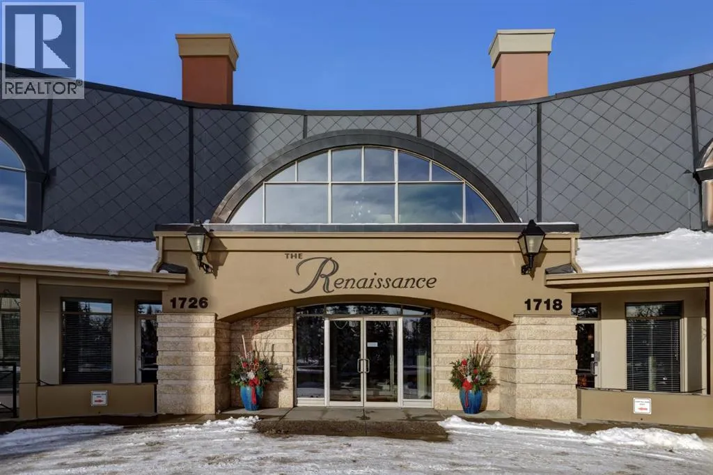 Welcome to the East Tower of the Renaissance 18+ condominium complex! This 2-bedroom, 2-bathroom condo has a very homey feel with hardwood floors, oak cabinets and a gas fireplace. The kitchen has stainless steel appliances, plenty of countertop area, and a cutout window that allows natural light into the kitchen from the large east facing living room windows and balcony door! There is a den conveniently located at the front door that has a coat closet. The living room and dining room areas have a bright and open concept. The spacious primary bedroom has access to the balcony that has an unobstructed view to the east. The 5-piece ensuite has a deep soaker tub, and a separate shower. A second bedroom offers private access to the 4-piece main bathroom with a stacked washer and dryer. This home also includes one titled, heated underground parking stall. The assigned storage unit is located on the main floor. Residents of the Renaissance enjoy exclusive access to amenities, including a 24 hour concierge, fitness centre, games and craft rooms, a movie theatre, meeting room, outdoor terrace, and guest suite. There is an elevator with direct indoor access to North Hill Shopping Centre. The Lions Park C -Train station is nearby. Easy access to downtown, SAIT, Jubilee Auditorium, and 16th Ave. Call your favourite Realtor to view this lovely property. Click on the 3D symbol at the top of the listing page to view the entre virtual tour. (id:27476)