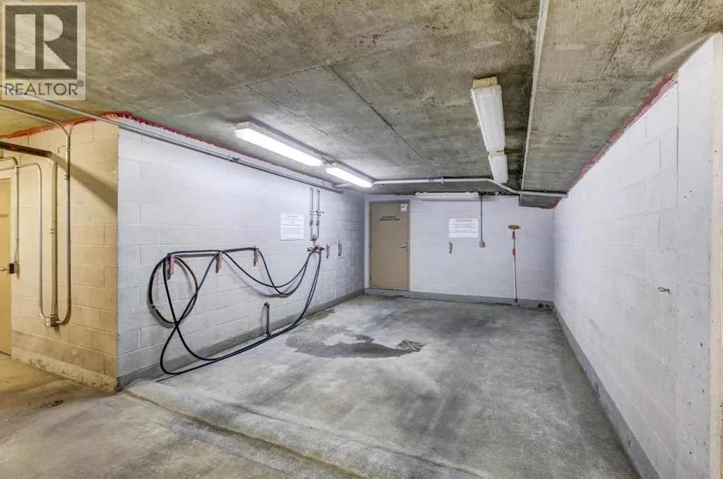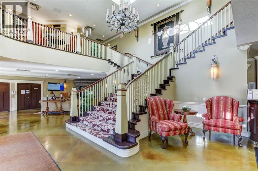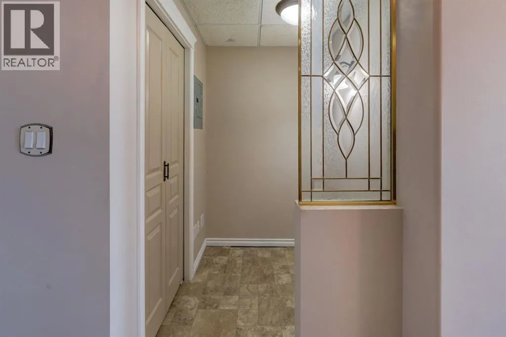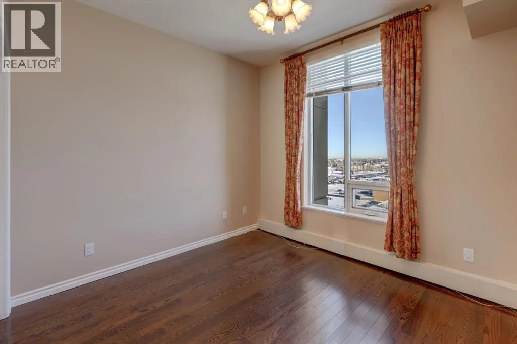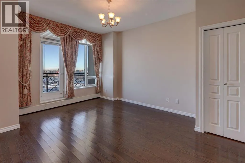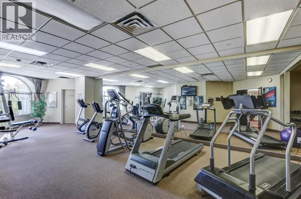 Welcome to the East Tower of the Renaissance 18+ condominium complex! This 2-bedroom, 2-bathroom condo has a very homey feel with hardwood floors, oak cabinets and a gas fireplace. The kitchen has stainless steel appliances, plenty of countertop area, and a cutout window that allows natural light into the kitchen from the large east facing living room windows and balcony door! There is a den conveniently located at the front door that has a coat closet. The living room and dining room areas have a bright and open concept. The spacious primary bedroom has access to the balcony that has an unobstructed view to the east. The 5-piece ensuite has a deep soaker tub, and a separate shower. A second bedroom offers private access to the 4-piece main bathroom with a stacked washer and dryer. This home also includes one titled, heated underground parking stall. The assigned storage unit is located on the main floor. Residents of the Renaissance enjoy exclusive access to amenities, including a 24 hour concierge, fitness centre, games and craft rooms, a movie theatre, meeting room, outdoor terrace, and guest suite. There is an elevator with direct indoor access to North Hill Shopping Centre. The Lions Park C -Train station is nearby. Easy access to downtown, SAIT, Jubilee Auditorium, and 16th Ave. Call your favourite Realtor to view this lovely property. Click on the 3D symbol at the top of the listing page to view the entre virtual tour. (id:27476)