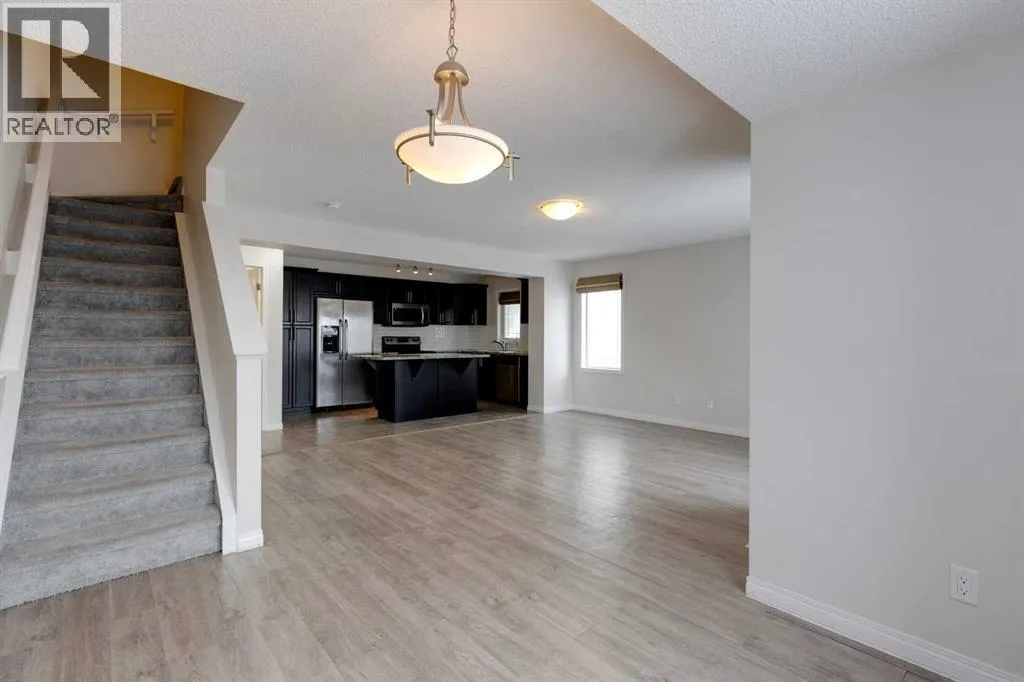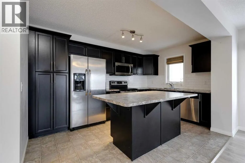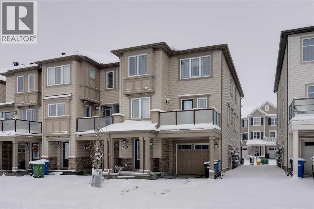 Welcome to this bright and inviting end-unit townhome in the heart of Cityscape, perfectly positioned steps from parks, green space, sports fields, and scenic walking paths. With shops, restaurants, daycares, schools, and quick access to Stoney Trail all close by, this location blends everyday convenience with a great family-friendly atmosphere.Thoughtfully designed across three levels, the home opens with a spacious front foyer, interior garage access, and a dedicated laundry room, keeping daily living organized and practical. Upstairs, the main floor features a sunny open-concept layout with a well-appointed kitchen offering a centre island with bar seating and a window over the sink for extra natural light. The kitchen overlooks the comfortable living room, where sliding doors lead to a private balcony, perfect for morning coffee or evening BBQs. A generous dining area and a convenient 2-piece bathroom complete this level.The top floor hosts a large primary bedroom with direct access to the 4-piece main bathroom, plus two additional bedrooms ideal for children, guests, or a home office.Additional features include an attached single garage with driveway parking, end-unit privacy with only one common wall, and low-maintenance living in a thriving community.This is a fantastic opportunity to own a 3-bedroom end-unit townhome in a vibrant and growing Northeast neighbourhood. Move-in ready and waiting for its next chapter, donât miss it! (id:27476)