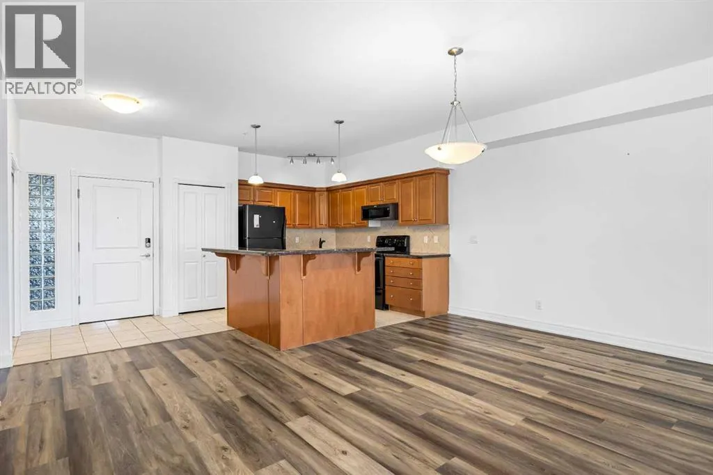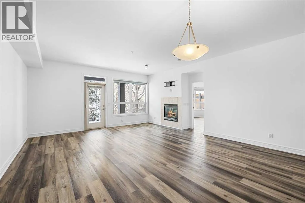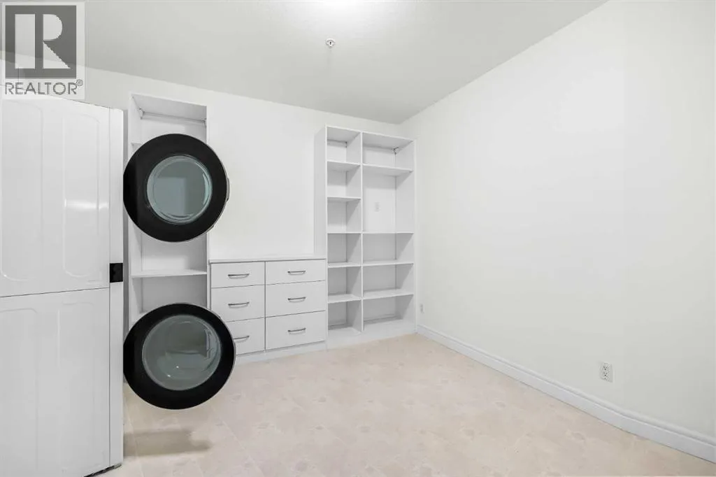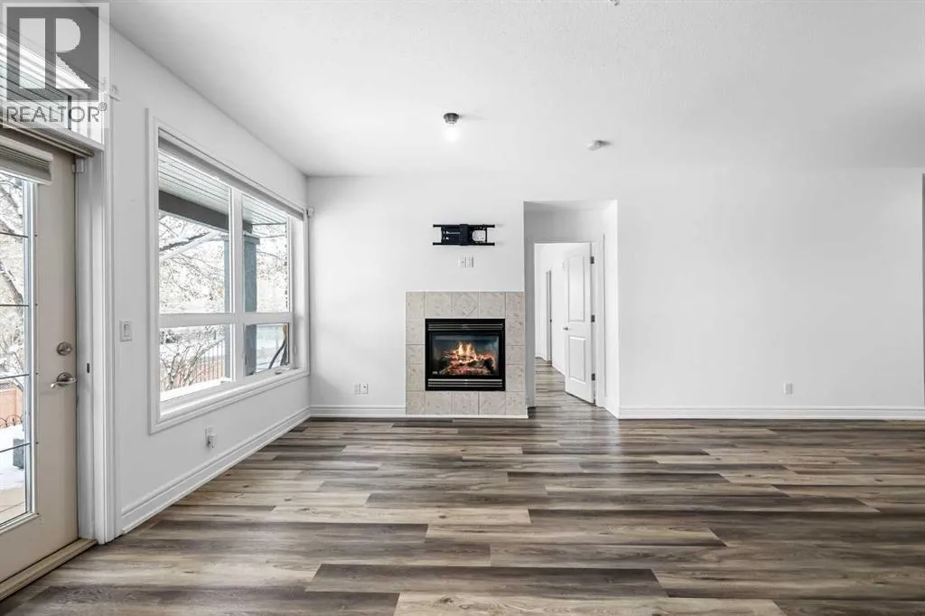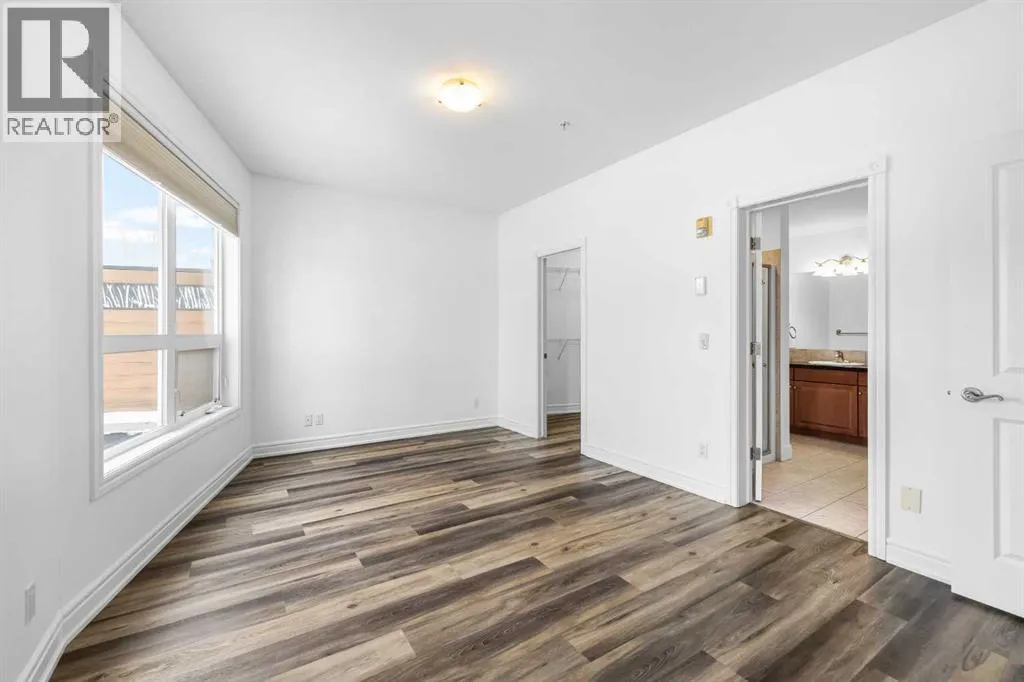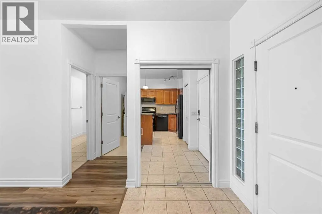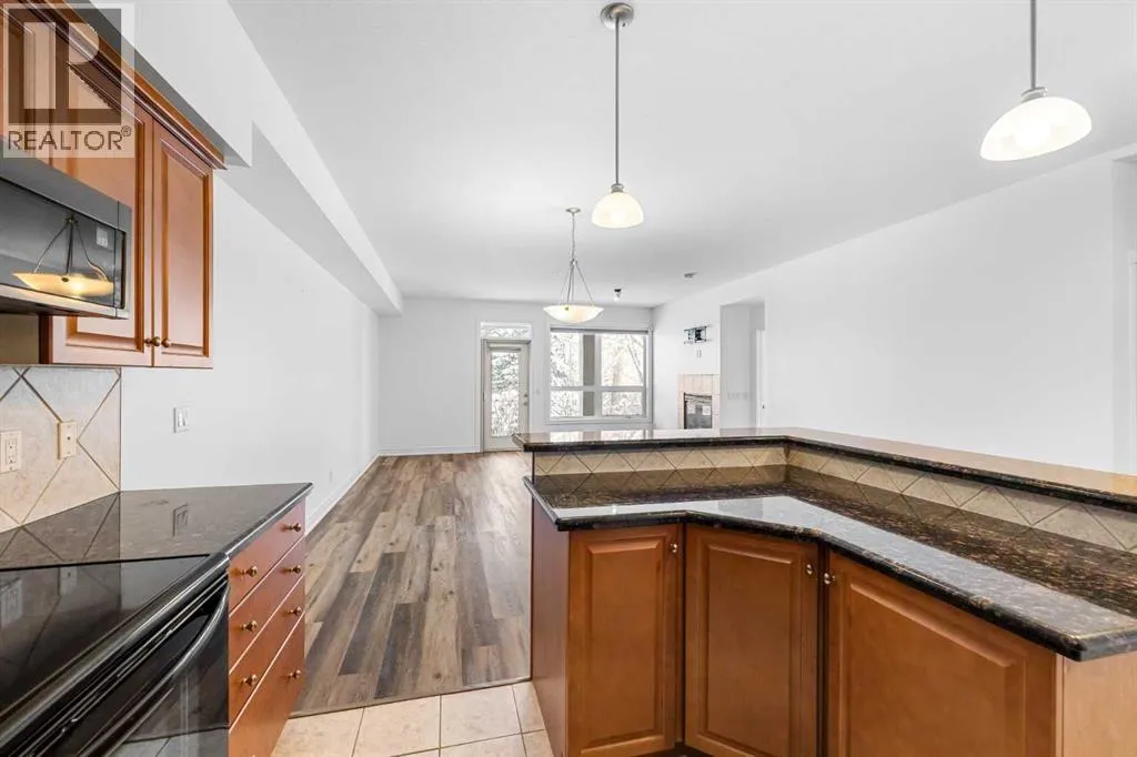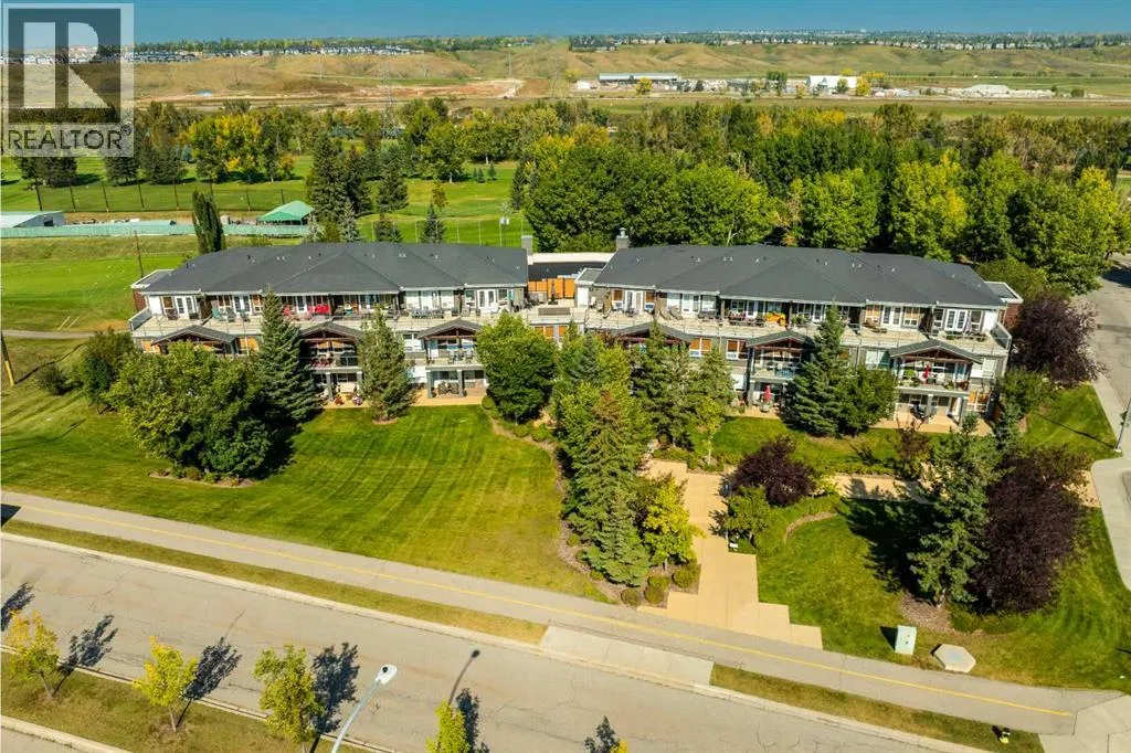 Nestled in a serene, natural setting, this beautifully appointed one-bedroom condo offers the perfect blend of modern convenience and outdoor tranquility. Located in a sought-after NW community, the property backs onto the Valley Ridge Golf Course, providing views right from your private living space. Heated by an in floor heat system you will always be at that perfect ambient temperature. Large windows frame picturesque vistas of the rolling hills and mature trees, this home offers a peaceful retreat where nature is always just a step away. Inside, you'll find an open-concept living and dining area, designed to maximize space and light. The living room features large windows that invite the outdoors in, creating a bright and airy atmosphere. The modern kitchen is equipped with stainless steel appliances, oversized island, sleek countertops, and plenty of storage, making it a perfect space for both entertaining and everyday cooking. This main floor unit walks directly out onto your own private patio that spans across the unit providing tons of personal outdoor living space. The spacious bedroom provides a comfortable haven, with ample closet space and more of those views of the golf course and surrounding greenery. The ensuite is stylishly designed, offering a clean, contemporary feel with all the amenities you'd expect for ultimate relaxation. There is a flex room that has been used as an office with builtins, and shares a space with in-suite laundry making laundry day a breeze without the need to leave the comfort of your home. This unit also comes with two underground heated parking stalls, ensuring you'll never have to worry about parking, no matter the weather, as well as a separate storage locker to keep your seasonal items, sporting equipment, and extra belongings neatly tucked away. The complex is surrounded by nature trails and pathways, perfect for outdoor enthusiasts who enjoy hiking, biking, or simply strolling through the scenic surroundings. The Valley Ridge Golf Course offers a stunning backdrop, with beautifully manicured fairways and a peaceful atmosphere, making this condo an ideal location for those who appreciate a connection to nature without sacrificing the conveniences of urban living. Whether you're relaxing in the comfort of your own home or exploring the outdoors, this condo offers the best of both worldsâprivacy, convenience, and an unparalleled connection to the beauty of nature. Itâs a perfect place for anyone seeking a peaceful and modern living space with easy access to outdoor recreation and stunning views. (id:27476)