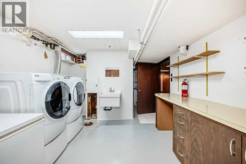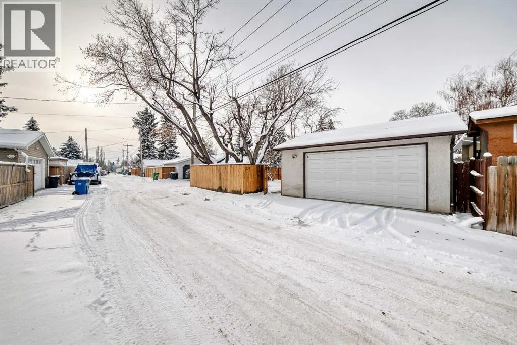 ***Open House Sun Dec 7th 2-4pm**At the quiet heart of the community, this Willow Park bungalow showcases strong bones and exciting opportunities to update to your heartâs content. A tidily landscaped front yard and quality brickwork on the pathway and the home itself have a timeless appeal, and updates over the years have focused on function so you can simply add your personal aesthetic. Inside, a large entryway with a brick feature wall steps into a main floor with cool character elements and tons of natural light. The open concept living and dining room has big west-facing windows and statement exposed beams as well as a gas fireplace in a brick hearth â a few updates and youâll have a gorgeous space with great visual style. In the kitchen, diner windows with an eating bar were added to connect the space to the living area, and an eat-up island with outlets makes multitasking prep and entertaining a breeze. Tons of counterspace and a pantry closet once again give you tons of options to make it your own without any major renovations. At the end of the hall, a spacious primary bedroom includes a two-piece ensuite and walk-in closet. There are two more bedrooms on this floor, along with the main bathroom in a great family layout. The walk-in linen closet is a rare find, and will impress the organizer of the household. A large mudroom provides access to the yard as well as a huge flex area or studio that could easily be used for a workspace, gym, or hobby space; complete with a wash station, a second gas fireplace, and a separate subpanel. French doors lead to the yard, adding convenience and sunlight. Downstairs, the basement is a retro blast from the past. The rec area has vintage built-in speakers, and a unique spa-style bathroom offers a sauna and a jetted tub as well as a separate shower and dual vanity. The non-conforming bedroom here is perfect for guests, and the utility room holds a laundry area with newer machines and a workbench. There is also plentiful st orage on this level. This home includes central air conditioning and all new windows aside from the living room. Outside, the yard is a serene, treed paradise that feels very private and parklike. The patio is huge, so you can lounge, grill, and gather with room to spare. An irrigation system makes yard work easy, and the cedar fence is newer. The double-detached garage off the paved alley is well-set up with built-in shelving, workspace and a heater. The location of this home on the corner means you only have one direct neighbour. This community is known for its proximity to amenities, with nearby Macleod Trail providing shopping and dining options within minutes. In walking distance, Fairmount Place has a selection of shops, services, and restaurants at your doorstep. Schools and parks are also walkable, and the golf course is nearby as well. Set near several primary routes, everything you need is within a short drive, whether youâre commuting downtown, visit friends around the city, or running errands. (id:27476)