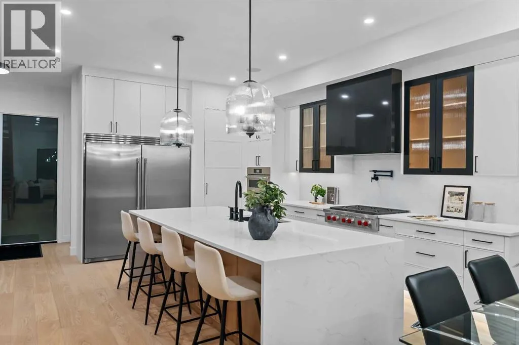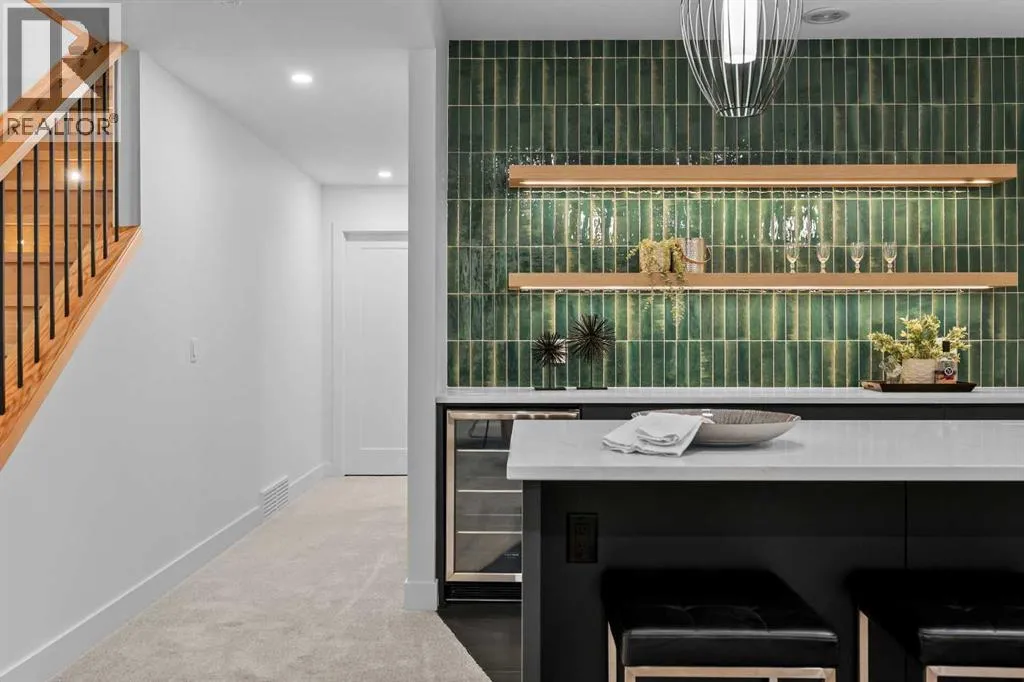 Welcome to a home where CRAFTSMANSHIP, COMFORT, and LUXURY come together in perfect harmony. Thoughtfully built and intentionally designed, this residence stands apart from the typical new infill â offering a level of QUALITY, WARMTH, and SOPHISTICATION rarely seen in todayâs market.From the moment you step inside, youâll feel the DIFFERENCE. The main floor is filled with NATURAL LIGHT, thanks to EXPANSIVE WINDOWS and a CUSTOM OVERSIZED PATIO DOOR that creates true INDOOR/OUTDOOR LIVING. Step directly onto your MASSIVE PATIO â extending across the garage roof â where youâll experience BREATHTAKING VIEWS OF DOWNTOWN and SHAGANAPPI GOLF COURSE. It is a one-of-a-kind outdoor space designed for ENTERTAINING, RELAXING, and taking in the cityscape.The LIVING ROOM is a SHOWPIECE, anchored by a STRIKING BRICK FIREPLACE, CUSTOM MILLWORK, and those same LARGE, OVERSIZED WINDOWS that bring the outdoors into every moment. This space blends ARCHITECTURE and WARMTH seamlessly, offering the perfect setting for gatherings or quiet evenings at home.The gourmet kitchen continues the theme of elevated living with a WOLF GAS RANGE, CUSTOM HOOD-FAN CANOPY, OVERSIZED REFRIGERATOR, WATERFALL ISLAND, DOUBLE OVENS, POT FILLER, and HIGH-END FINISHES selected for both BEAUTY and PERFORMANCE.A PRIVATE HOME OFFICE on the main floor delivers a QUIET, PURPOSEFUL workspace â ideal for MODERN WORK-FROM-HOME living.Upstairs, the primary suite offers a serene RETREAT with HEATED ENSUITE FLOORS, LUXURY TILE WORK, and a spacious WALK-IN CLOSET. With 4 BEDROOMS, 3.5 BATHROOMS, and 9-FOOT DOORS, the home provides SPACE, COMFORT, and FUNCTIONALITY on every level.The WALKOUT LOWER LEVEL opens to a COVERED PATIO, extending your living space year-round. Everywhere you turn, youâll find OVERSIZED WINDOWS that frame natural light and views throughout the home â a signature element of this build.Additional highlights include AIR CONDITIONING, DOUBLE PATIOS, a WALKOUT BASEMENT, and an OVERSIZED HEA TED GARAGE WITH EPOXY FLOORING.Located in SHAGANAPPI, youâre just 5 MINUTES FROM DOWNTOWN, steps from the GOLF COURSE (literally a stoneâs throw from the GREEN), and enjoy FAST ACCESS TO THE MOUNTAINS. Itâs INNER-CITY LIVING with unbeatable convenience.This is more than a new home â it is a statement in DESIGN, QUALITY, CRAFTSMANSHIP, and THOUGHTFUL LIVING. To appreciate its TRUE VALUE, it must be experienced in person. (id:27476)