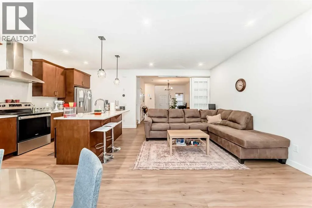 Welcome to a beautifully designed home offering comfort, functionality, and modern style in one of the areaâs most desirable new communities. The layout quickly opens into an impressive open-to-below concept, allowing natural light to fill the main floor and giving the home a bright, welcoming feel from the moment you step inside. Just beside the entry, youâll find a well-sized main-floor bedroom featuring a large window and full closet, ideal for guests, seniors, or anyone preferring the convenience of ground-level living. A full bathroom with a standing shower is located directly across, making this section of the home highly functional for multi-generational families. A modern slider divider wall provides a stylish separation between the living/family area and the dining space. This thoughtful touch allows flexibility in how you use each room while maintaining an open-concept feel. The kitchen sits at the heart of the main floor, offering excellent workspace, ample cabinetry, and a generous pantry. As you move to the upper level, youâre welcomed by a bright and versatile bonus room, perfect for a secondary living area, playroom, or home office. The primary bedroom is a private retreat featuring a spacious layout, a large walk-in closet, and a full bath with a standing shower. This upper floor also includes a well-designed laundry room with a window and shelving, making household tasks more convenient. A common bathroom with a tub and two additional bedroomsâeach with comfortable layouts and natural light that complete the upper level. An added benefit a gas line already installed, offering flexibility for future upgrades or cooking preferences. The separate-entry basement provides significant future potential. Already partially finished by the seller, it includes framing for two bedrooms, a partially set-up kitchen, a roughed-in bathroom, plus a planned den and family room. This lower level is ideal for future development as a rental income, extended family space , or additional living area, allowing the new owners to customize it according to their needs. The front attached garage and driveway allow for 4 vehicles to be parked at all times. On top of everything you will have a peace of mind for having Alberta New Home Warranty for this property. This is a highly desirable community that has amenities such as 15 min drive to the YYC International Airport, 15 min drive to Cross Iron Mills shopping Centre with a potential future LRT station & access from Deerfoot and Stoney Trail. Overall, 10 Homestead Pass delivers a rare blend of thoughtful design, practical layout, and room for future growth. With its main-floor bedroom, spacious kitchen, bonus room, upstairs laundry, and flexible basement setup, this home is ready to accommodate families of all sizes. Call your favorite realtor to book the showing as this beautiful house won't last longer! (id:27476)