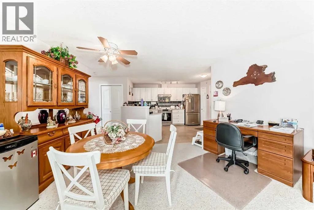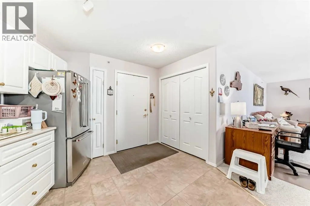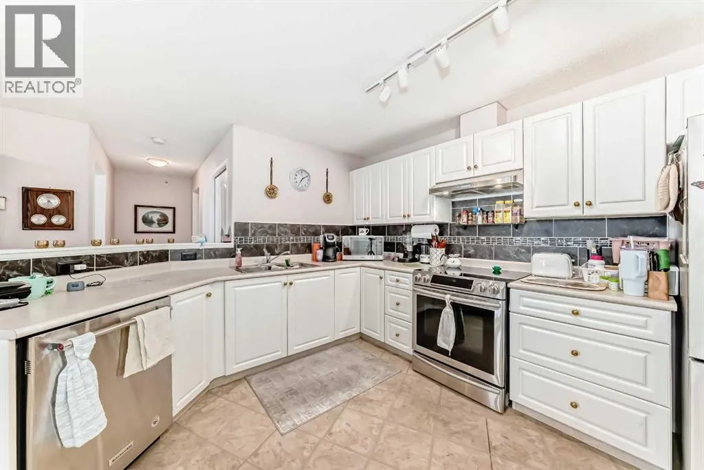 Welcome to Suite 410 at 5000 Somervale Court SW ( A 55+ adult age restricted complex... NO pets ) â the largest one-bedroom floor plan in the entire building! This sought-after Kendall model offers a generous 822 sq. ft. of comfortable, thoughtfully designed living space, making it ideal for anyone seeking extra room without compromising convenience. Step inside and immediately notice the expansive kitchenâone of the biggest youâll find in a one-bedroom condo. With upgraded stainless steel appliances, excellent counter space, and abundant cabinetry, this kitchen truly stands out. The spacious primary bedroom easily accommodates large dressers and a queen-size bedâand even a king, if you prefer. Just off the hallway, youâll also appreciate the full laundry room with great storage space, offering far more functionality than the typical condo closet. The bathroom has been smartly upgraded with bathtub modified into a walk in shower, making it far easier and safer to step in and out. Enjoy one of the larger balconies in the complex, offering a pleasant southwest exposureâperfect for bright, sunny mornings and relaxing outdoor time. The suite is conveniently located just around the corner from the elevators, making daily living even more effortless. This well-managed 55+ adult living community is known for its vibrant social scene and extensive on-site amenities, including a recreation room, fitness area, media room, library, crafts room, and even an in-house hair salon offering manicures and pedicures. Everything you need is right at your doorstep. Your condo fees include heat (gas) and electricity, adding tremendous value and predictable monthly costs. The location is unbeatableâa few blocks from Walmart, Calgary Co-op, numerous restaurants, and only one block south of the Somerset LRT station, giving you easy access to the entire city. Beautiful size, excellent floor plan, incredible amenities, and a truly lovely unitâavailable now. (id:27476)