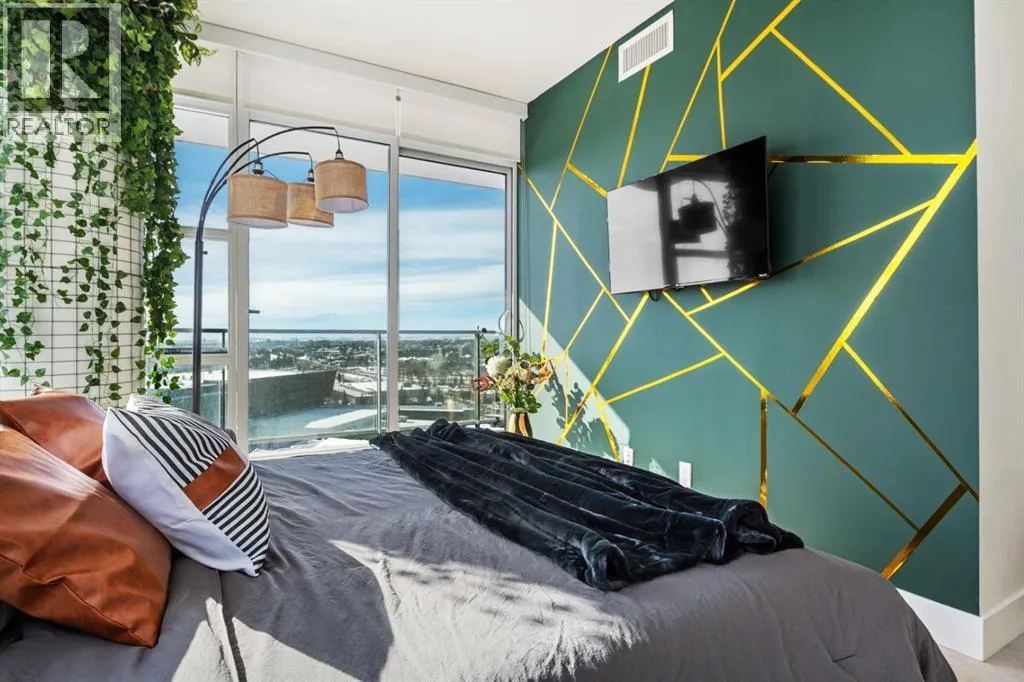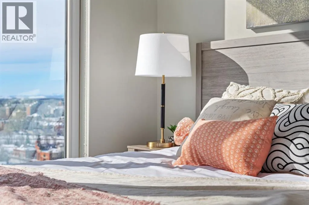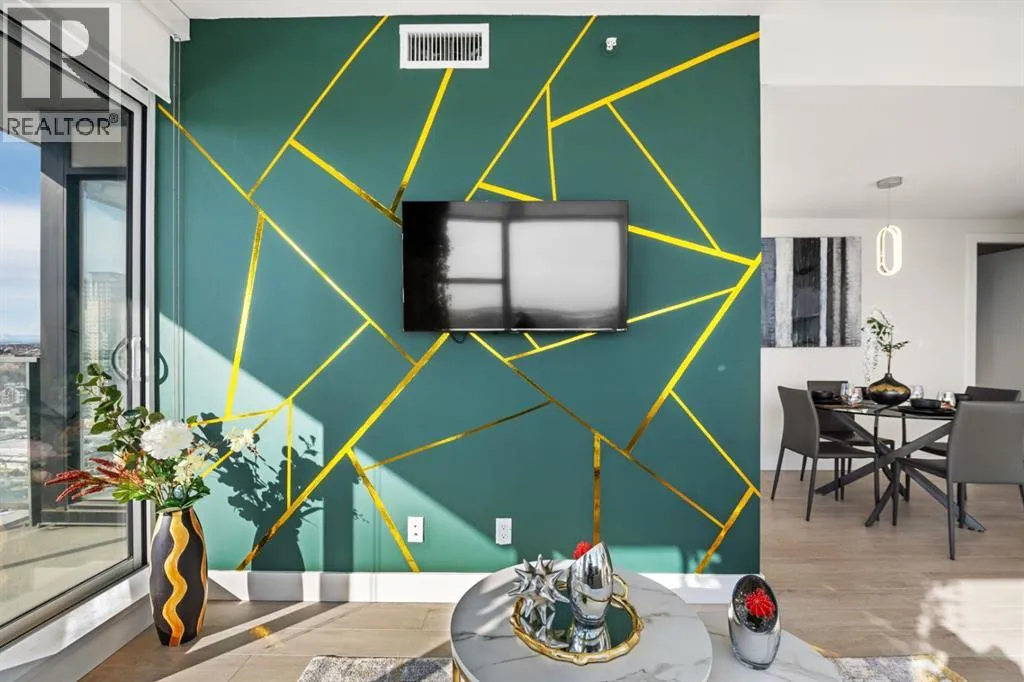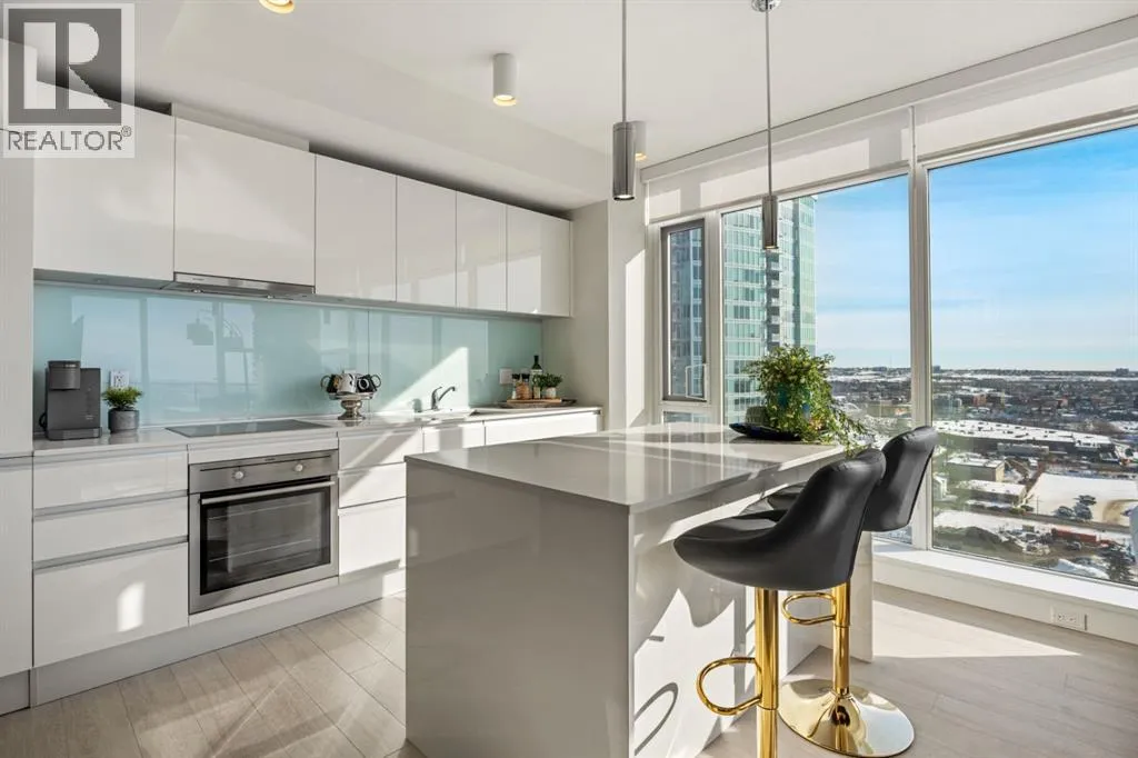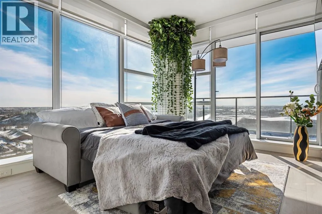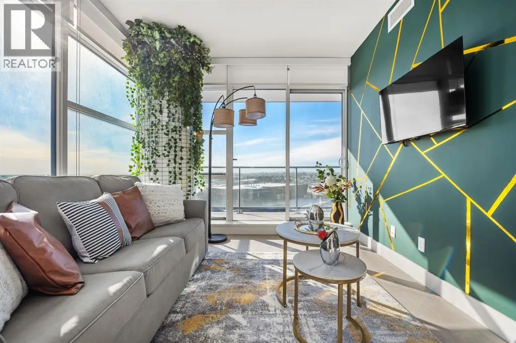 Premium Corner Unit with Unmatched Views in The Guardian South Tower.Step into elevated urban luxury with this exceptional, fully furnished corner residence on the 20th floor of The Guardian â Calgaryâs tallest residential tower. Perfectly positioned in the most desirable stack of the building, this rare opportunity offers unobstructed panoramic views of the mountains, Bow River, downtown skyline, and Calgaryâs emerging entertainment district, including the upcoming events centre and new stadium.From sunrise to sundown, the floor-to-ceiling glass walls flood the space with natural light and provide a cinematic backdrop to every room â a feature only available in premium-tier corner units.Inside, the home boasts:â¢Two well-separated bedrooms for privacy and functionalityâ¢A sleek, modern kitchen with high-gloss cabinetry, integrated appliances, and quartz countertopsâ¢An open-concept layout ideal for entertaining or executive livingâ¢A spacious primary suite with walk-in closet and spa-inspired ensuiteâ¢Airy ceilings and high-end finishes that reflect The Guardianâs signature contemporary designProfessionally staged, this suite shows like new â and includes the option to be sold fully furnished, offering an effortless move-in or turnkey investment for corporate stays or luxury short-term rentals.Located in East Village, steps from transit, cafes, the Saddledome, Stampede Park, and the future event hub, this is one of the best-positioned investments in Calgaryâs core.?? Includes titled parking and exclusive building amenities such as concierge, gym, social lounge, and workshop. (id:27476)