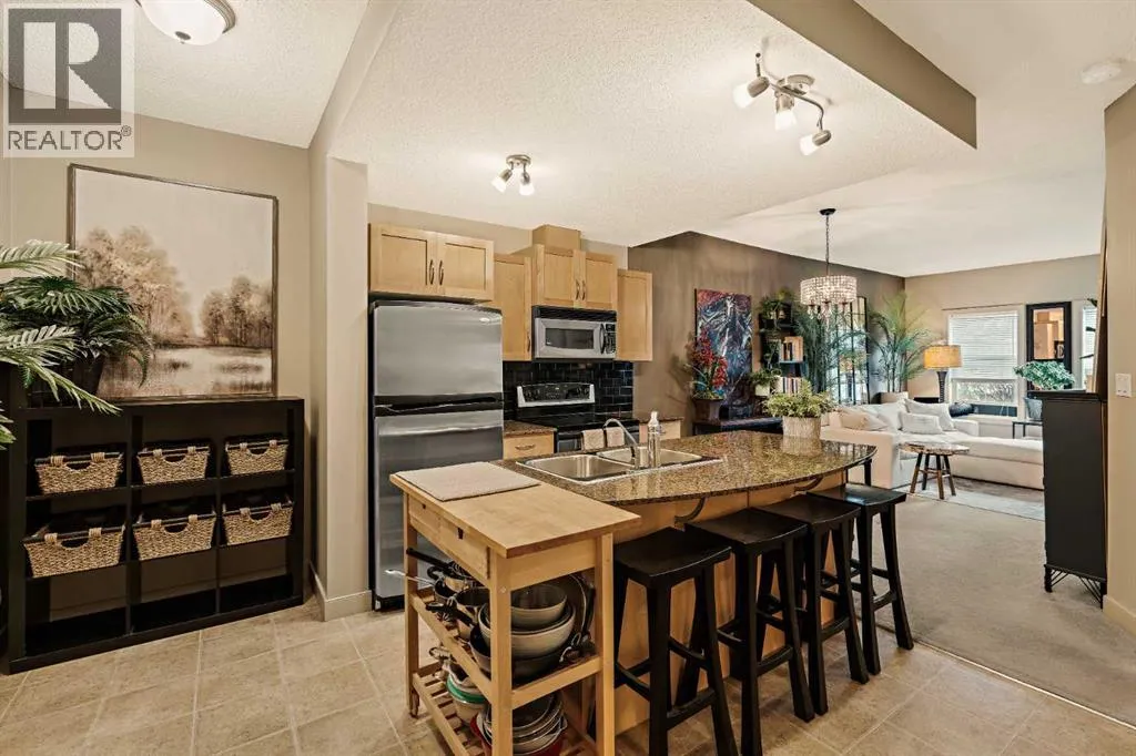 LOCATION, LOCATION, LOCATION! Perfectly positioned in a highly walkable and centrally located community, this pet-friendly concrete building offers exceptional lifestyle amenities including a fully equipped gym, yoga studio, and heated underground visitor parking. Just steps from Mount Royal University, this beautifully maintained 1-bedroom, 1-bathroom residence with an open-concept is ideal for students, professionals, or those seeking effortless urban living. Situated on the main floor, the unit features a RARE PRIVATE EXTERIOR ENTRANCE with direct street accessâan ideal combination of condo convenience and "walk up" townhouse-style living. Ample street parking is available right outside your door, adding another layer of everyday ease. As a concrete structure, the building provides superior noise reduction and long-term durability compared to wood-frame developments. Inside the larger 606sf floorplan, the stylish kitchen showcases granite countertops, a generous eat-up island, stainless steel appliances, and a classic subway tile backsplash. The spacious primary bedroom comfortably fits a king-sized suite and is complemented by a large closet. The versatile den area off the kitchen is perfect for a home office, creative space, or additional storage. Residents enjoy an impressive range of shared amenities including a party room, two guest suites, a library/book exchange, two landscaped courtyards, bike storage, and abundant underground visitor parking. Low condo fees include electricity, heat, and waterâadding tremendous value. Additional perks include in-suite laundry, a titled underground parking stall, and a dedicated storage locker at foot of the stall. With quick access to Glenmore, Crowchild, and Stoney Trail, commuting around the city is seamless. Chinook Centre and Westhills are just minutes away, placing shopping and entertainment within easy reach. MOVE IN TODAY! This is the perfect place to call home. (id:27476)