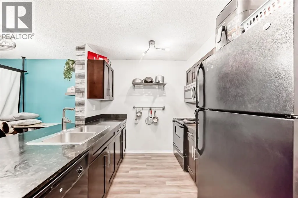 Incredible opportunity for first-time buyers, investors, or those looking to downsize. This charming 1-bedroom, 1 bathroom unit featuring an open concept layout and low condo fees. Upon entering the clean and spacious home, you are greeted by a large double closet, a primary bedroom and a bathroom. A large double closet provides all the space you need for your wardrobe and occasional items while further maximizing the livable area. The kitchen features rich espresso cabinets, granite counters, a breakfast bar and a functional layout that flows seamlessly into the living and dining area perfect for everyday living or casual entertaining. Large windows fill the space with natural light. Youâll also appreciate the convenience of an in-suite laundry and smart use of space throughout. The home also includes a titled underground parking. Enjoy not having to shovel or plug in your vehicle with the underground parking. Taradale is known for its family friendly atmosphere, diversity, convenience, and growing amenities, making it a highly desirable place to call home. Situated close to shopping areas, schools, transit and walking paths, this condo blends lifestyle and location. Call your favourite realtor and book your showing. (id:27476)