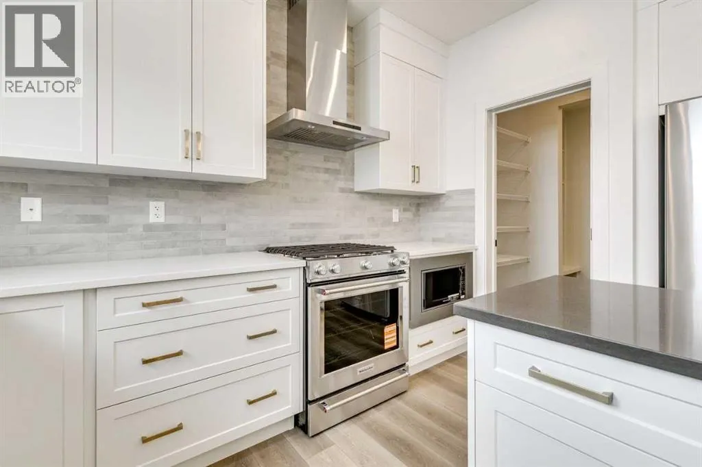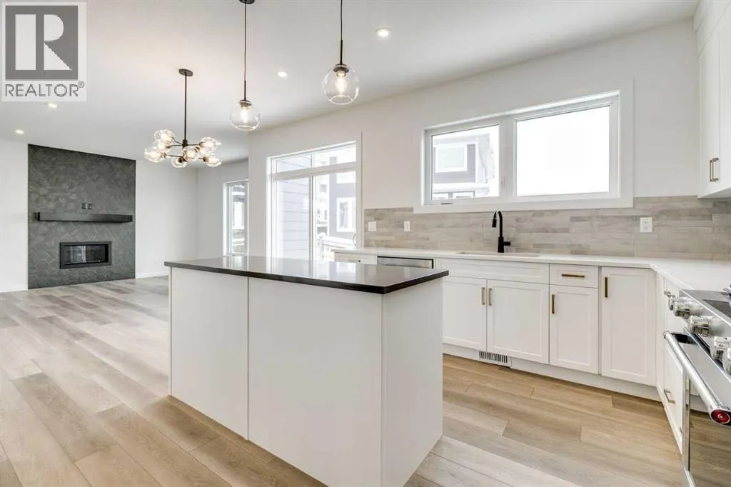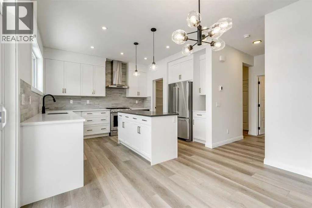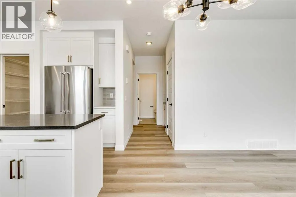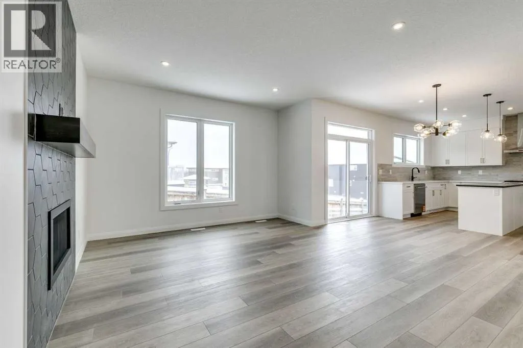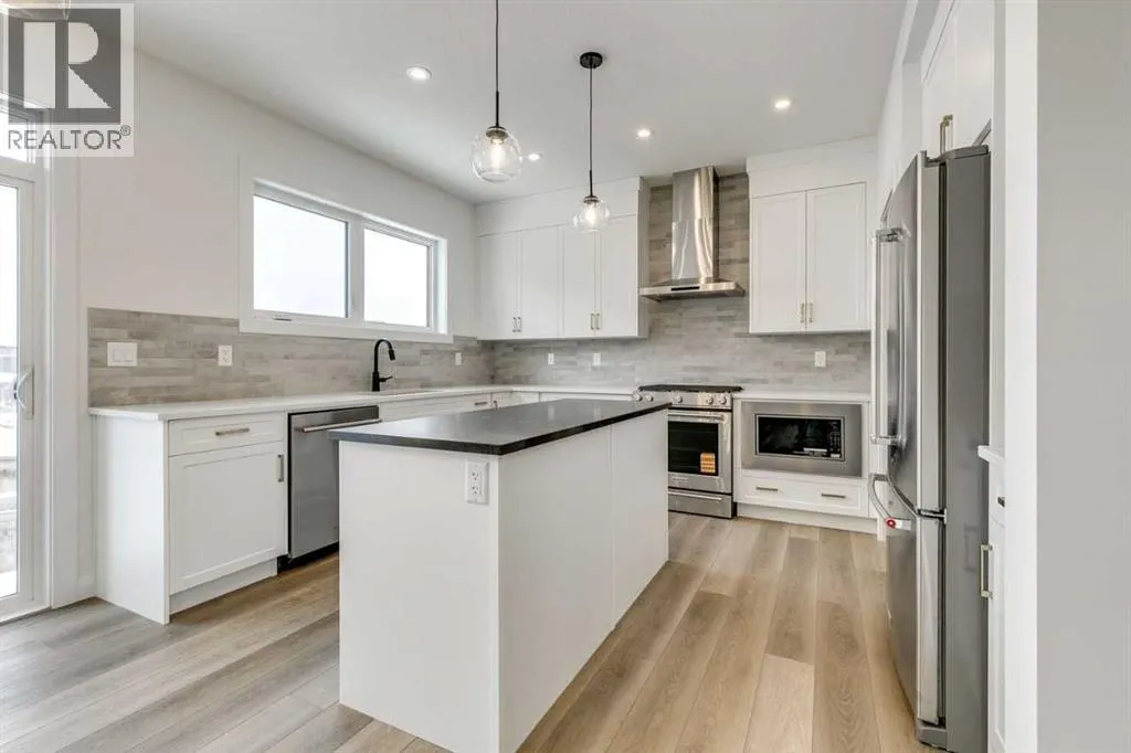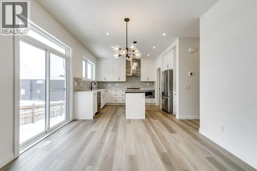 Welcome to the Custom Merritt 2 by Broadview Homes in the desirable community of Hudson Pine Creek â a stunning 2,315 sqft residence walkable to the environmental reserve and designed for modern living. This open-concept layout offers 4 spacious bedrooms, 2.5 baths, a main floor flex room, and a vaulted bonus room perfect for relaxing or entertaining. The chefâs kitchen features stainless steel appliances including a hood fan and built-in microwave, 42â upper cabinets with soffit and crown molding to the ceiling, and sleek granite or quartz countertops. The primary retreat boasts elegant tray ceilings and a luxurious 5-piece ensuite. With 9â basement ceilings, a sunshine basement, and an oversized double garage, this home blends luxury, comfort, and long-term potential. (id:27476)