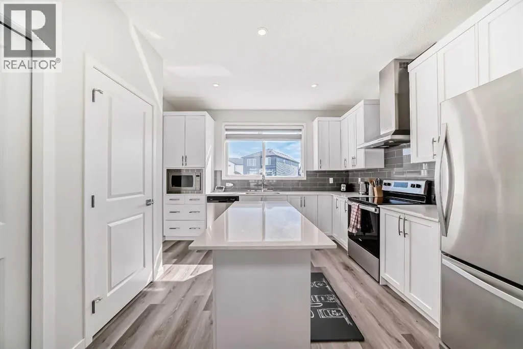 Modern Duplex with Legal Secondary Suite | Move-In Ready | Prime South Calgary Location. Discover this beautifully designed 2023 half-duplex that blends contemporary style, income potential, and thoughtful upgrades throughout. Situated in one of South Calgaryâs most sought-after new communities, this home is an ideal fit for first-time buyers, investors, multi-generational families, or anyone looking to offset their mortgage with rental income. Step into the main residence and enjoy modern living at its best. The open-concept layout features 9-foot ceilings, large windows, and light, neutral finishes that create a bright and welcoming space. The central kitchen is a chefâs delight with quartz countertops, stainless steel appliancesâincluding a built-in microwaveâand a spacious island perfect for everyday cooking or hosting guests.Upstairs, the primary bedroom includes a walk-in closet and private 4-piece ensuite. Two additional bedrooms, a full bathroom, and upper-level laundry (complete with washer and dryer) provide comfort and convenience for the whole family.The legal secondary suite offers its own private side entrance. âideal for tenants or extended family. This well-appointed suite includes, large windows, a gas range, in-suite laundry, and a cozy living area. Bright, functional, and comfortable, itâs designed to be a wonderful independent living space. Enjoy a fully landscaped yard, and an east-facing backyard perfect for morning coffee or relaxing outdoors. This home truly checks all the boxesâmodern finishes, income-generating potential, and move-in-ready condition. (id:27476)