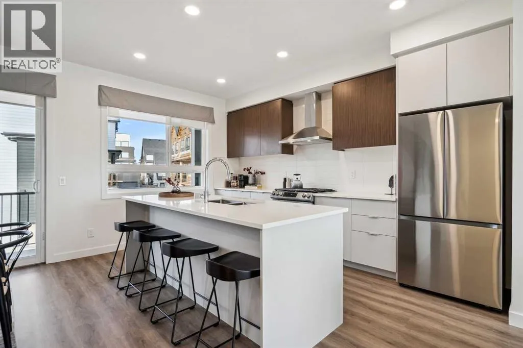1,450 SQ.FT. | 4-BED or (3 + DEN) | 2.5 BATH | DOUBLE ATTACHED GARAGE | NEW HOME WARRANTY | LOW CONDO FEES | This brand-new townhome by Anthem Properties delivers exceptional value in Currie - one of Calgaryâs most dynamic inner-city communities. This 4-bedroom (or 3 + large den) home features quartz countertops, durable LVP flooring, 9' ceilings, and an oversized kitchen made for both cooking and gathering. Enjoy the large front patio and private upper balcony - perfect for morning coffee or evening downtime. Additional features include a double attached garage, AC rough-in, window coverings, a full appliance package with gas range and chimney hood fan, and upper-level washer and dryer. Large, operable windows flood the home with natural light and fresh air. With room to live, work, and grow, this home offers modern comfort in a walkable community filled with parks, playgrounds, top-rated schools, heritage character, and local restaurants - just 8 minutes from downtown. Book your showing today! (Note: photos are of previous showhome with similar layout and may not reflect the exact finishes of the unit for sale.) (id:27476)