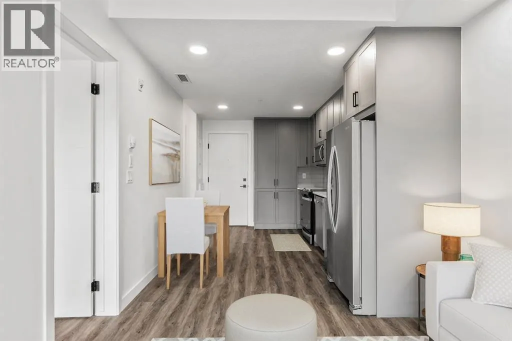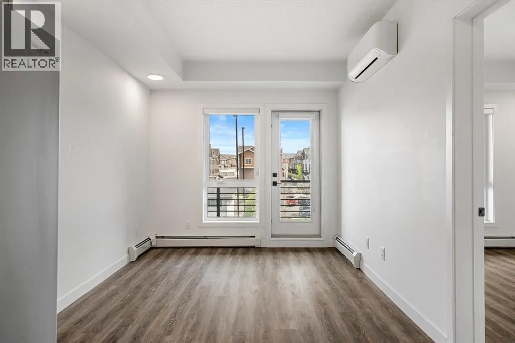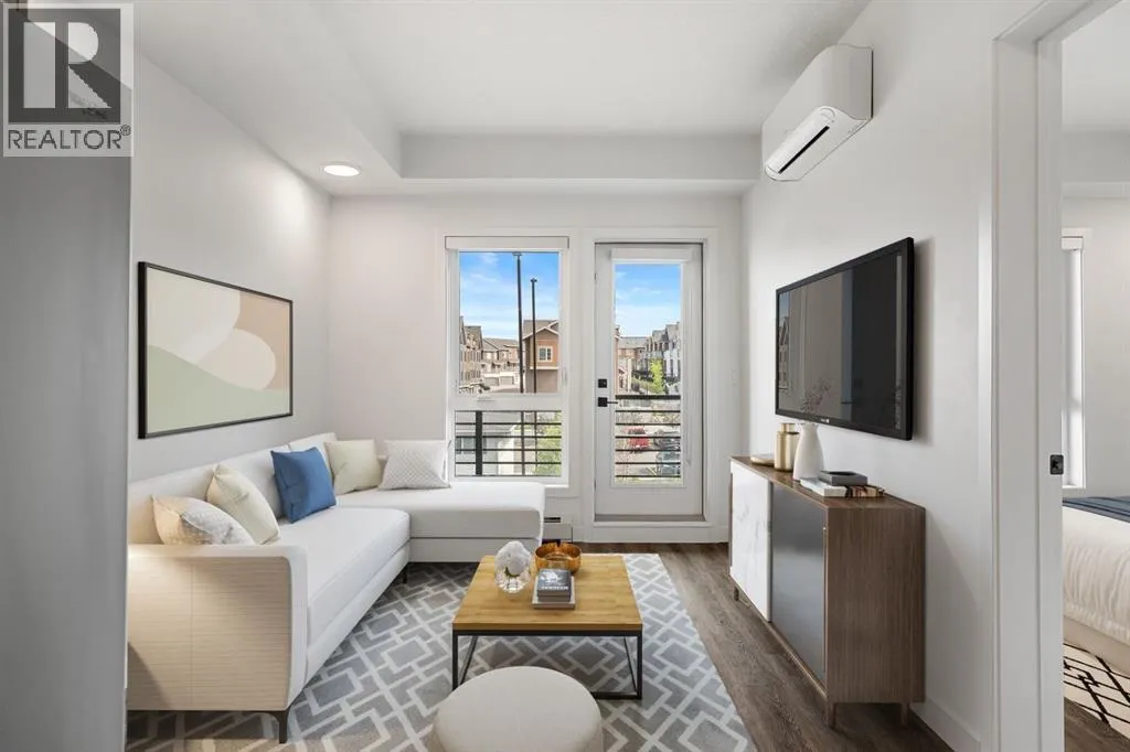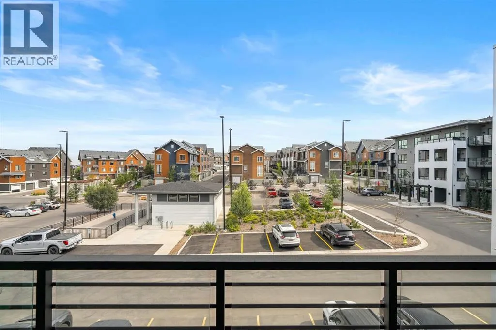 Discover a beautifully appointed third-floor condo located in the desirable community of Livingston. Perfectly suited for first-time buyers, savvy investors, or those looking to downsize, this home offers modern finishes, smart design, and incredible convenience â all at an affordable price point.Step inside to discover an open-concept layout that maximizes space and natural light. The kitchen is thoughtfully designed with quartz countertops, sleek full-height cabinetry with soft-close doors, and stainless steel Whirlpool appliances, making it both functional and stylish. The living and dining area flows seamlessly onto a generous west-facing balcony, that includes a built-in gas line for BBQs â an inviting space for entertaining or simply enjoying sunsets.The spacious primary bedroom features a walk-in closet and easy access to a modern 4-piece bathroom. Additional comforts include in-suite laundry and central air conditioning, keeping you cool and comfortable throughout the year.The unit also comes with a titled underground heated parking stall and an assigned storage locker, offering peace of mind and extra convenience. The building itself is well-maintained, featuring elevator access, a welcoming lobby with modern décor, and secure common areas. This pet-friendly building is ideal for animal lovers, featuring its very own dog run â a rare and welcome amenity that adds to the lifestyle appeal.Livingston doesnât just offer a home â it delivers a lifestyle. Anchoring the community is the Livingston Hub, a 35,000 sq. ft. facility under the homeownersâ association, where neighbours gather for year-round engagement. Inside, enjoy banquet and meeting/multi-use rooms, a commercial kitchen, gymnasium, café space, meeting rooms and childcare/day care space. Outdoors, the Hubâs park includes skating rinks (both leisure and hockey), tennis courts, enhanced playgrounds, splash parks, an amphitheatre, ping pong tables, gathering spaces, and fire pits with BBQs for sum mer enjoyment. Programming and events are hosted throughout the year, from festivals and family movie-nights to fitness and wellness classes all within walking distance. Located just minutes from Stoney Trail, this home offers easy access to downtown, the airport, and nearby shopping centres. The growing Livingston community is one of Calgaryâs most exciting new developments, offering parks, pathways, playgrounds, and the upcoming Green Line LRT expansion.Whether you're looking to get into the market, add to your investment portfolio, or simplify your lifestyle, this move-in-ready unit checks all the boxes. Affordable condo fees and strong rental appeal make it a smart choice for any buyer.Donât miss out â book your private viewing today and see the value this exceptional property has to offer! (id:27476)