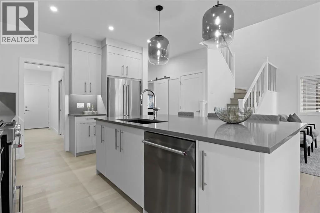 Welcome to this TRUMAN-built home in Westland Estates! . Thoughtfully designed with premium finishes and exceptional attention to detail, this home offers a perfect blend of style, function, and lasting quality. The open-concept main floor features a chefâs kitchen with full-height cabinetry, soft-close doors and drawers, quartz countertops, a premium appliance package, and a walk-in pantry with custom built-ins. The kitchen flows into the bright great room, where soaring two-story ceilings create an airy atmosphere and a sleek quartz-faced fireplace serves as a beautiful focal pointâperfect for both quiet evenings and entertaining guests. Additional main floor highlights include 9â ceilings, hardwood flooring throughout, a versatile den, and a stylish 2-piece powder room, thoughtfully designed for everyday living.Upstairs, the primary bedroom offers a tray ceiling, spa-inspired 5-piece ensuite, and a spacious walk-in closet. A central bonus room, two additional bedrooms, a 4-piece bath, and upper-level laundry complete the second floor. The lower level is undeveloped with a separate side entrance, giving you the flexibility to create a recreation space, home gym, or media room Built by TRUMAN, this home exemplifies signature craftsmanship and contemporary design, offering a rare opportunity to enjoy the charm and convenience of West Springs while experiencing the distinctive character of Westland Estates. Discover what it means to truly Live Better. (id:27476)