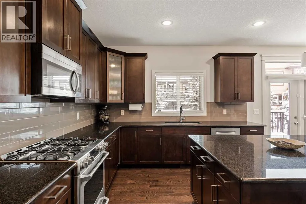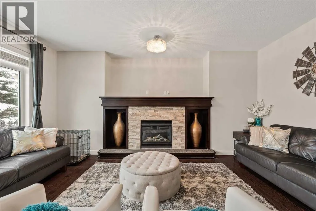 Proudly presenting 6 Crestridge Mews wonderfully situated on a quiet 7,400 SF cul-de-sac lot in the sought-after S.W. neighbourhood of Crestmont. This estate family residence offers nearly 3,900 SF of developed living space, incl. 4 bedrooms, 4 bathrooms, air conditioning & a TRIPLE GARAGEâcombining thoughtful design, quality upgrades & everyday comfort. The spacious foyer provides an impressive introduction to the inviting main floor. Hardwood flooring adds warmth while large windows fill the home w/ natural light. The stylish & functional kitchen showcases rich cabinetry, granite countertops, stainless steel appliances (incl. gas cooktop), a generous island w/ storage & an enviably large pantry w/ mini fridge. The spacious dining area & living roomâs beautiful fireplace w/ a maple mantle & ledgestone surround further elevate this inviting space. Completing the main floor is a lovely front flex room (ideal as a home office or music room), a convenient powder room & an oversized mudroom boasting an abundance of custom built-ins. A distinguished maple & iron railing leads to the bright second level. The exceptional primary suite overlooks the peaceful backyard & features a considerable walk-in closet w/ extensive built-ins & a large ensuite offering a double-sink vanity, deep soaker tub, & separate shower. The 2 secondary bedrooms deliver generous space with walk-in closets. The spacious bonus room is a relaxed & comfortable area perfect for family games & movie nights. A 4-pc. family bath & well-appointed laundry room w/ sink, folding counter & additional storage round off the upper floor. The lower levelâs open-concept design provides flexible space for a family room, home gym, games area, or a teenage hangout. A 4th bedroom w/ a walk-in closet & 4th bathroom complete the 1,200 SF of developed lower-level space. The homeâs charming front porch, composite board cladding & stone accents add to its elegant curb appeal while the back deck & yard provide a tranquil sanc tuary for family barbecues, watching the kids at play, or simply unwinding. Notable highlights & upgrades include: 1) new microwave (2025), 2) new refrigerator (2024), 3) new hot water heater (2024), 4) irrigation system, 5) Kinetico water softener & filtration system, 6) two furnaces, 7) gas line into the garage & 8) ambient soffit LED âgemâ lighting! Crestmont is a unique, upscale, family community located approximately 20 minutes from downtown. Known for its gorgeous views, peaceful surroundings, natural landscapes & excellent proximity to the mountains, this neighbourhood offers numerous walking & biking paths along w/ several parks & playgrounds. The Crestmont Hall Homeownerâs Association features a spray park, playground, firepit, skating, daycare & a variety of community programs. Close to shopping, transit, the U of C, & the Foothills & Childrenâs Hospitals, this special residence truly offers it allâan outstanding home, an excellent location & a connection to family and community. (id:27476)