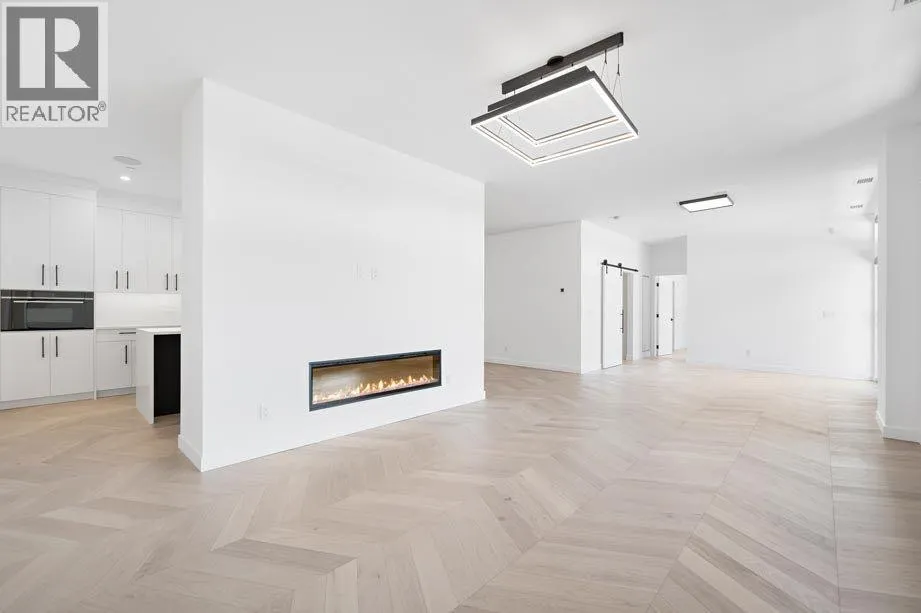 Welcome to a refined living experience at Parkside, a premium concrete-built residence by TRUMAN located in Calgaryâs thriving West District. This stunning 1 Bedroom + Den, 2-Bathroom luxury condo is designed for those who appreciate timeless elegance, exceptional craftsmanship, and modern functionality. From the moment you step inside, youâll notice the attention to detailâcustom millwork, Chevron-pattern hardwood flooring, and a designer lighting package create an atmosphere of sophisticated comfort. Expansive floor-to-ceiling windows fill the living space with natural light and offer peaceful views of the surrounding community. The open-concept living room features a fireplace that adds both warmth and styleâperfect for entertaining or relaxing evenings at home. The adjacent den provides a versatile space ideal for a home office, guest room, or creative retreat. At the heart of the home lies the chef-inspired kitchen, where design meets performance. Full-height custom cabinetry, a gas cooktop, and a panelled fridge create a seamless and functional workspace. A striking double waterfall quartz island with an integrated range hood anchors the space, while under-cabinet lighting and premium finishes add to the elevated aesthetic. The spacious primary suite serves as a serene escape, complete with a spa-like 5-piece ensuite featuring a freestanding soaker tub, dual vanities, a tiled shower, and upscale fixtures. The main 4-piece bathroom is equally well-appointed, offering comfort and convenience for guests or day-to-day use. Residents at Parkside enjoy access to a collection of exclusive amenities that foster both community and privacy. Unwind or host on the rooftop event patio, gather in the ownerâs lounge with entertainment kitchen, or stay active in the fully equipped on-site fitness centreâall with sweeping views of West Districtâs Central Park. Set in one of Calgaryâs most vibrant new communities, this boutique-style condo offers the perfect blend of luxur y, lifestyle, and location. Whether you're downsizing or seeking a sophisticated home base, this residence is more than just a place to liveâitâs a reflection of your lifestyle. (id:27476)