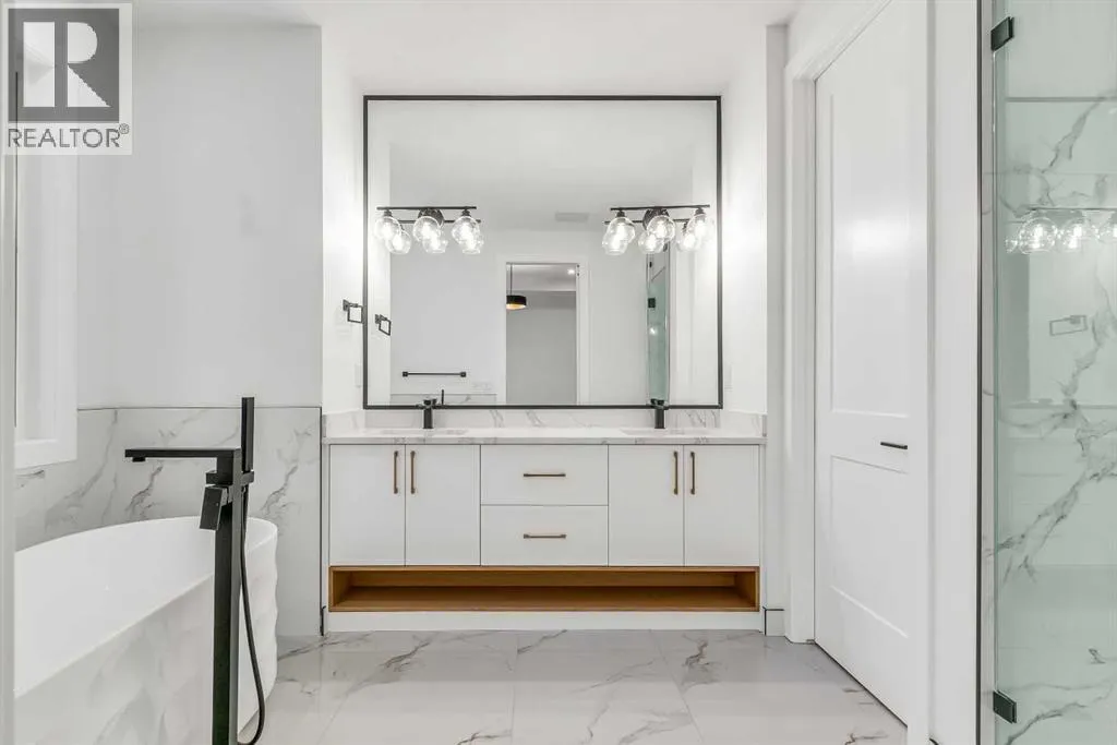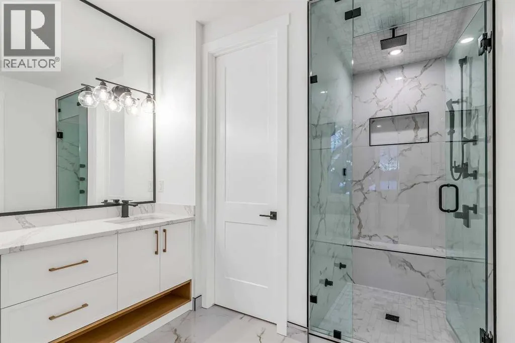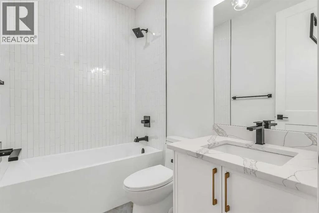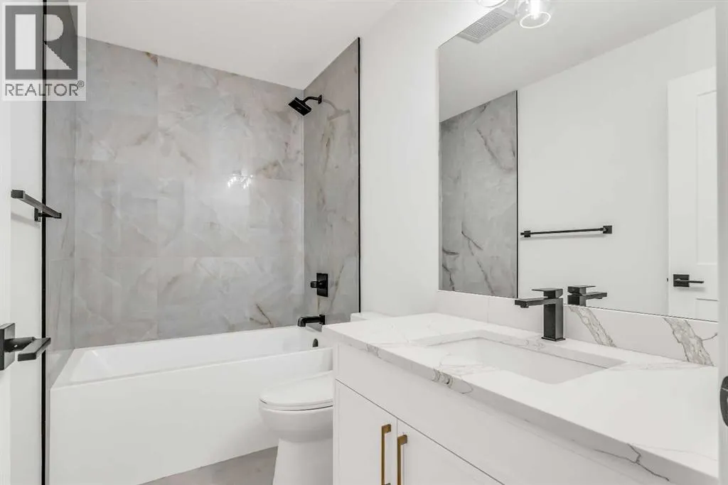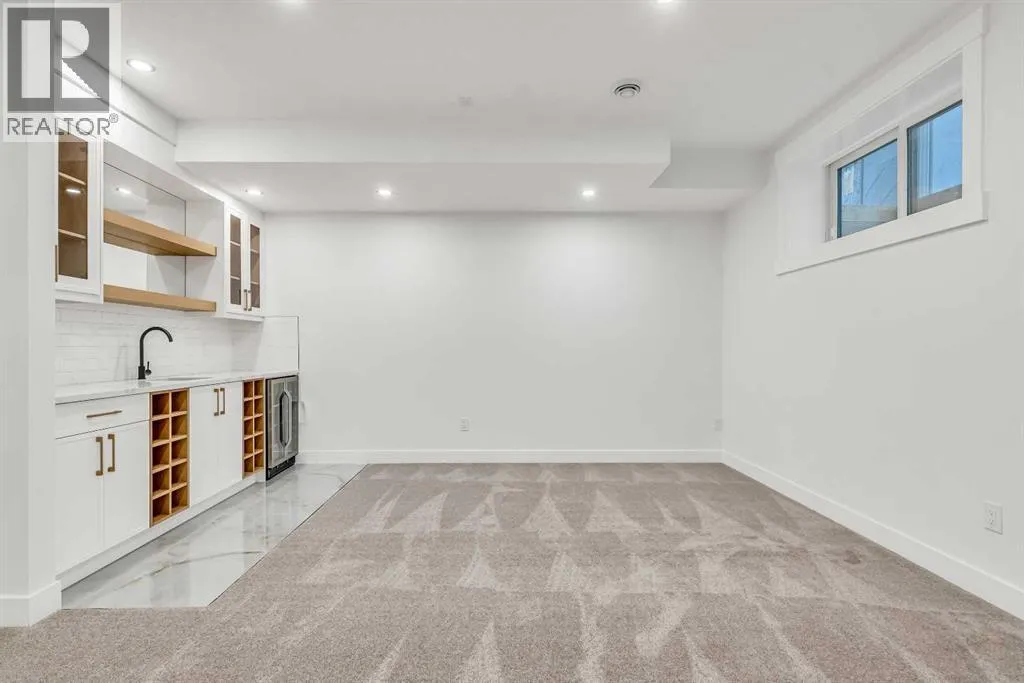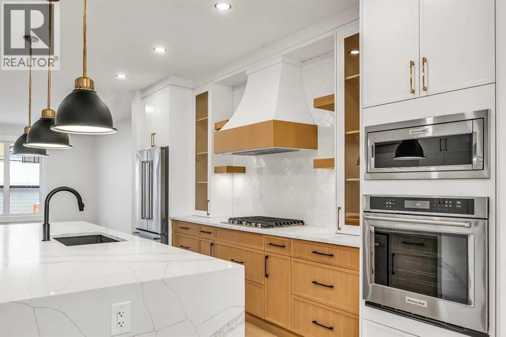Set on a QUIET TREE-CANOPIED STREET IN MOUNT PLEASANT, this newly built home brings together refined craftsmanship and a layout designed for everyday comfort. A SOUTH-FACING FRONT PATIO introduces the property with warm light and a welcoming place to enjoy peaceful moments outdoors. Inside, CUSTOM MILLWORK in the front foyer sets an elevated tone and leads into an elegant dining room anchored by a WOOD FEATURE WALL that adds depth and character. A beautifully appointed GOURMET KITCHEN encourages both creativity and connection with high-end KITCHENAID APPLIANCES including a GAS COOKTOP and BUILT-IN WALL OVEN and MICROWAVE. STONE COUNTERS, UNDER-CABINET LIGHTING, an OVERSIZED CRUSHED GRANITE SINK, a GARBAGE PULLOUT, and an organized storage layout ensure the space functions effortlessly. A WATERFALL-EDGE ISLAND becomes the gathering point of the home with its clean lines and generous prep space. Adjacent to the kitchen, a walk-through area includes a WALL PANTRY with APPLIANCE COUNTER while an ENCLOSED ROOM offers versatility as a SECOND PANTRY or MAIN FLOOR OFFICE for structured workdays. An inviting living area sits at the back of the home, blending CUSTOM BUILT-IN SHELVING with a GAS FIREPLACE that overlooks the backyard for a relaxing evening atmosphere. A practical mudroom with ABUNDANT STORAGE sits near a tucked-away powder room styled with a WATERFALL-EDGE VANITY. A GLASS-RAILED staircase with HARDWOOD TREADS leads upstairs to a level finished entirely in HARDWOOD FLOORING. A central BONUS ROOM with a WOOD FEATURE WALL creates thoughtful separation between the primary and secondary bedrooms. The primary retreat feels serene with a COFFERED CEILING, LARGE WALK-IN CLOSET, and a finely crafted ENSUITE featuring a STEAM SHOWER, FREE-STANDING TUB, DUAL VANITY, and ELECTRIC IN-FLOOR HEATING for added morning comfort. Two additional bedrooms, a well-designed 4-piece bath, and a convenient laundry room complete this floor. A FULLY DEVELOPED BASEMENT extends the home wi th a WET BAR and BEVERAGE CENTER that simplify weekend hosting. A spacious rec room includes ENTERTAINMENT BUILT-INS and room for movie nights, games, or fitness setups. A fourth bedroom with LARGE WALK-IN CLOSET and a 4-piece bathroom offer privacy for guests while an enclosed FLEX ROOM provides options for a FIFTH BEDROOM, HOME GYM, or OFFICE depending on lifestyle needs. Enjoy a PRIVATE BACK YARD with EXTENDED GREEN SPACE for children and pets and a generous patio area suited to barbeques and outdoor relaxation. Added conveniences include ROUGH-IN FOR AIR CONDITIONING, a DOUBLE DETACHED GARAGE with 8-FOOT DOOR, EV CHARGER READY ROUGH-IN, and a PAVED BACK LANE. This residence delivers modern luxury, thoughtful design, and walkable inner-city living close to CONFEDERATION PARK, SAIT, and the cafés and restaurants along 19 Street. A sophisticated offering for buyers seeking exceptional design, quality finishes, and a truly livable inner-city setting. (id:27476)