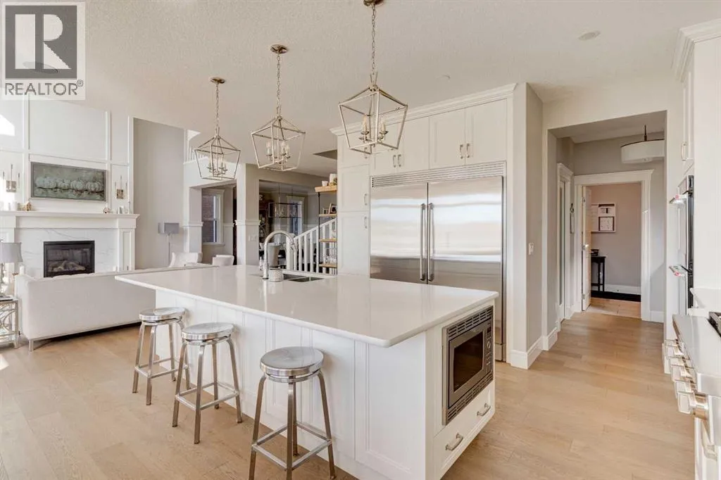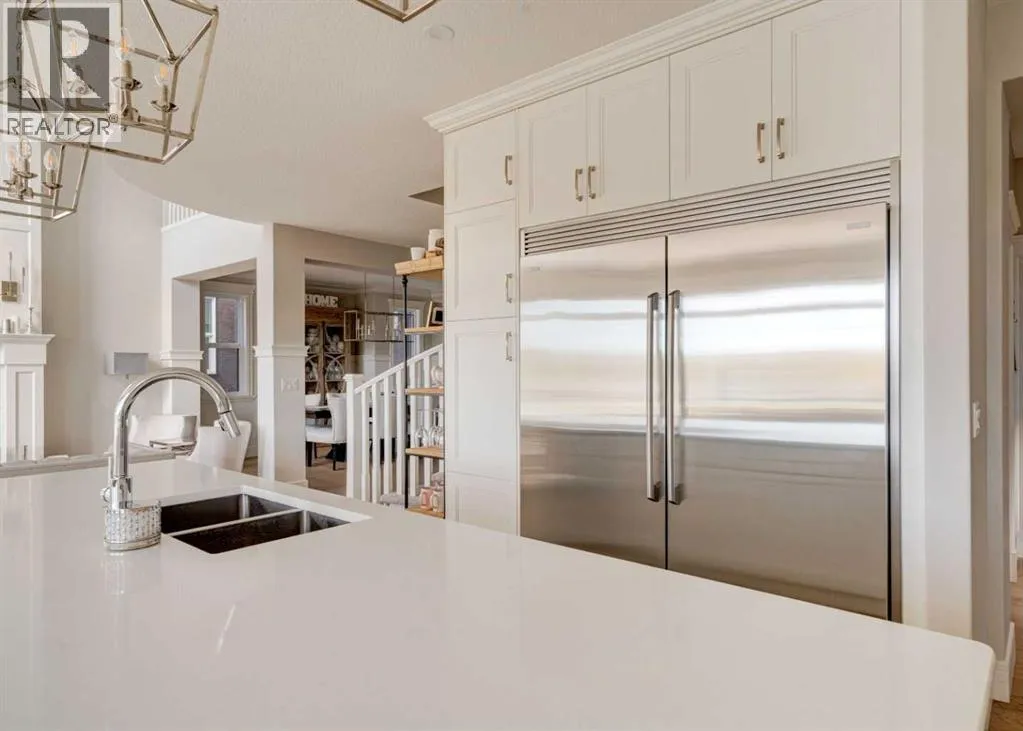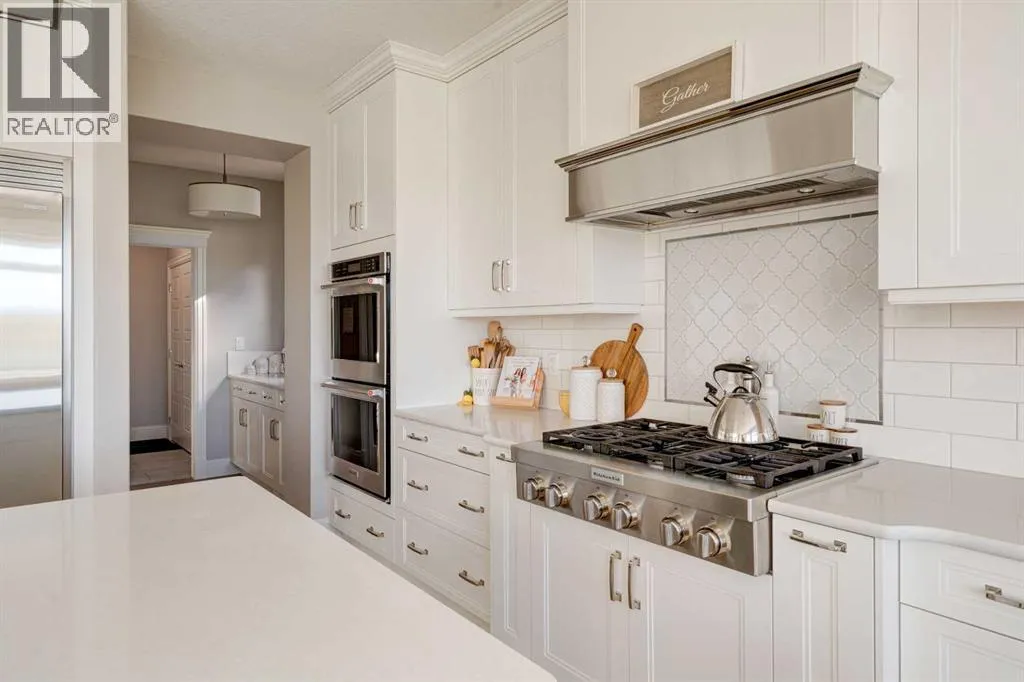 An unbelievable opportunity! Available NOW! You can't touch this price for a RIDGE HOME! New ridge home builds will cost you hundreds of thousands of dollars more and you have to wait at least 8 months! Buy this house now! A spectacular open-concept main floor showcases striking architectural details including white oak hardwood floors, elegant wainscotting, a curved staircase, rounded corners & expansive windows that bathe the interior in natural light. The kitchen stands as a true showpiece featuring bespoke cabinetry, exquisite quartz slab countertops, premium stainless-steel appliances (including a 6-burner gas stove top & 2 wall ovens), a double-sided island, well-appointed butlerâs pantry, 2nd pantry (walk-in) & adjacent sundrenched breakfast nook with charming banquet & beautiful views of the ravine. The spectacular views continue from the elegant living room with expansive glass doors providing access to a large rear deck while the dramatic floor-to-ceiling fireplace with tile surround & a graceful chandelier bring luxury & sophistication. An inviting dining room with seating for 10 further elevates this exceptional space. The oversized mudroom boasts extensive built-ins delivering valuable organization to this highly practical area. Lovely French doors open to a bright dedicated home office while a pretty powder room completes the tastefully curated main floor. The custom milled curved staircase creates a grand entrance to the light-filled upper level where the centrally situated bonus room offers beautiful views & provides a relaxed space for family movie and games nights. The thoughtful 2nd floor layout places three generous-sized bedrooms at the front of the home while a smartly designed family bath with double vanities further enhance the comfort & appeal of these inviting retreats. The airy primary suite presents a tranquil sanctuary overlooking the back yard, pathways & ravine. The stunning ensuite exudes spa-like luxury featuring a large dual sink va nity & quartz countertop, separate shower, opulent stand-alone tub and leads to a generous walk-in closet. A convenient 2nd floor laundry room rounds off the upper level. The walk-out lower level offers an additional 1435 SF of potential living space. Equally impressive is the extraordinary curb appeal displaying stone accents, mullioned windows, aggregate drive & walkway. The quiet South-west-facing backyard offers a tranquil setting perfect for watching the children at play, summer barbecues, or simply unwinding at the end of the day while taking in the magnificent views. Other notable highlights of this remarkable property include 1) double oversized attached garage, 2) two air conditioning units, 3) Kinetico water system, 4) 75-gallon HWT, 5)main floor built in speakers& 6) GEMSTONE lighting. Situated close to parks, walking pathways, shopping, & schools this unparalleled property delivers a wonderful family lifestyle in an outstanding location. This is where discerning design meets timeless luxury. (id:27476)