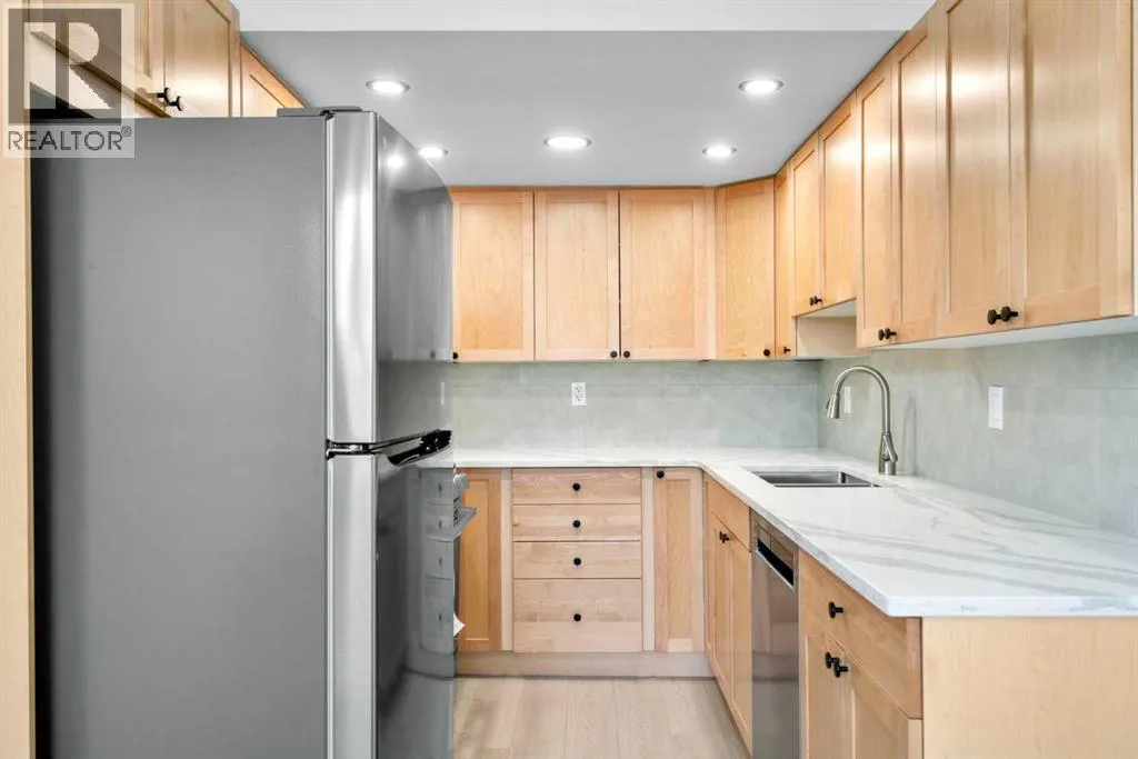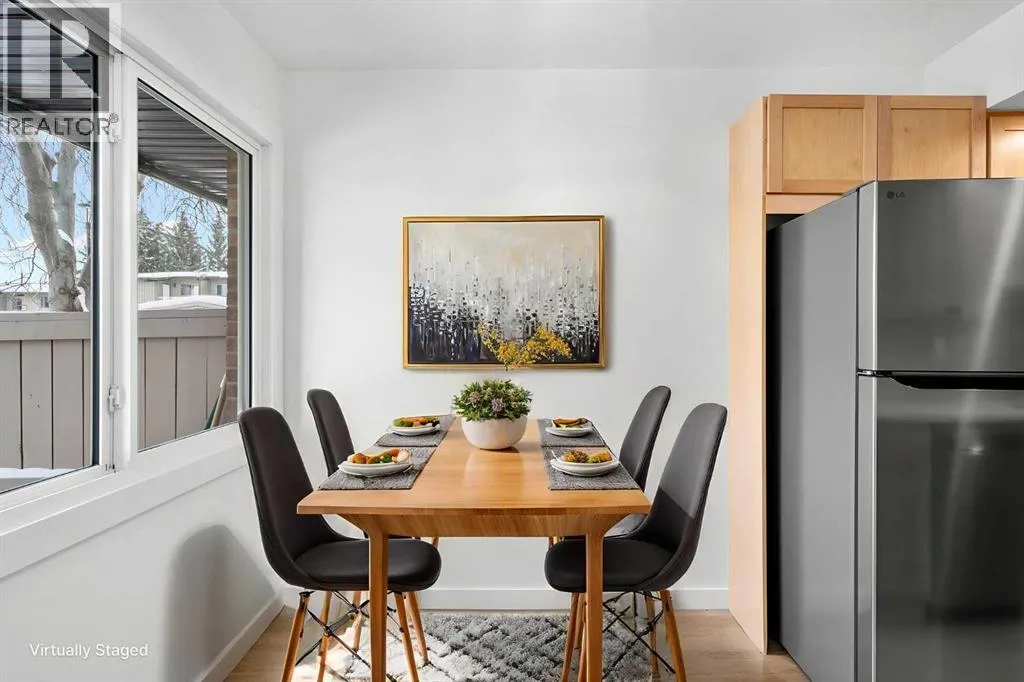 Beautifully Renovated, Move - In Ready Townhome in a prime NW Calgary Location! This bright, modern 2-bedroom townhome has been fully updated throughout and offers exceptional value for first-time buyers or anyone ready to upgrade from apartment living. Set in a quiet, well-managed complex with low condo fees, this home features a private fenced yard, stylish interior renovations, and an unbeatable central NW Calgary location. You will love the fresh, contemporary updates: new flooring on the main level, knock-down ceilings, upgraded lighting, trim, paint, newer windows and doors, and a fully renovated 4-piece bathroom. The beautifully redesigned kitchen showcases shaker style maple cabinets, modern backsplash, Caesarstone counters, and new appliances, with a sunny dining nook overlooking the fenced yard - perfect for pets, gardening, or outdoor entertaining. The spacious, sunlit living room offers plenty of space for relaxation and gatherings. Convenient main-floor laundry includes a newer full-sized washer and dryer. A high-efficiency furnace and newer hot water tank help keep utility costs low and provide peace of mind. Upstairs, the generous primary bedroom comfortably fits a king bed and features his-and-hers closets plus a private balcony, ideal for morning coffee or evening fresh air. The second bedroom is large, with a double closet and built-in desk, perfect as a childâs room, home office, or guest suite. Plenty of storage throughout adds everyday practicality. Step outside to your sunny, private, fully fenced yard, beautifully landscaped with poured walkways and a patio, an excellent outdoor extension of your living space. Parking is effortless with an assigned stall just steps away and ample visitor parking throughout the complex. Pets are allowed with Board approval. The location is truly outstanding: St. Henry Elementary is right across the street, Dr. J.K. Mulloy School is just up the block, and Sir John A. MacDonald School is within walking distance. Minutes to Superstore, Deerfoot City, Nose Hill Park, the library, recreation centre, playgrounds, and major transit routes. Commuting is easy with quick access to Deerfoot Trail, Centre Street, 14th Street, and several nearby bus routes. This home blends modern style, affordability, and everyday convenience in a mature, family-friendly community. With immediate possession available, all thatâs left to do is move in and enjoy. A must-see property, beautifully updated, affordable, and perfectly located in the heart of Huntington Hills! (id:27476)