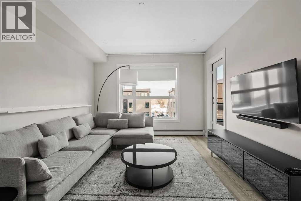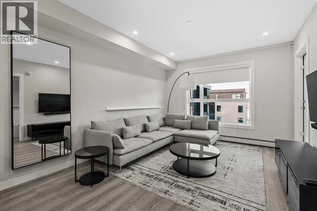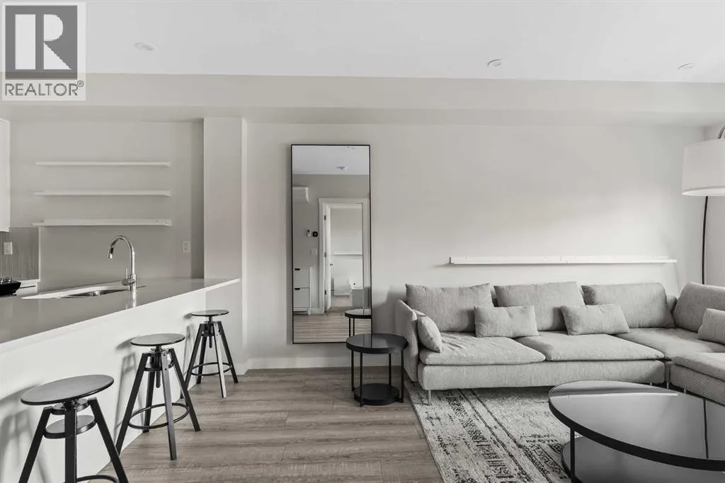 ALL FURNISHINGS INCLUDED! Move in TODAY! Welcome to Capella in the award-winning University Districtâwhere modern luxury, thoughtful design, and unbeatable convenience come together in one exceptional home. This beautifully appointed residence showcases a spacious, open-concept floorplan enhanced by elegant luxury vinyl plank flooring and expansive windows that frame views of Capellaâs serene, landscaped courtyard. The gourmet kitchen is designed for both style and function, featuring full-height cabinetry, quartz countertops, and an oversized peninsula with seating for fourâperfect for morning coffee, casual dining, or entertaining guests. The bright bedroom overlooks the private balcony (w/gas bbq hookup) and the lush courtyard below, offering a peaceful retreat at the end of your day. A spa-inspired 3 pce bathroom elevates daily routines with quartz countertops, a chic tile backsplash, an oversized mirror, and a sleek floating shelf for additional storage and style. Built with above-and-beyond sound attenuation, this home provides exceptional quiet and comfortâallowing you to fully enjoy the tranquility of the surrounding green space. Capellaâs Built Green Gold certification ensures high energy efficiency and long-term cost savings, delivering a home that feels as smart and sustainable as it is luxurious. Residents of Capella enjoy premium amenities including secure underground parking, a private storage locker, ample visitor parking, and a fully equipped fitness centre. All of this is located in the heart of University District, one of Calgaryâs most vibrant and walkable communities. Steps from your door, you'll find trendy restaurants, cafés, boutique shopping, fitness studios, grocery stores, a movie theatre, and everyday conveniences. The Alberta Childrenâs Hospital, the University of Calgary, and an abundance of parks and pathways are all just moments away. (id:27476)