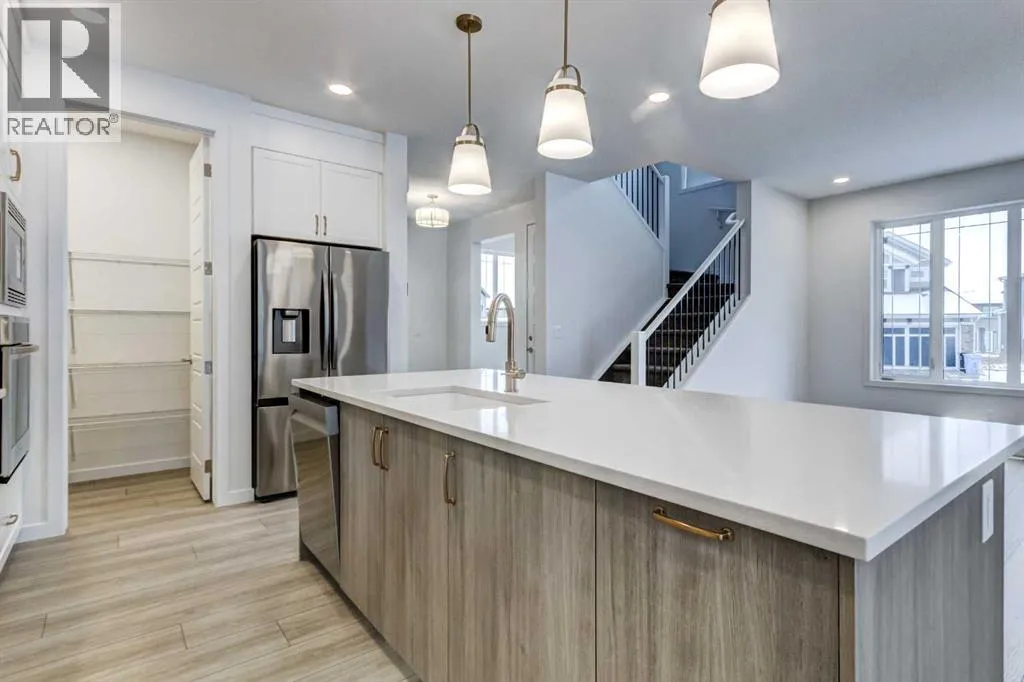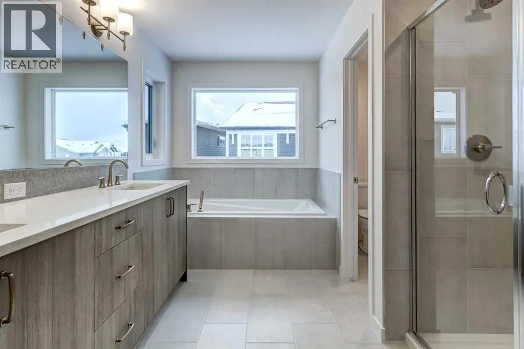 Be prepared to be impressed from the moment you step inside! Introducing the PERCYâbrand new, never lived in, and built by Excel Homes, an award-winning builder with over 35 years of experience, more than 15,000 homes constructed, and 75 industry and design awards. Excel continues to deliver exceptional quality, innovation, and peace of mind. Offering 2139 sq ft of beautifully designed living space plus a fully developed basement with a side entrance and a legal basement suite, this home checks every box. A spacious foyer welcomes you to the main floor, where a versatile flex room provides the perfect home office or study space. Luxury wide-plank flooring spans the entire level, flowing into the bright, airy great room that opens onto an exquisite kitchen featuring abundant cabinetry and drawers, a corner pantry, a large island with seating for four, a gas range, and a built-in microwave/oven comboâmaking meal prep a joy. The dining nook at the rear of the home overlooks the southwest-facing backyard and comfortably fits large family gatherings, while the great roomâs electric fireplace adds warmth and style. The side-entry garage allows for an expansive mudroom, and with 27' on the long side, it easily accommodates a full-sized truck. Metal railings guide you upstairs to a central bonus room with vaulted ceilings and pot lighting. The grand primary suite offers a luxurious retreat with a 5-piece ensuite showcasing 24" tile floors, quartz counters, a tile-skirted soaker tub, and a double shower, plus a large walk-in closet that conveniently connects to the laundry room for effortless organization. Two additional generous bedrooms share a well-appointed family bath with quartz counters. The legal basement suite impresses with big windows that fill the space with natural light and includes a full kitchen with island and quartz countertops, complete appliance package, spacious family room, large bedroom with a huge window, 4-piece bath, and its own private laundry. Sep arate utilities ensure complete independence for the suite (id:27476)