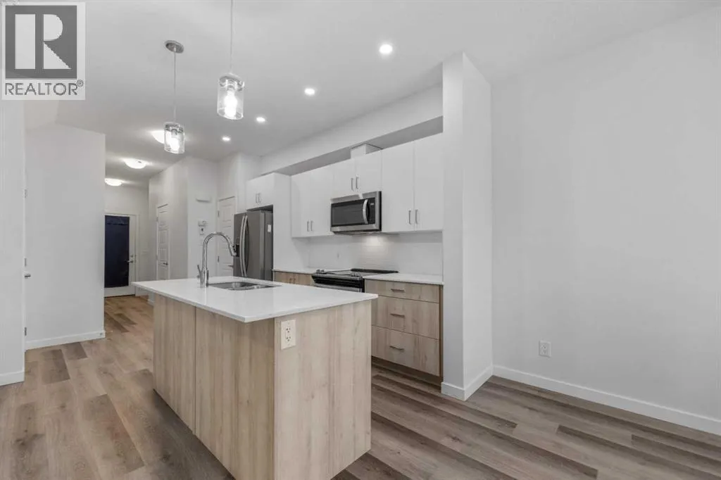 Welcome to Unit 137 in Red Embers Point, perfectly situated in the heart of Redstone. 3 BED | 2.5 BATH | FRONT ATTACHED GARAGE | PREMIUM FINISHES | LOW CONDO FEES | GREAT REDSTONE LOCATIONThis impressive, modern 2-storey townhouse combines style and functionality throughout. It offers 3 well-sized bedrooms, 2.5 bathrooms, a single attached garage with a driveway, and a bright, open-concept main floor accented by durable vinyl flooring and contemporary design elements. The kitchen stands out with its quartz countertops, stylish two-tone cabinetry, stainless steel appliances, and a central island with seatingâideal for casual meals or entertaining. On the upper level, youâll find a comfortable primary bedroom with a 4-piece ensuite, two additional bedrooms, another full bathroom, and a convenient laundry space.The unfinished basement provides a blank canvas for future development, while the spacious back deck is perfect for outdoor enjoyment. Located in a welcoming, family-oriented community close to parks, schools, shopping, and major routes, this home offers quick access to CrossIron Mills, Costco, and the airport. Book your private showing today! (id:27476)