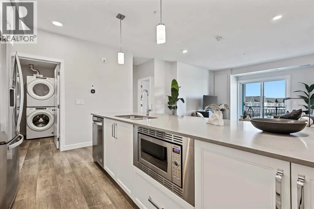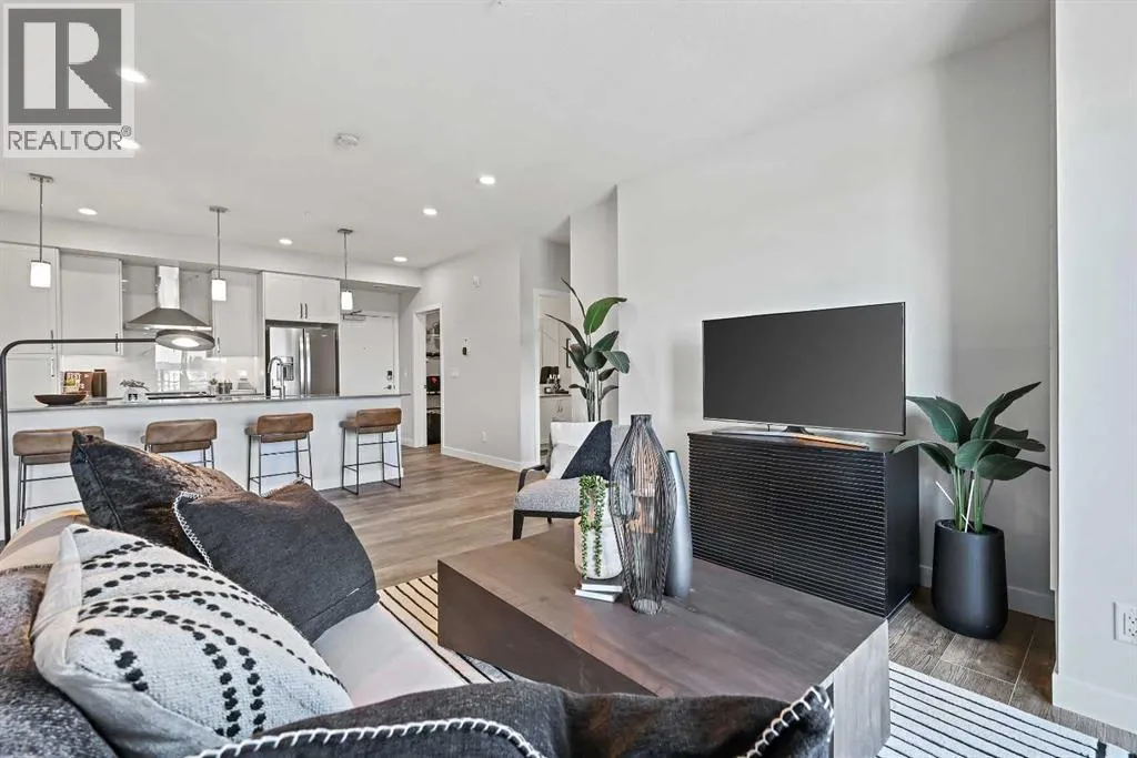 LOVE YOUR LIFESTYLE! Les Jardins by Jayman BUILT next to Quarry Park. Inspired by the grand gardens of France, you will appreciate the lush central garden of Les Jardins. Escape here to connect with Nature while you savor the colorful blooms and vegetation in this gorgeous space. Ideally situated within steps of Quarry Park, you will be more than impressed. Welcome home to 70,000 square feet of community gardens, a stunning Fitness Centre, a Dedicated dog park for your fur baby, HOTEL INSPIRED LOBBY which acts as an extension of your home and an outstanding OPEN FLOOR PLAN with unbelievable CORE PERFORMANCE. You are invited into a thoughtfully planned 2 Bedroom, 2 Full Bath plus expansive WEST FACING balcony with PARK VIEWS. This beautiful Condo boasts QUARTZ COUNTERS throughout, sleek STAINLESS STEEL WHIRLPOOL APPLIANCES featuring a Whirlpool refrigerator with top mount freezer, dishwasher with stainless steel interior, electric freestanding range with self clean, microwave hood fan. Luxury Vinyl Plank Flooring, High End Fixtures, Smart Home Technology, A/C and your very own in suite WASHER AND DRYER. This beautiful suite offers bright bedrooms with large windows, a storage area with a hanging rack, a large Primary Suite with a walk-in closet that includes built in closet organizers and an ensuite, a spacious dining/living area with sliding doors, an open concept layout between the kitchen, dining, and living room, and ample kitchen and bathroom counter space. STANDARD INCLUSIONS: Solar panels to power common spaces, smart home technology, air conditioning, state-of-the-art fitness center, high-end interior finishings, ample visitor parking, luxurious hallway design, forced air heating and cooling, and window coverings in bedrooms. Offering a lifestyle of easy maintenance where the exterior beauty matches the interior beauty with seamless transition. Les Jardins features central gardens, a walkable lifestyle, maintenance-free living, nature nearby, quick and conven ient access, smart and sustainable, fitness at your fingertips, and quick access to Deerfoot Trail and Glenmore Trail. It is located 20 minutes from downtown, minutes from the Bow River and pathway system, and within walking distance to shopping, dining, and amenities. Schedule your appointment today! (id:27476)
