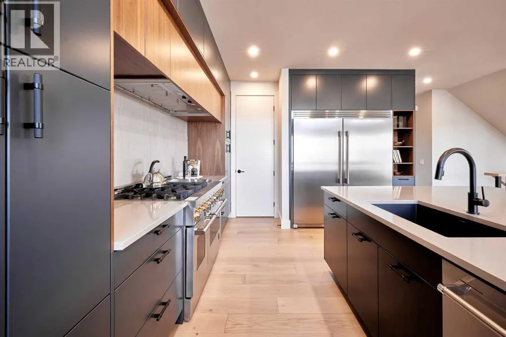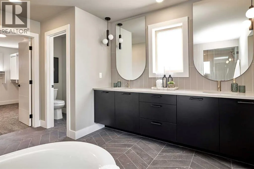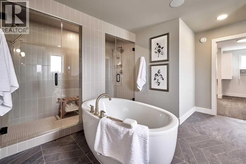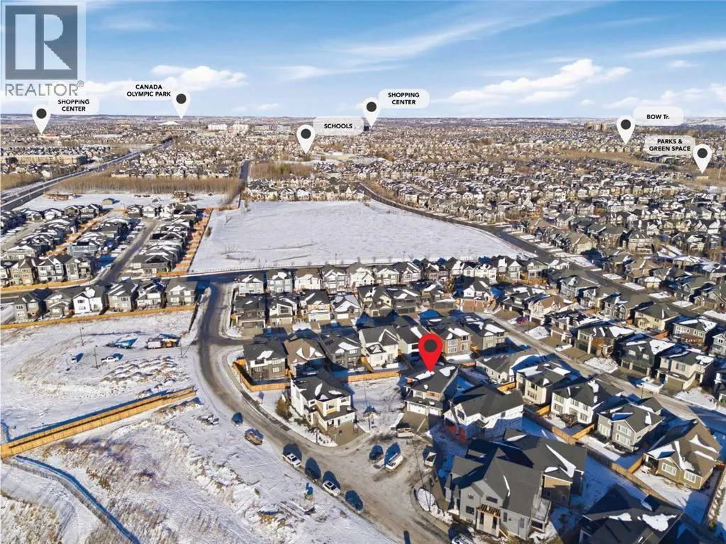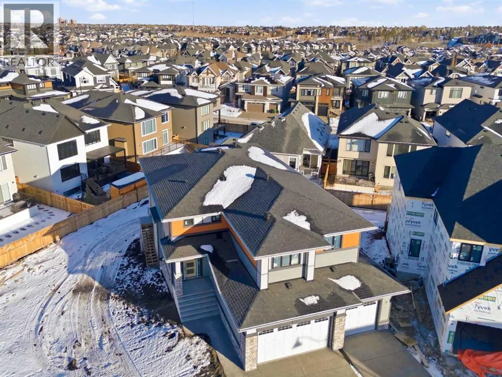 **4,745 TOTAL SQ.FT | 6 BEDS | 5 BATHS (2-ENSUITES) | FINISHED WALKOUT | 3-CAR GARAGE | PIE LOT** Located on a quiet cul-de-sac in Aspen Summit, this brand-new executive walkout by Crystal Creek Homes sits on a generous pie-shaped lot and includes a triple-car garage, premium finishes, and a fully developed lower level. Selections were inspired by Crystal Creekâs previous showhome (as seen in photos). The main floor includes an open-to-above great room that brings in natural light, a gourmet kitchen with a gas range, custom hood fan, premier appliances, a prep kitchen, and a large pantry. The dining area features built-in cabinetry and a beverage centre, and the spacious main-floor office provides a quiet place to work or study. Upstairs, the primary suite offers a spa-inspired ensuite and an oversized walk-in closet with direct access to the laundry room. Three additional bedrooms complete this levelâone with its own ensuite and two connected by a Jack and Jill bathroomâalong with a large bonus room overlooking the great room below.The walkout basement adds two more bedrooms, a full bathroom, a rec room with a fireplace and wet bar, and a games area that opens to a broom-finished concrete patio. Mechanical highlights include dual furnaces, air conditioning, a water softener, radon rough-in, and full builder warranty. Everyday comfort is built in at every level. Aspen Woods is known for its estate homes, established parks, top-rated schools, and close access to downtown, West District, Aspen Landing, and the Rockies. Homes with this level of scale, finish, and location are rarely available in Aspen Woods. Book your showing before it's gone. (Photos are of the builder's previous showhome with similar layout and finishes). (id:27476)