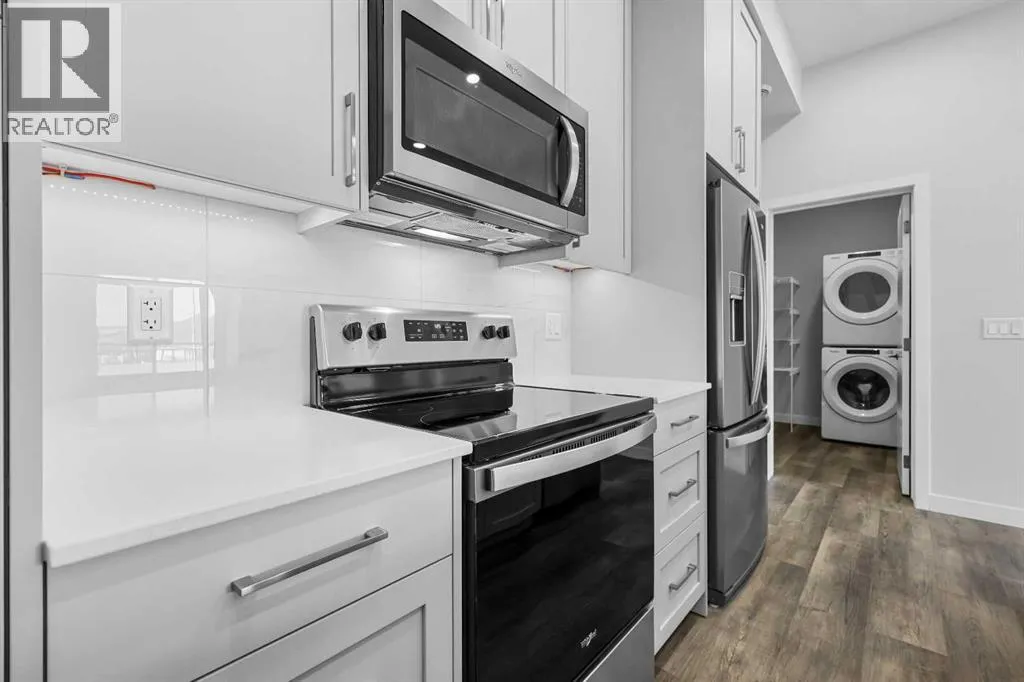 LOVE YOUR LIFESTYLE! Les Jardins by Jayman BUILT next to Quarry Park. Inspired by the grand gardens of France, you will appreciate the lush central garden of Les Jardins. Escape here to connect with Nature while you savor the colorful blooms and vegetation in this gorgeous space. Ideally situated within steps of Quarry Park, you will be more than impressed. Welcome home to 70,000 square feet of community gardens, a stunning Fitness Centre, a Dedicated dog park for your fur baby, and an outstanding OPEN FLOOR PLAN with unbelievable CORE PERFORMANCE. You are invited into a thoughtfully planned 2 Bedroom, 2 Full Bath plus expansive balcony beautiful Condo boasting QUARTZ COUNTERS throughout, sleek STAINLESS STEEL WHIRLPOOL APPLIANCES featuring a Whirlpool refrigerator with top mount freezer, dishwasher with stainless steel interior, electric freestanding range with self clean, microwave hood fan. Luxury Vinyl Plank Flooring, High End Fixtures, Smart Home Technology, A/C and your very own in suite WASHER AND DRYER. This beautiful suite offers bright bedrooms with large windows, a storage area with a hanging rack, a large Primary Suite with a walk-in closet and en suite, a spacious dining/living area with sliding doors, an open concept layout between the kitchen, dining, and living room, and ample kitchen and bathroom counter space. STANDARD INCLUSIONS: Solar panels to power common spaces, smart home technology, air conditioning, state-of-the-art fitness center, high-end interior finishings, ample visitor parking, luxurious hallway design, forced air heating and cooling, and window coverings in bedrooms. Offering a lifestyle of easy maintenance where the exterior beauty matches the interior beauty with seamless transition. Les Jardins features central gardens, a walkable lifestyle, maintenance-free living, nature nearby, quick and convenient access, smart and sustainable, fitness at your fingertips, and quick access to Deerfoot Trail and Glenmore Trail. It is located 20 minutes from downtown, minutes from the Bow River and pathway system, and within walking distance to shopping, dining, and amenities. Schedule your appointment today! (id:27476)